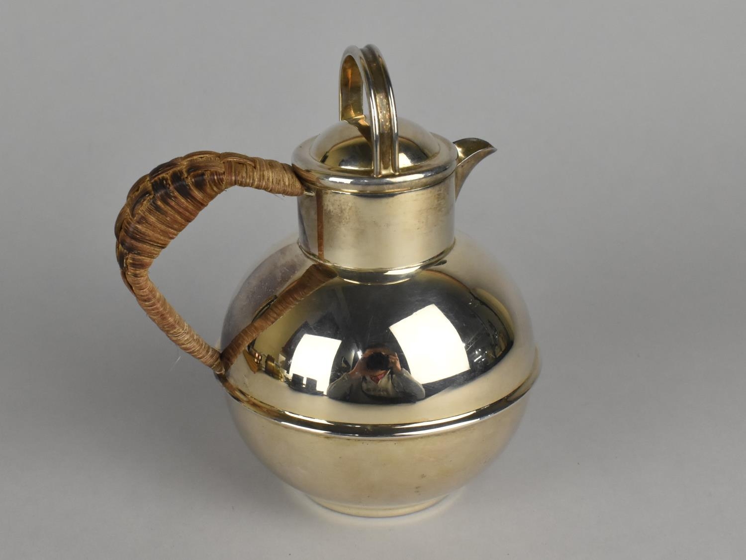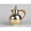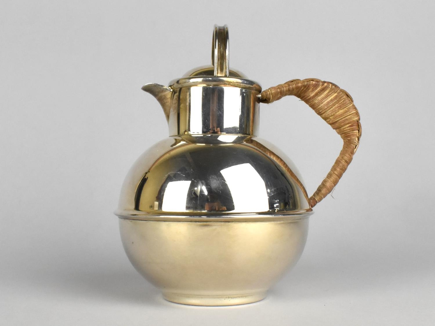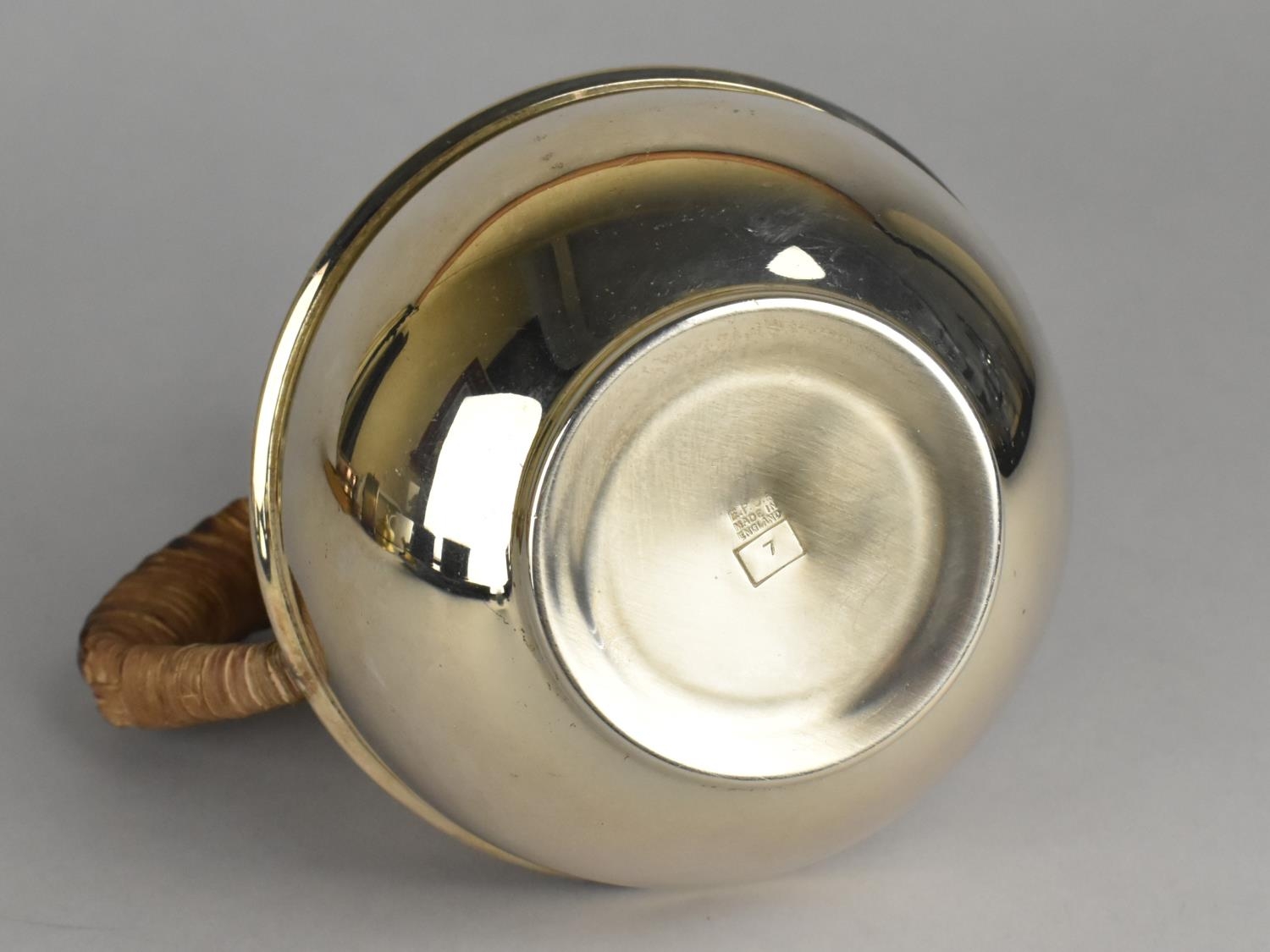 A Silver Plated Guernsey Globular Cream Jug After Kenneth Tyler Key with Rattan Handle, Stamped EPCA Made in England