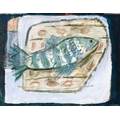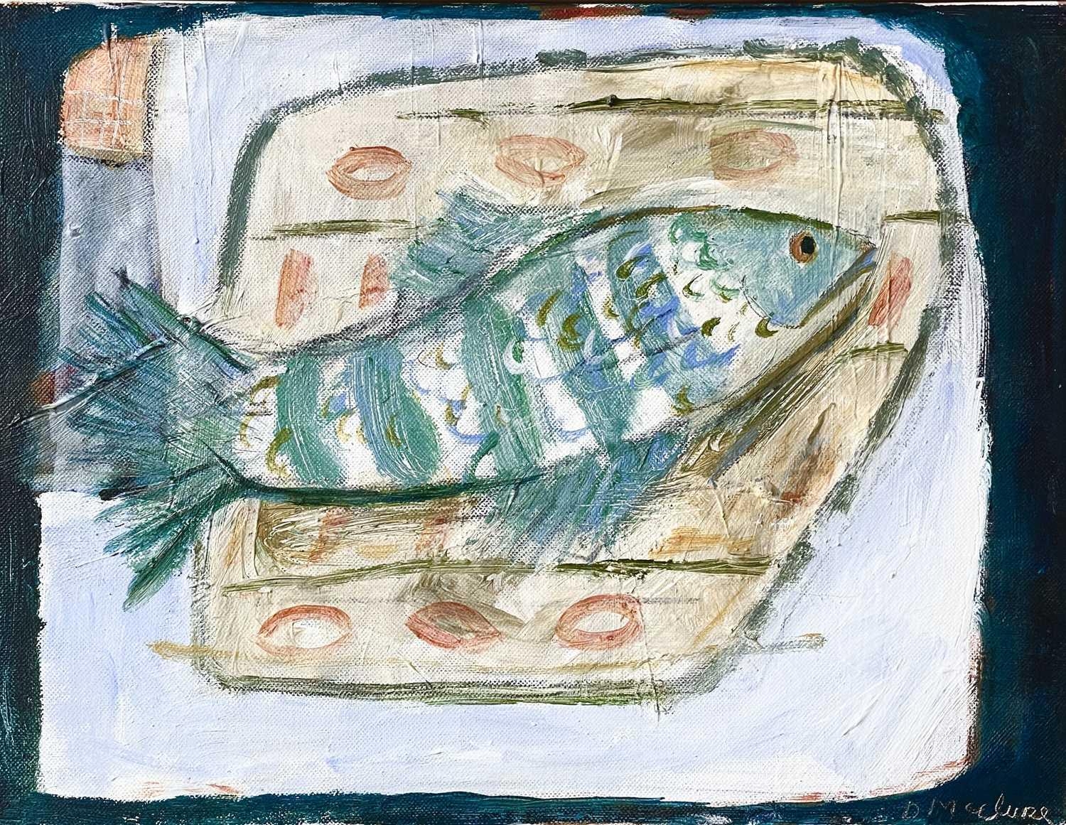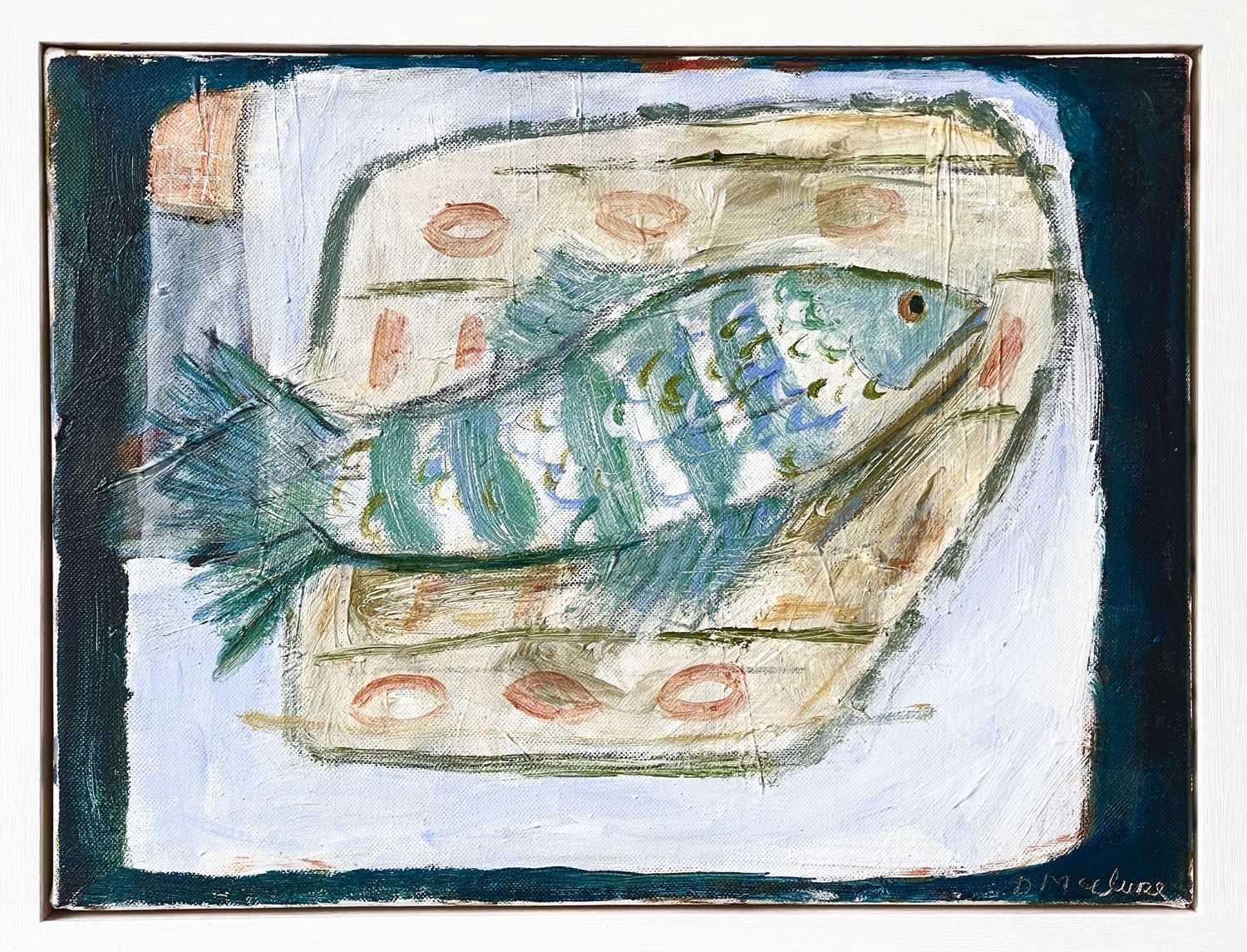 Daphne MCCLURE (1930-2023) Fish on a Dish, 2008 Oil on canvas, signed, further signed, titled and dated to verso, 30 x 40.5cm, framed 35 x 46cm This oil is in excellent condition as is the frame.