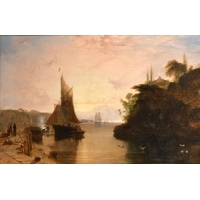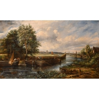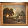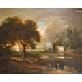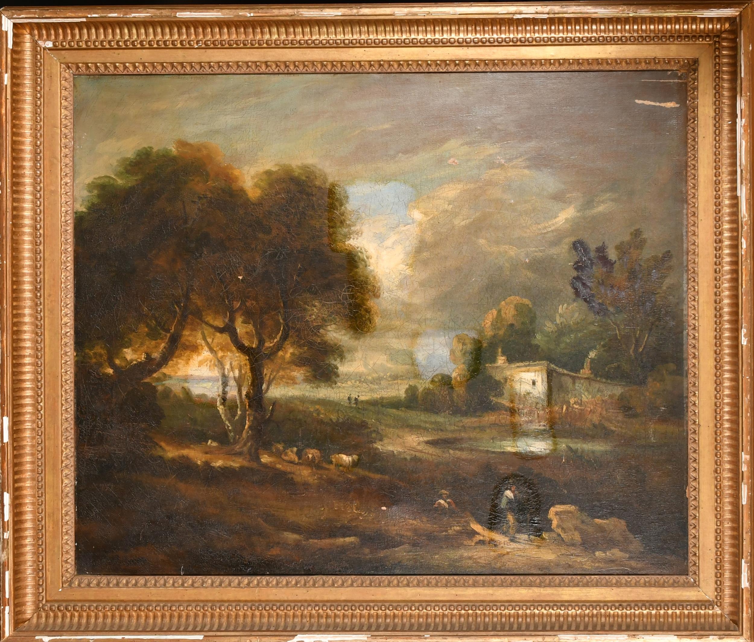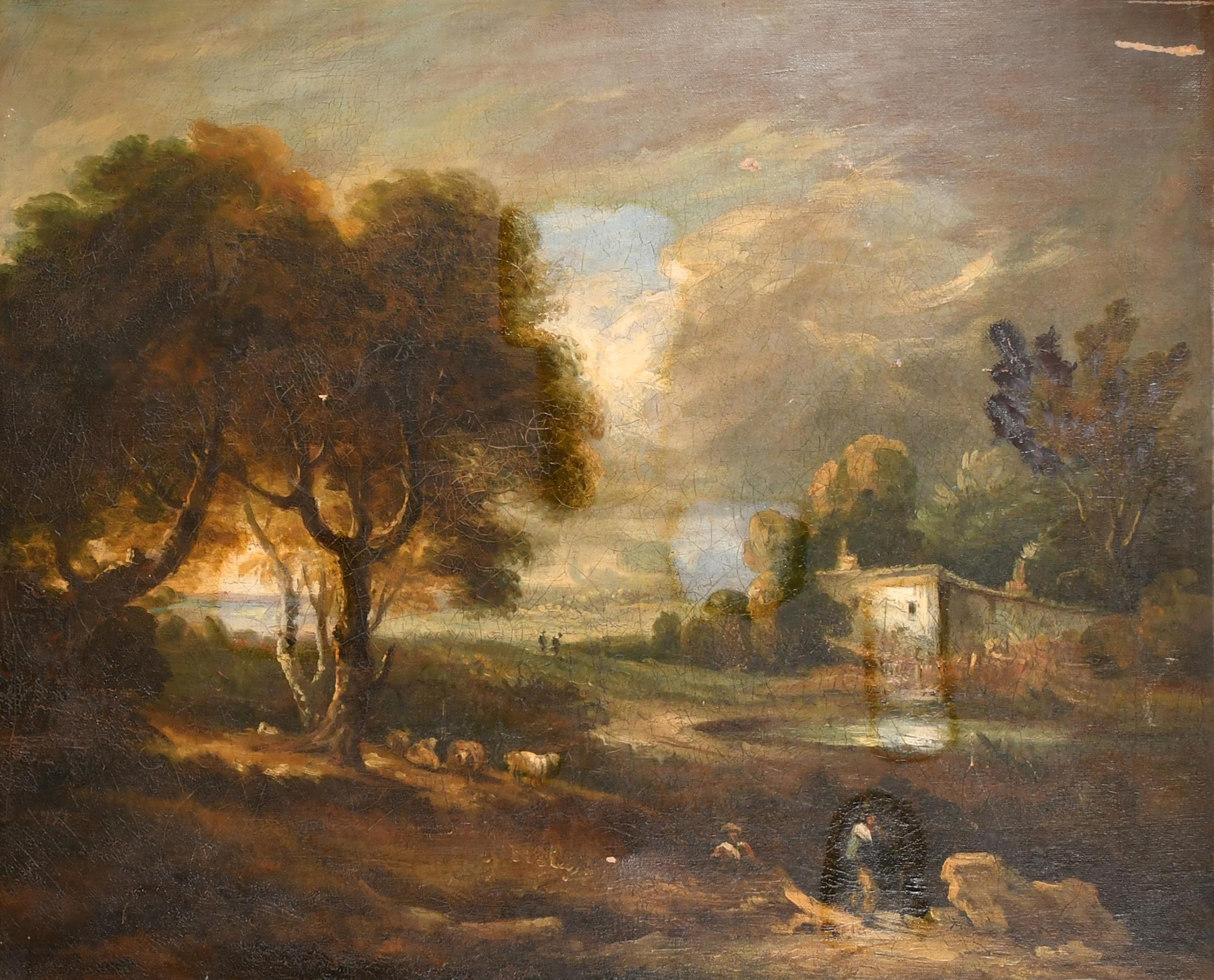 19th Century English School. Figures and Cattle in a River Landscape, Oil on canvas, 24.75" x 30" (62.7 x 76.2cm)