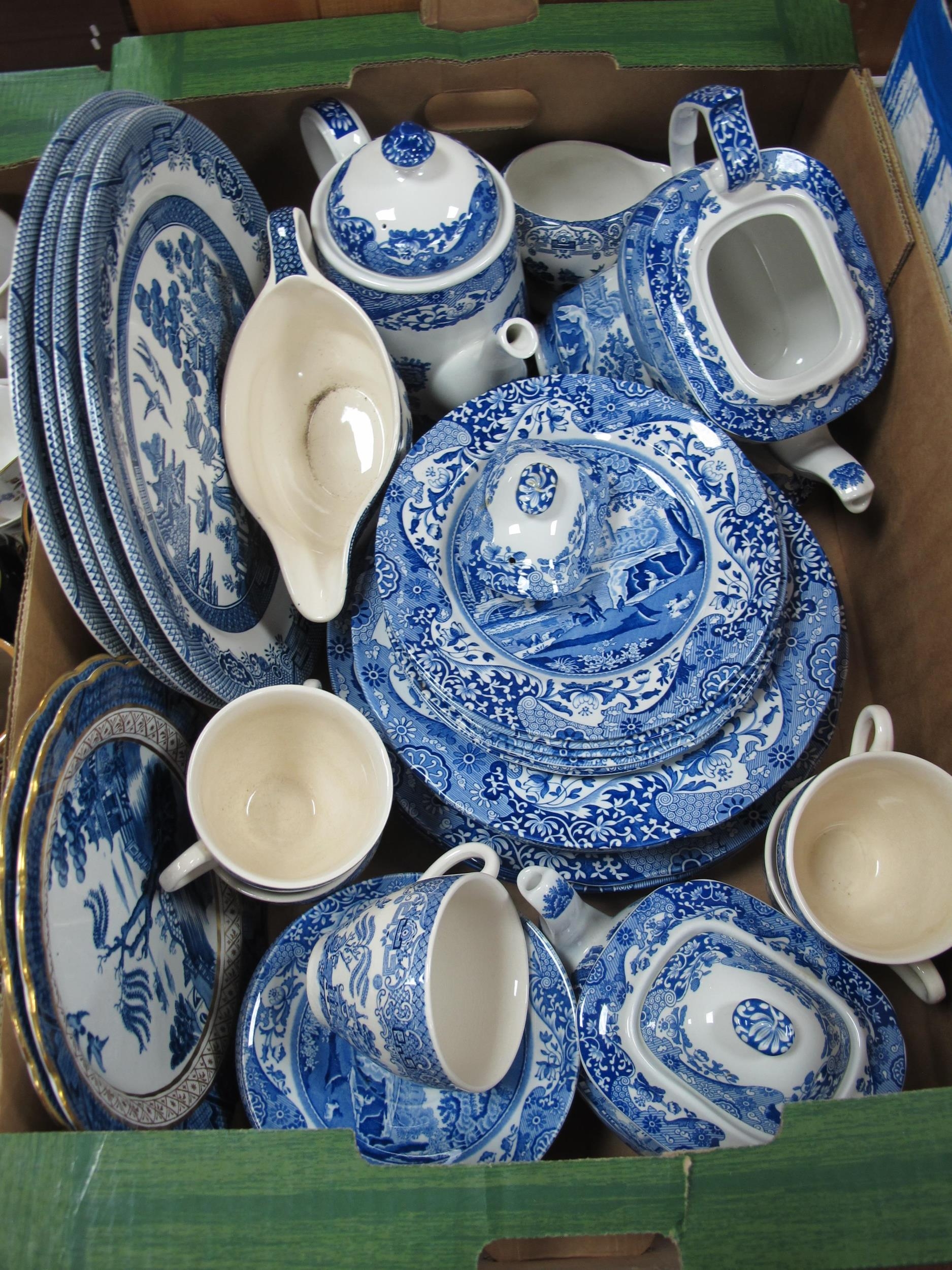 Spode "Italian" Blue-White Teapots, plates, coffee pot, etc:- One Box.