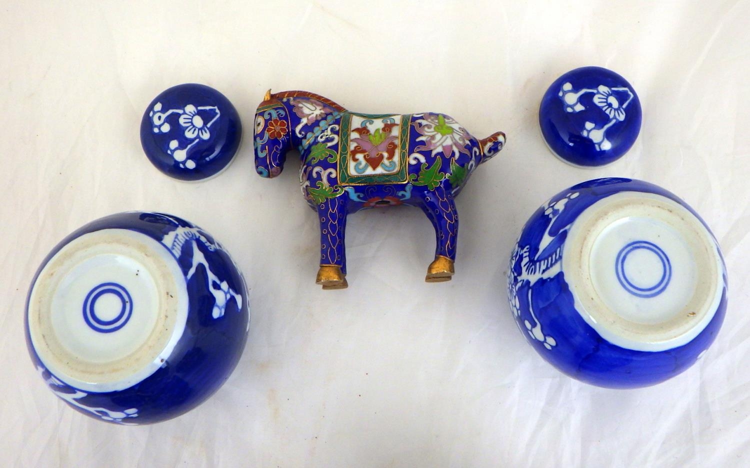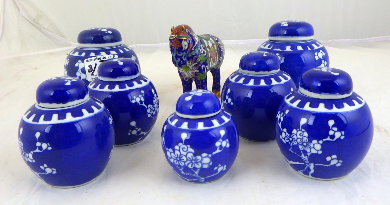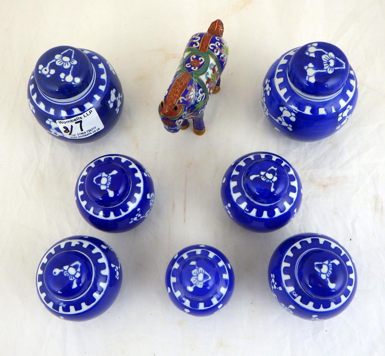 Seven small oriental ginger jars together with a cliosonne horse 7 - 10cm tall (8)