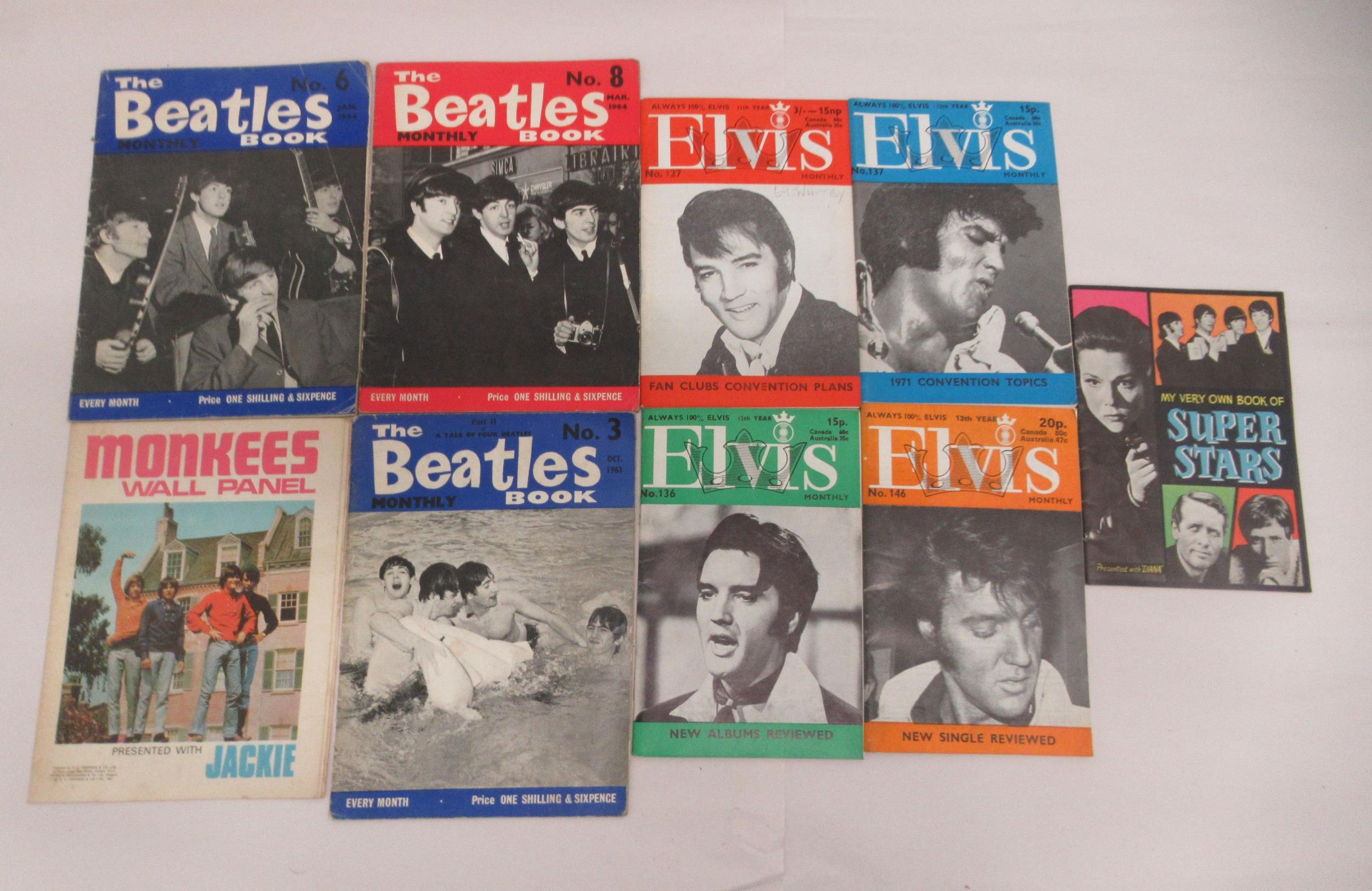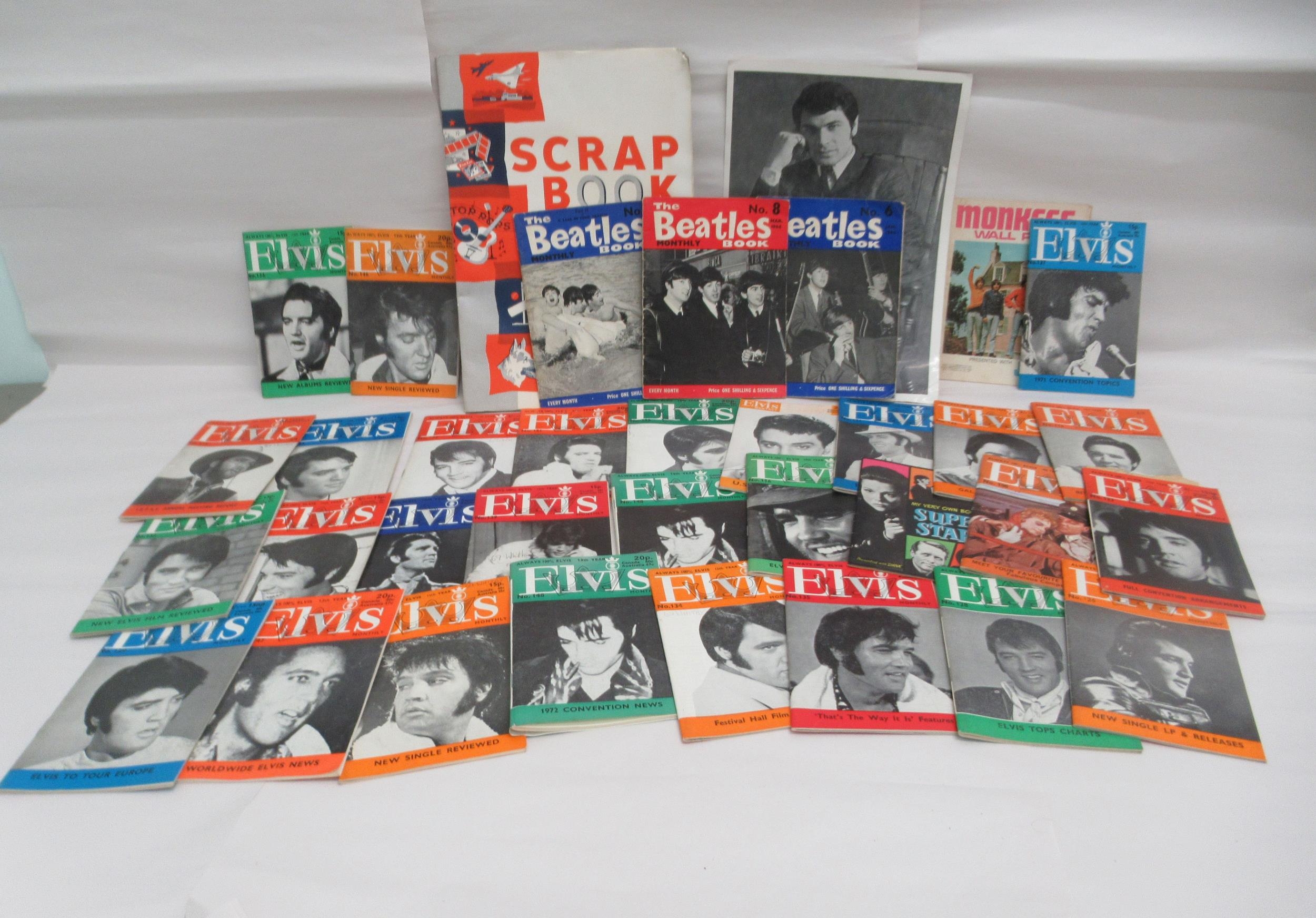 Music related printed ephemera: to include an Elvis Presley scrap book; a 1970s edition of Elvis Monthly; and three 1960s Beatles Monthly magazines