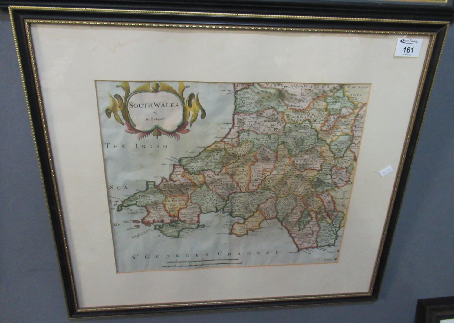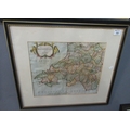 Robert Morden, original hand coloured map of South Wales. 33x40.5 cm approx, Hogarth frames.
