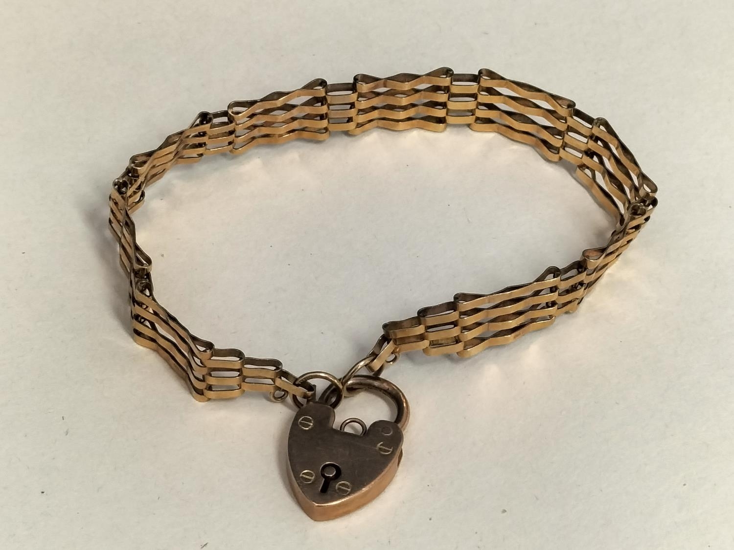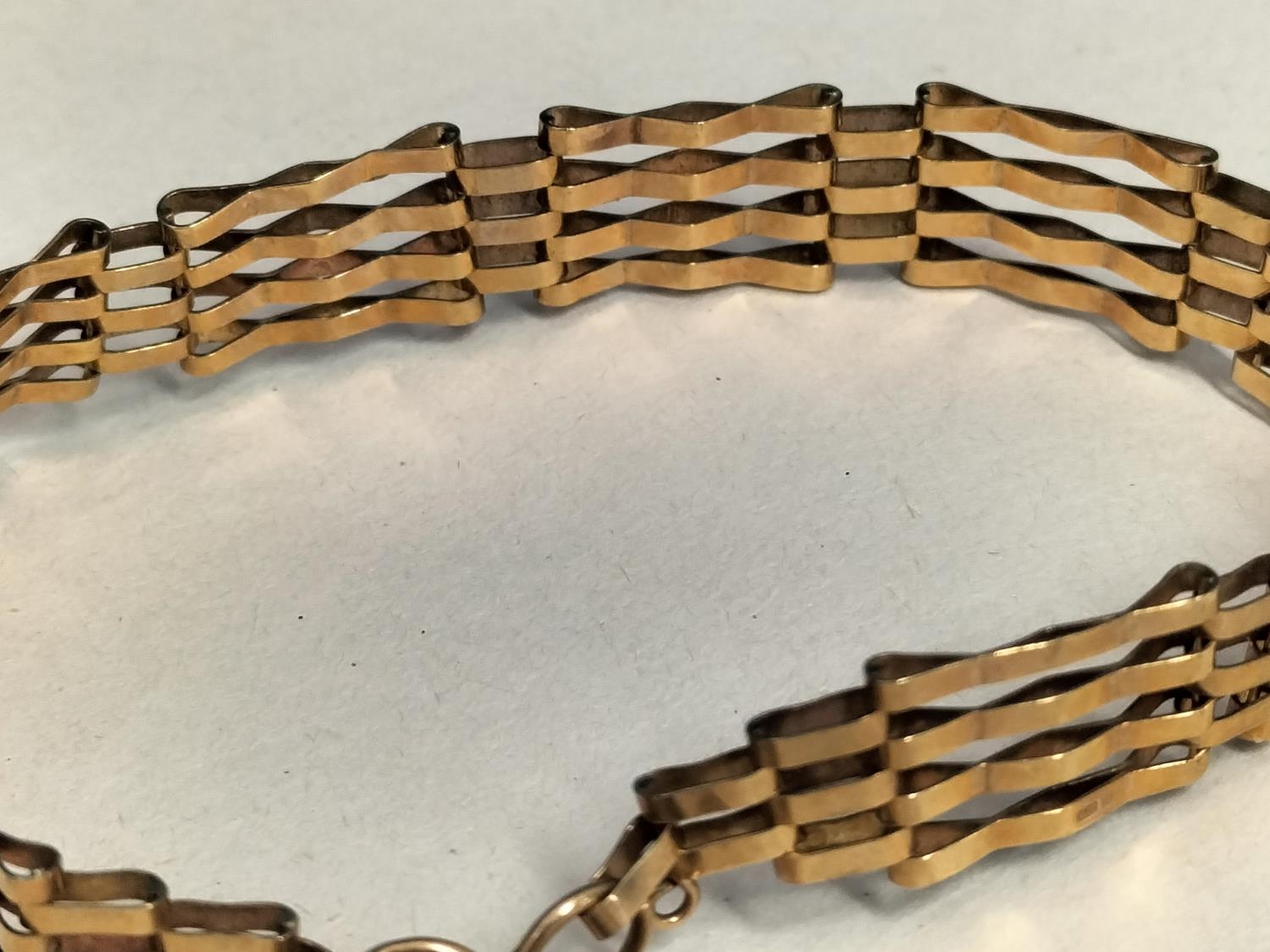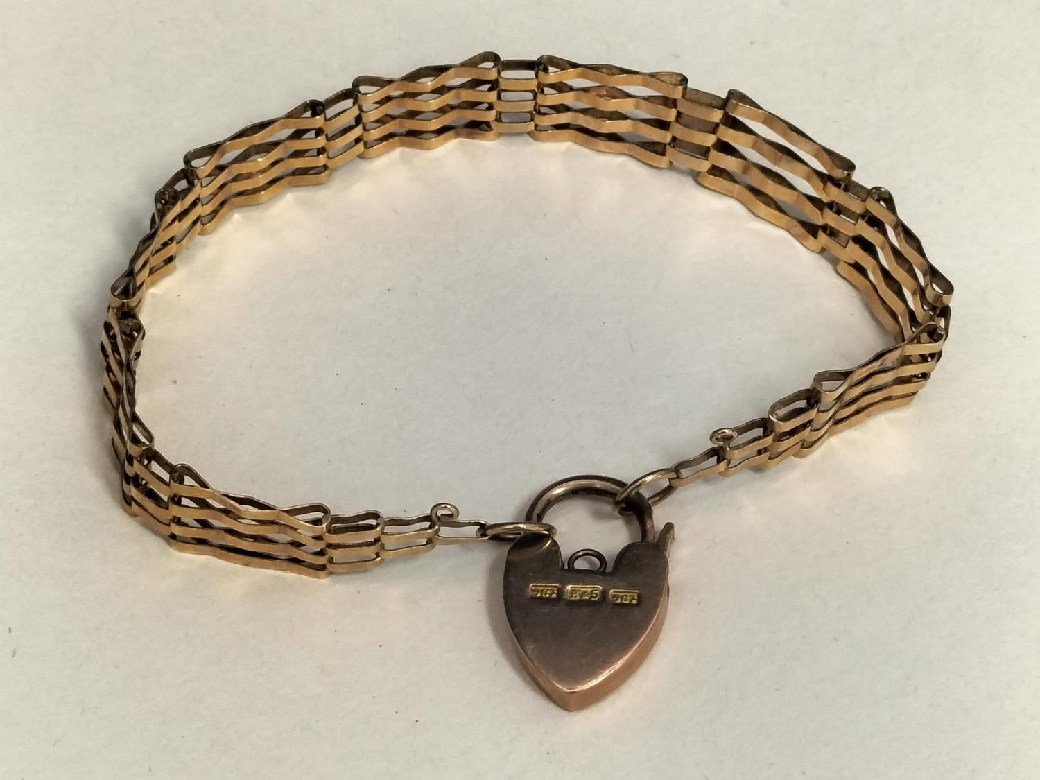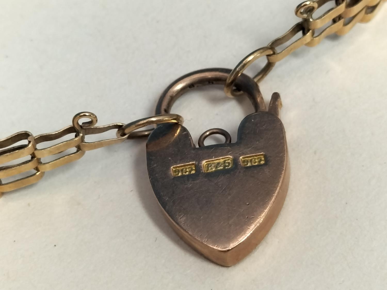 9ct 375 Gold 7" Gate Bracelet. Weight 8.8 Grams
