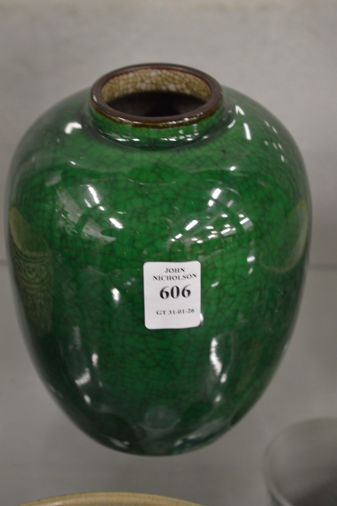 A Chinese green crackle glazed vase.