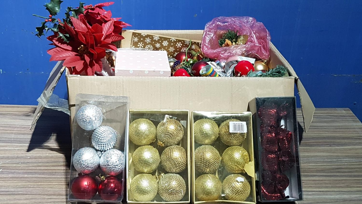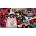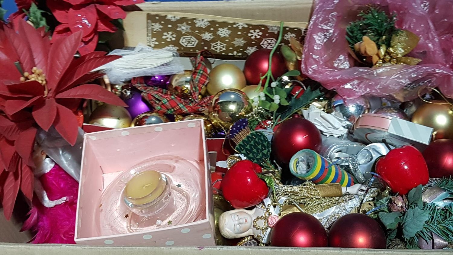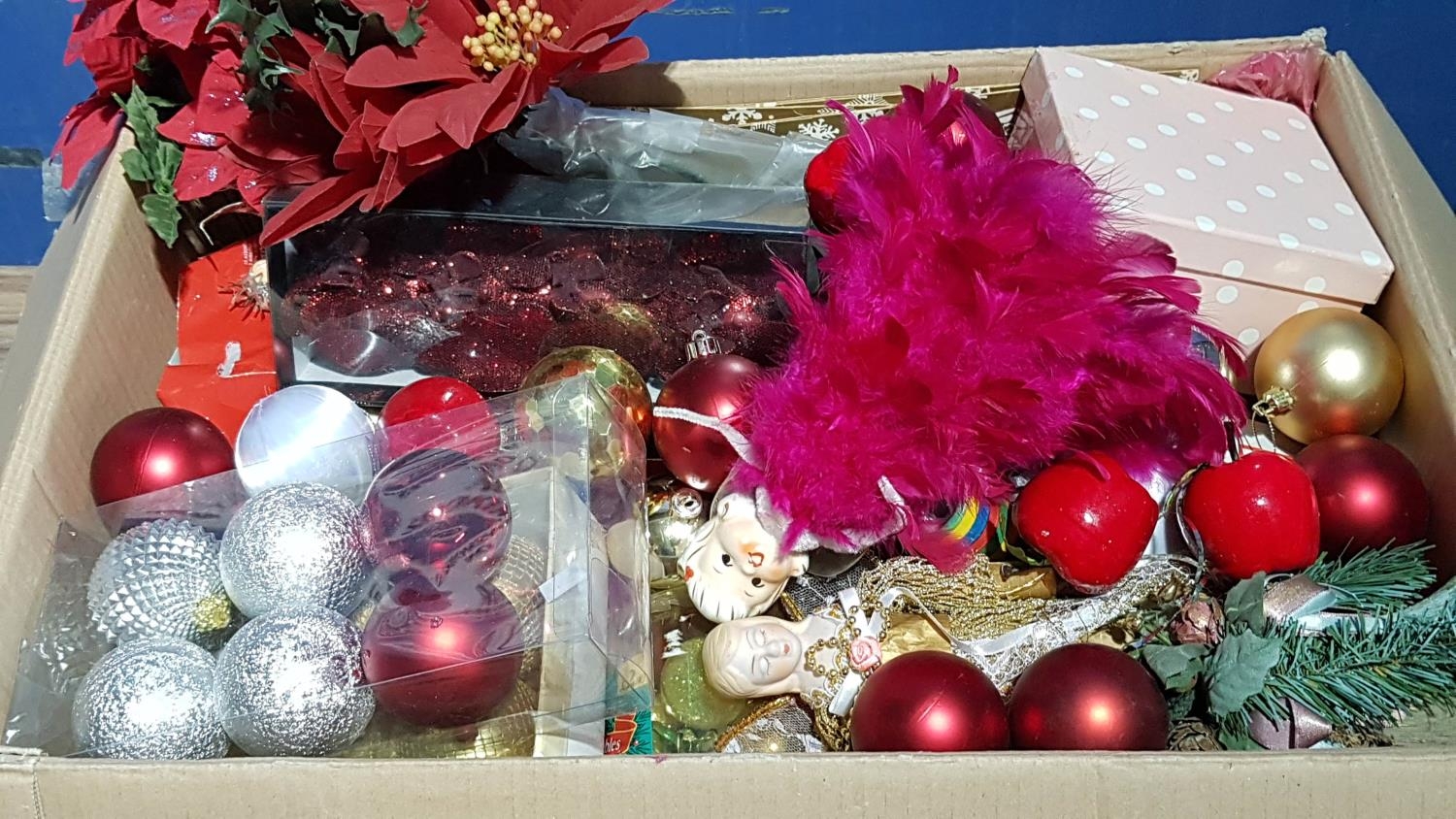 Large Box of Christmas Decorative inc Christmas Balls, Christmas Flowers, Figurines etc
