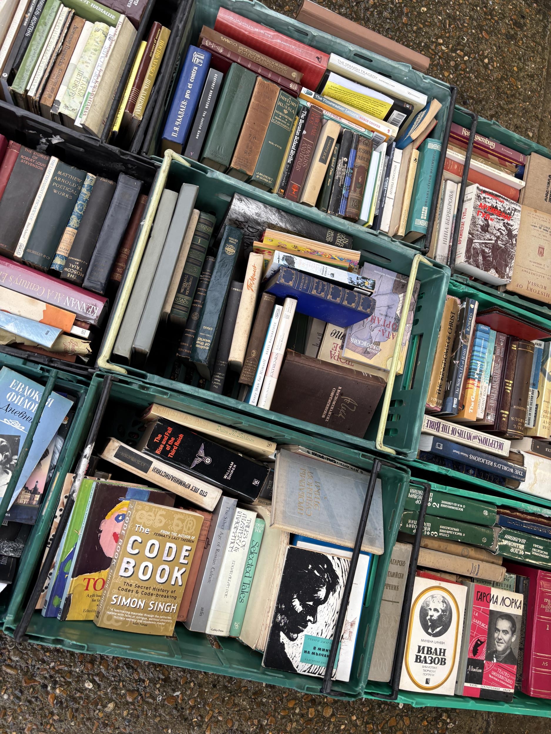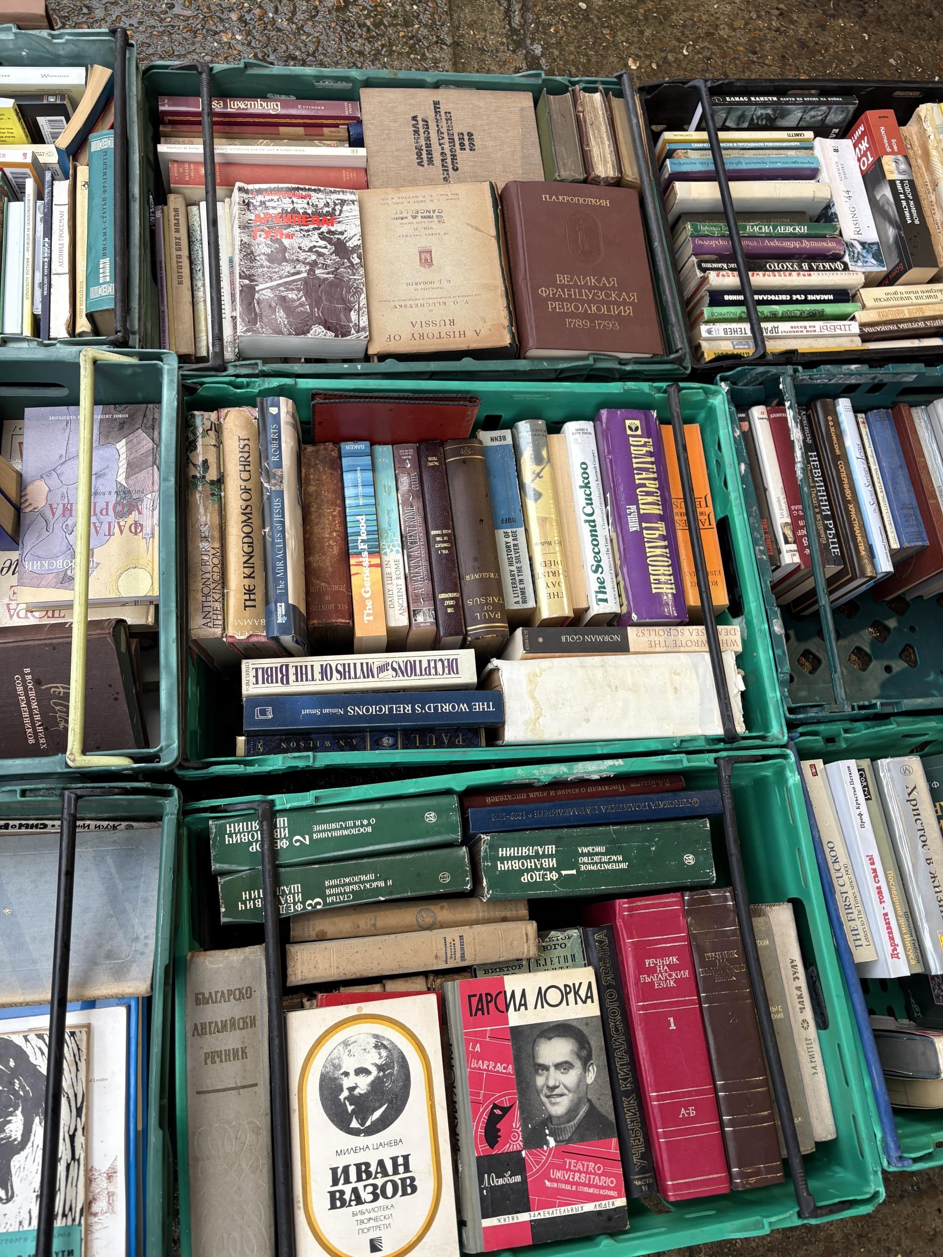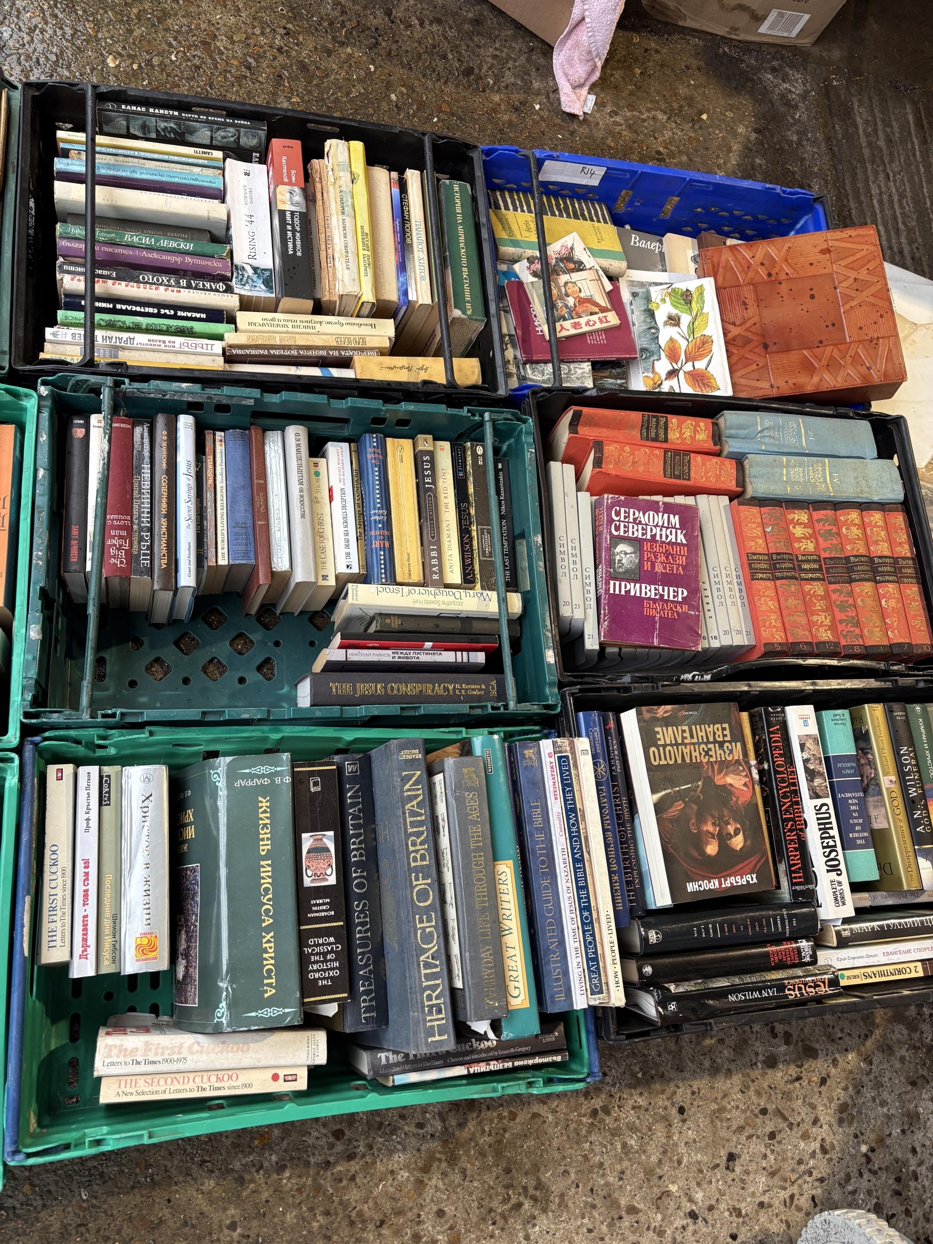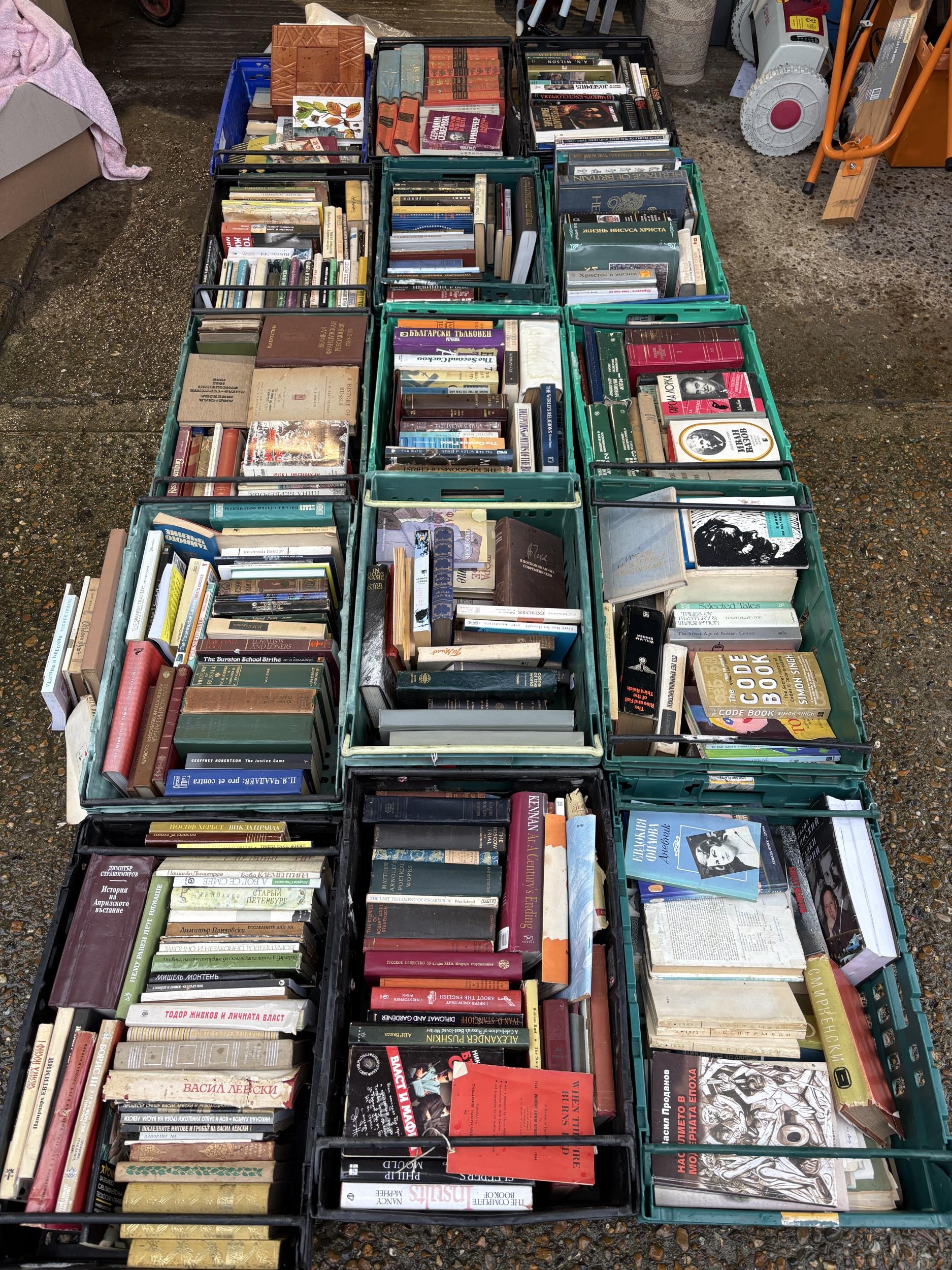 15 crates of assorted books including Russian books ( plastic crates not included)