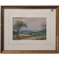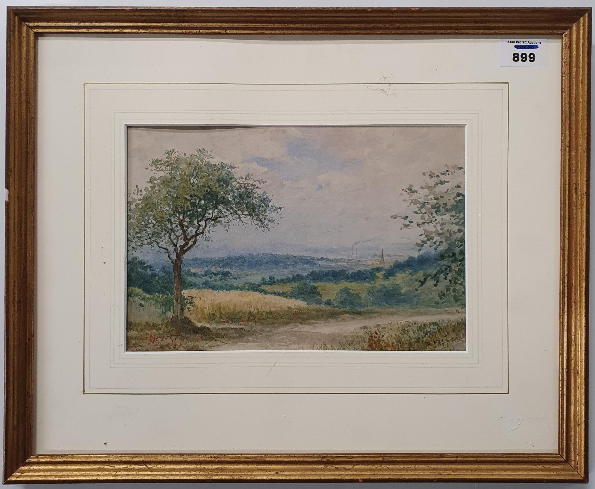 A Watercolour of a road scene with an industrial town in the distance. 17 x 25 cm approx. signed A.F.Lydon.