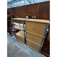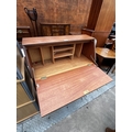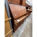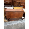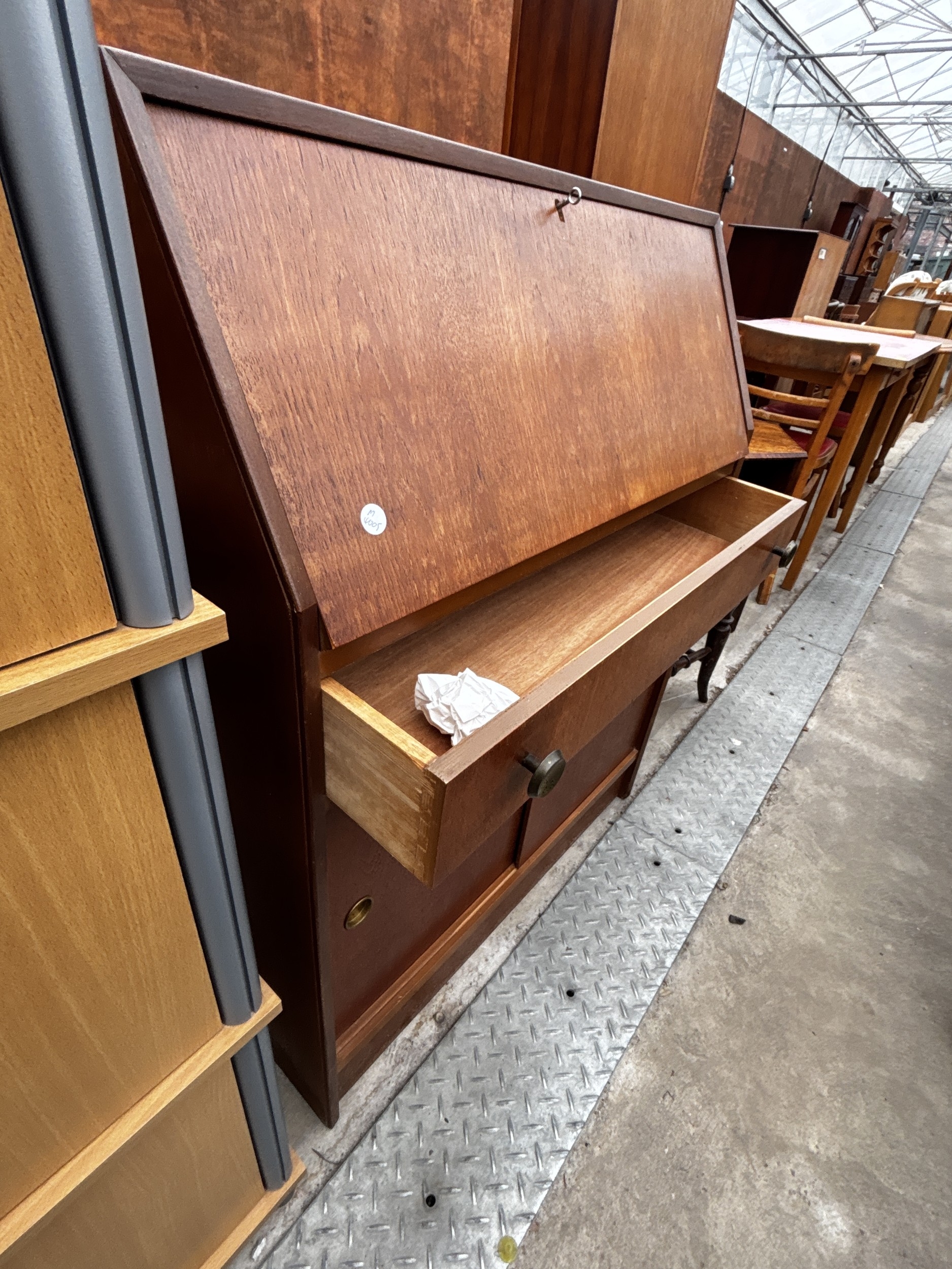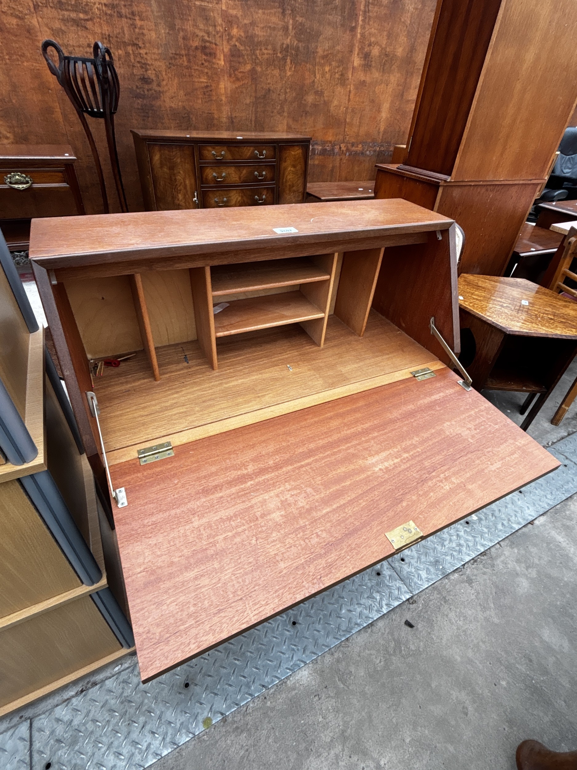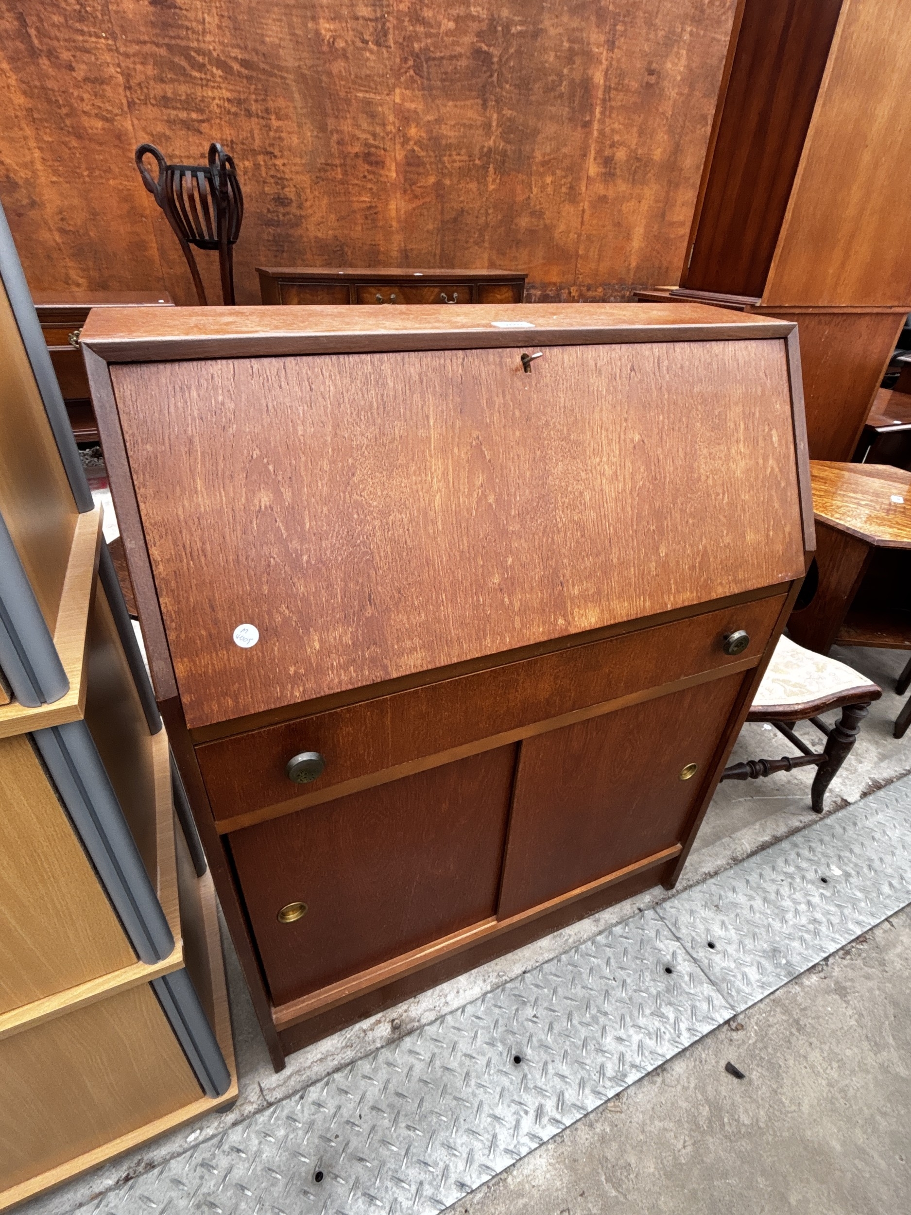 A RETRO TEAK BUREAU WITH SLIDING DOORS TO BASE, 29.5" WIDE