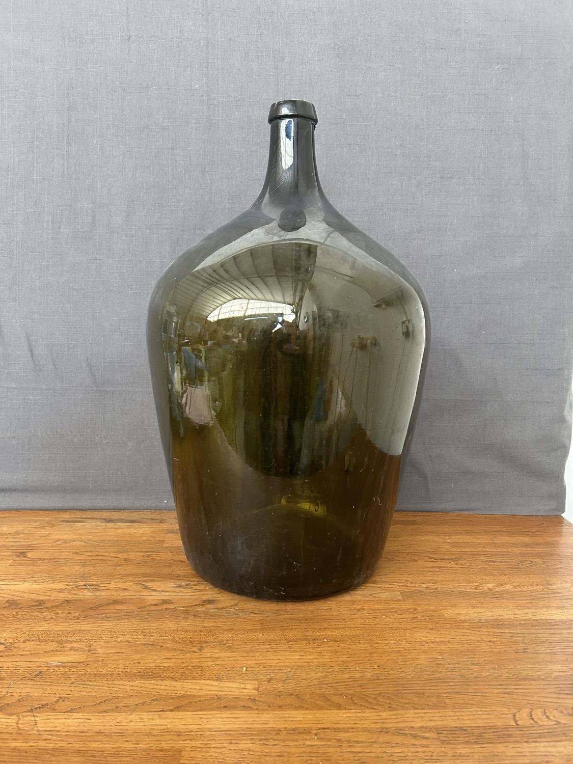 Large Blown Glass Green Decorative Wine/Oil Bottle (58cm H.)