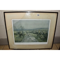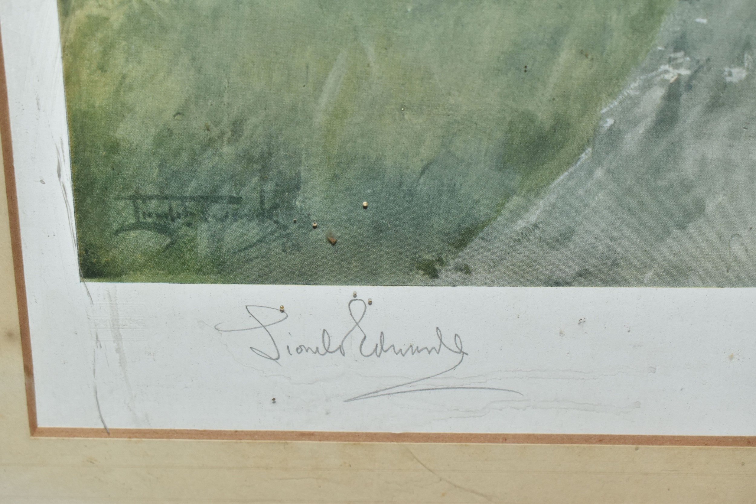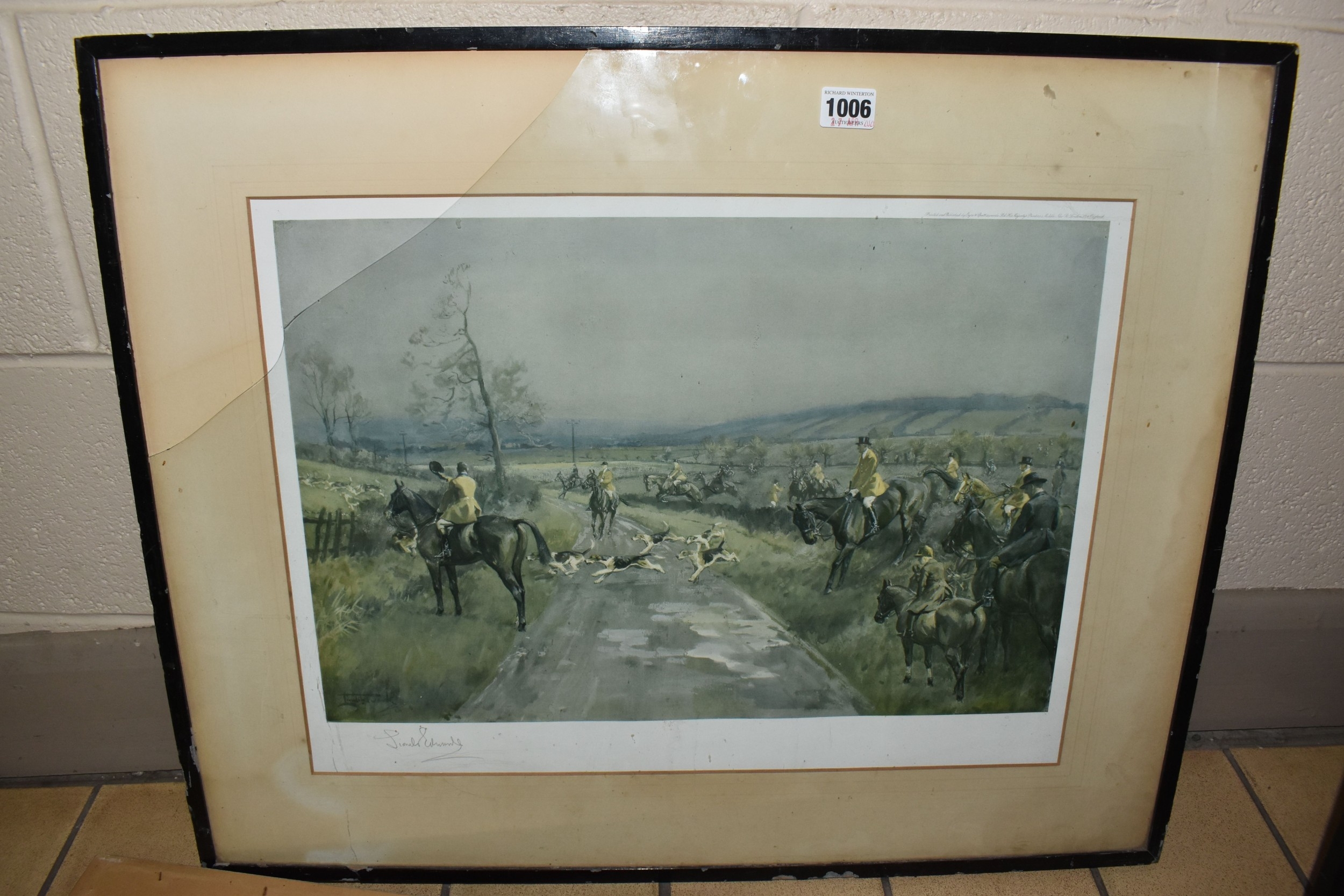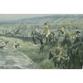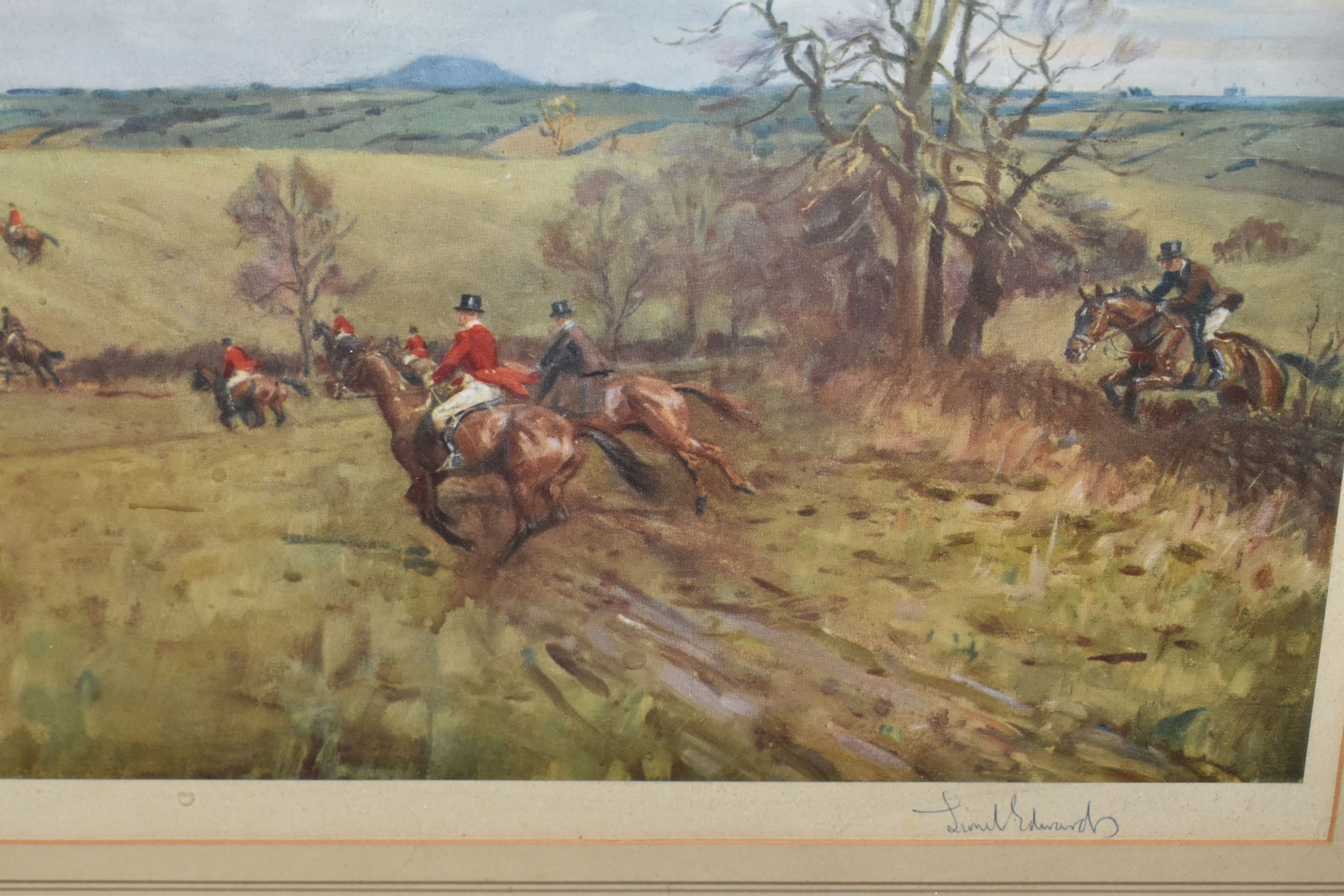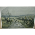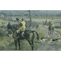 FOUR HORSE RELATED PICTURES, comprising a Tom Carr etching with colours 'The Quorn at Ashby', signed titled and numbered 34/75 to lower margin - some mount burn, two signed Lionel Edwards prints, 'The Quorn Hunt at Lowesby' signed to the lower margin, titled to the mount, and 'The South Hunt - Notts' signed to the lower margin - some colours have faded, glass broken, together with a watercolour portrait of Race Horse 'My Derya' by R.G. Adamson, approximate size 22cm x 19cm