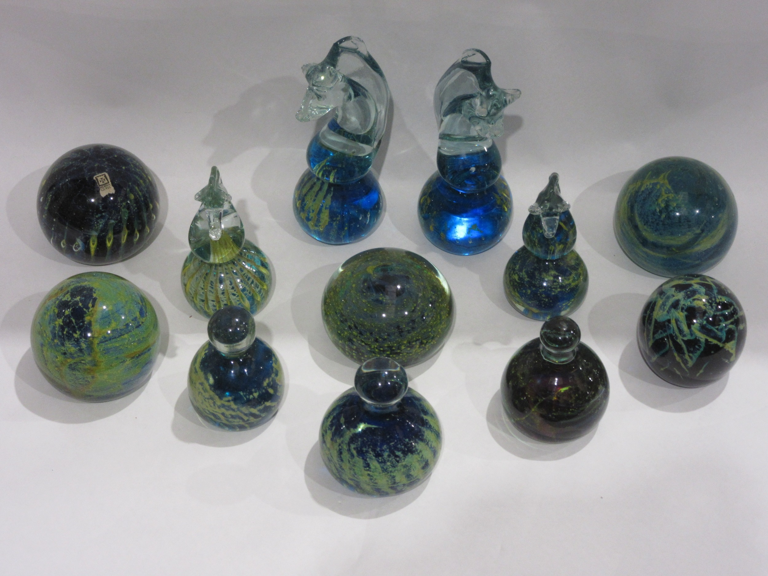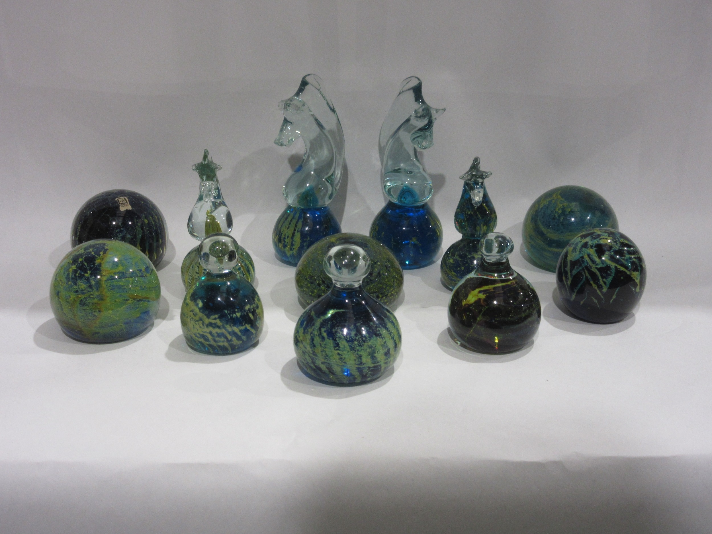12 Mdina paperweights, four seahorse design and five bulbous examples etc.
