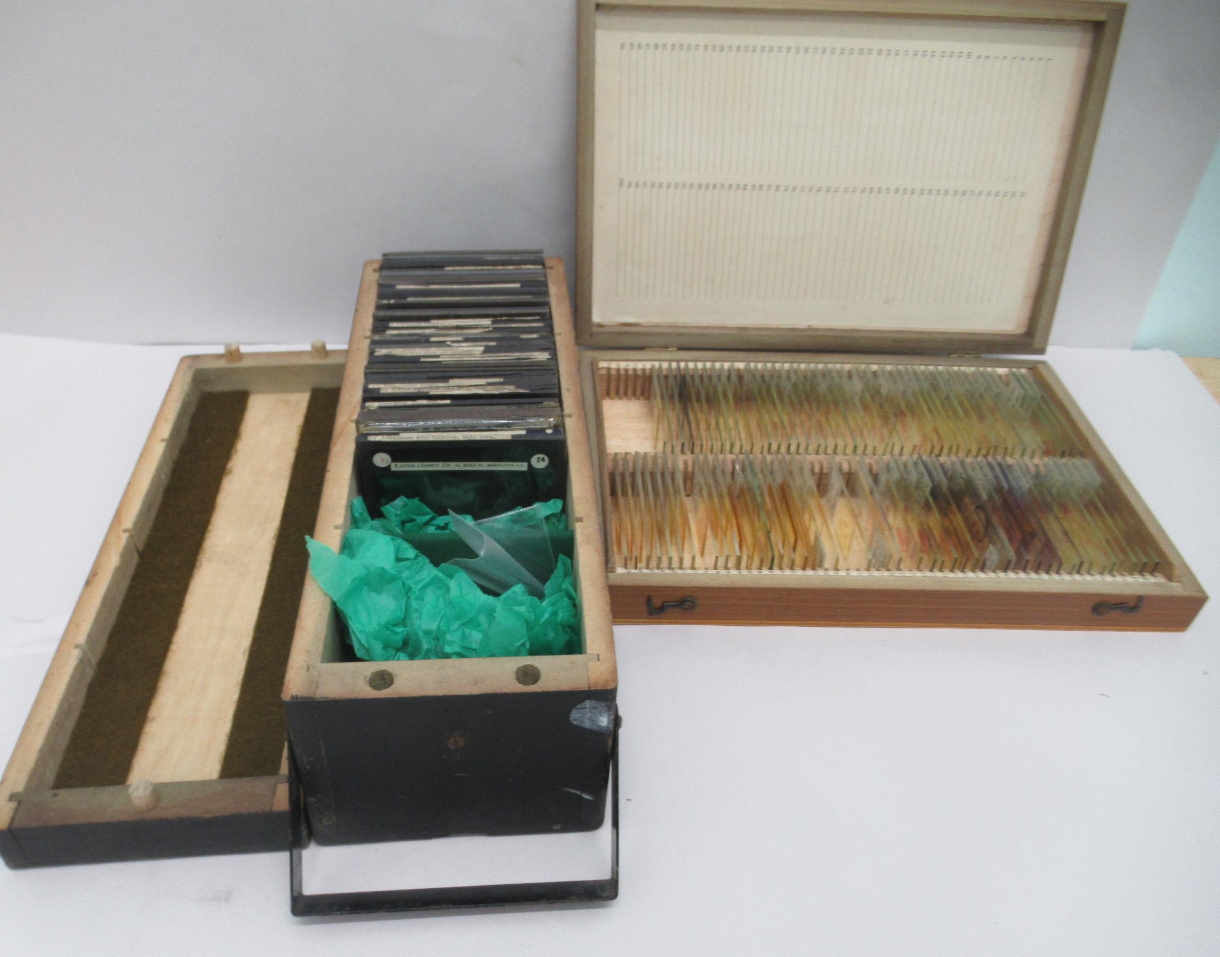 Vintage glass lantern slides, featuring an eclectic selection of flora and fauna; and an uncollated collection of microscope slides