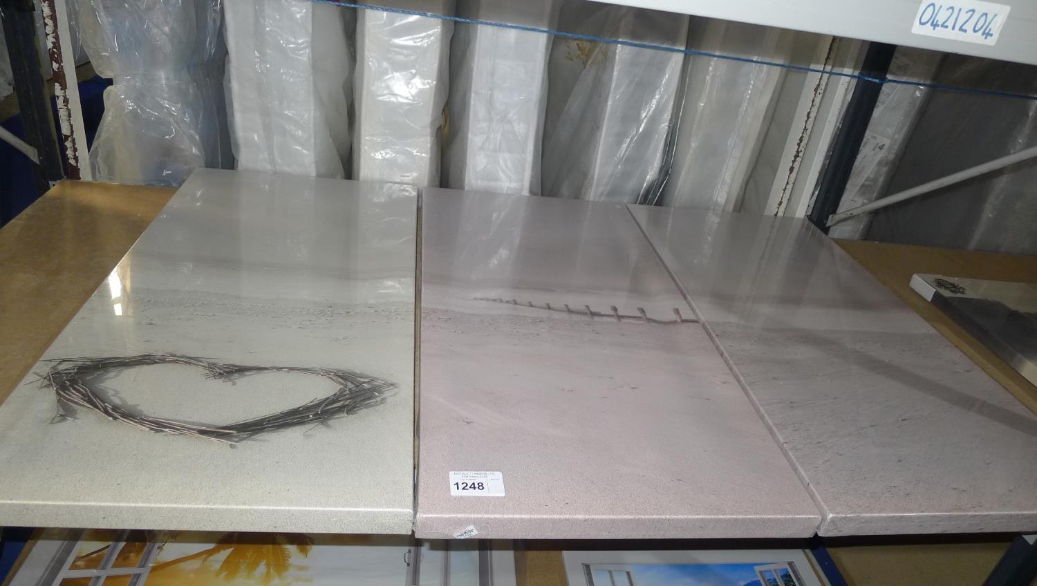 A 3 section art print on canvas - beach with stick heart