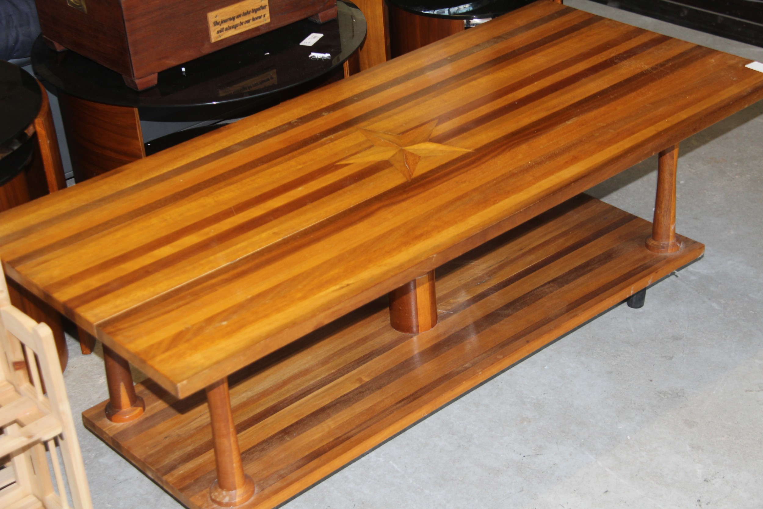 An Oblong Coffee Table with a Star design Centre marquetry and a raised Undershelf
