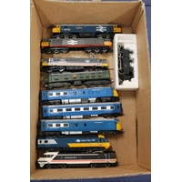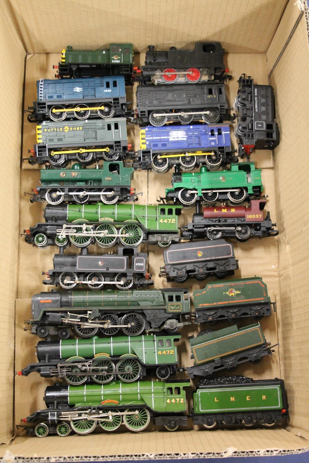 Hornby and Triang Hornby OO gauge model railways to include 4-6-2 Flying Scotsman tender locomotive 4472 LNER, 4-6-2 Britannia tender locomotive 70000 BR green, 0-6-0 Battle Zone diesel shunter, 0-6-0 Mainline diesel shunter 08523 blue, 0-4-0 Dock Authority diesel shunter 3 black, etc.