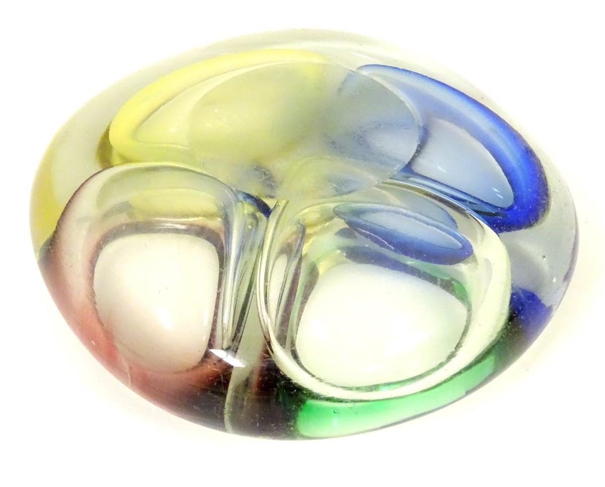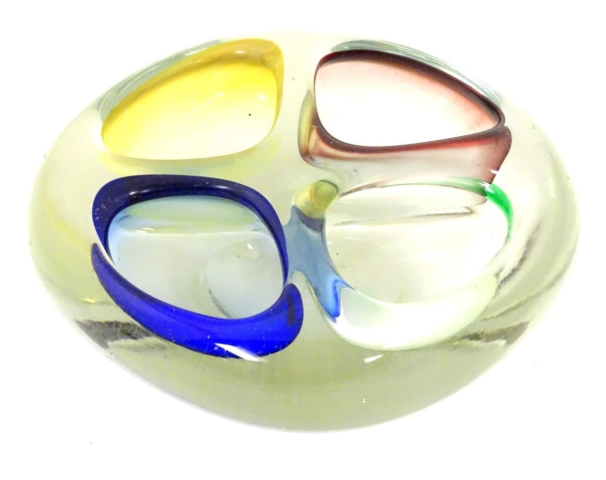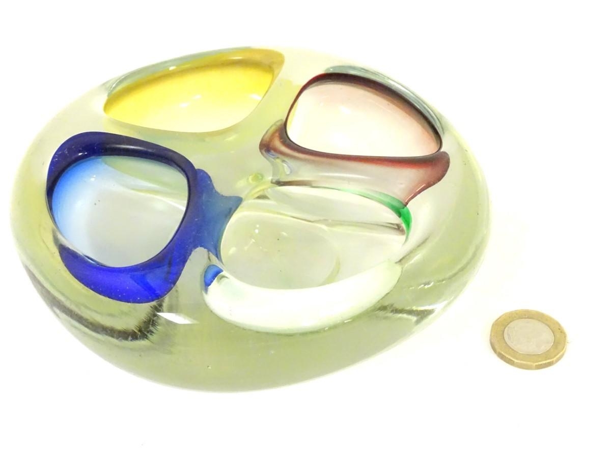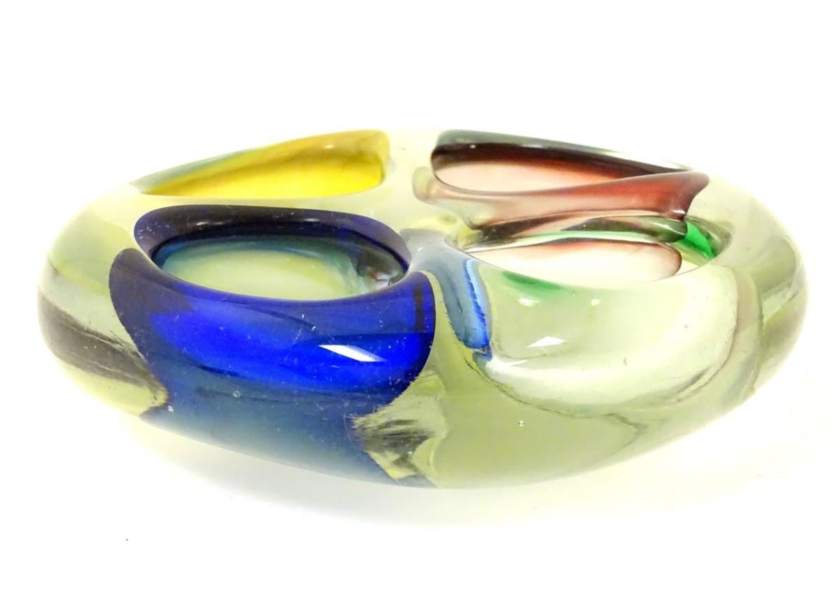 A retro studio art glass four division dish with coloured detail to wells. 6'' wide