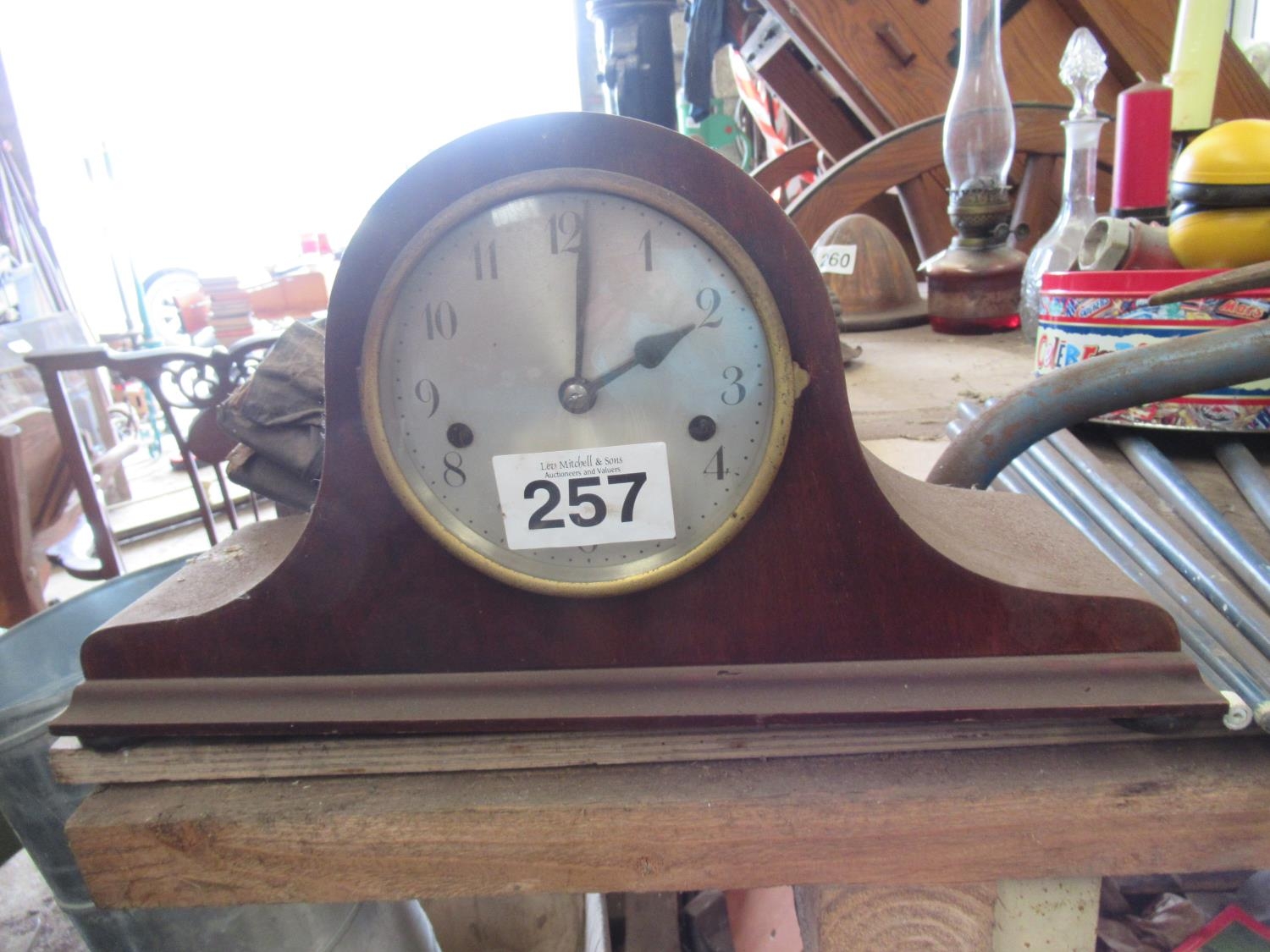 Mahogany mantle clock.