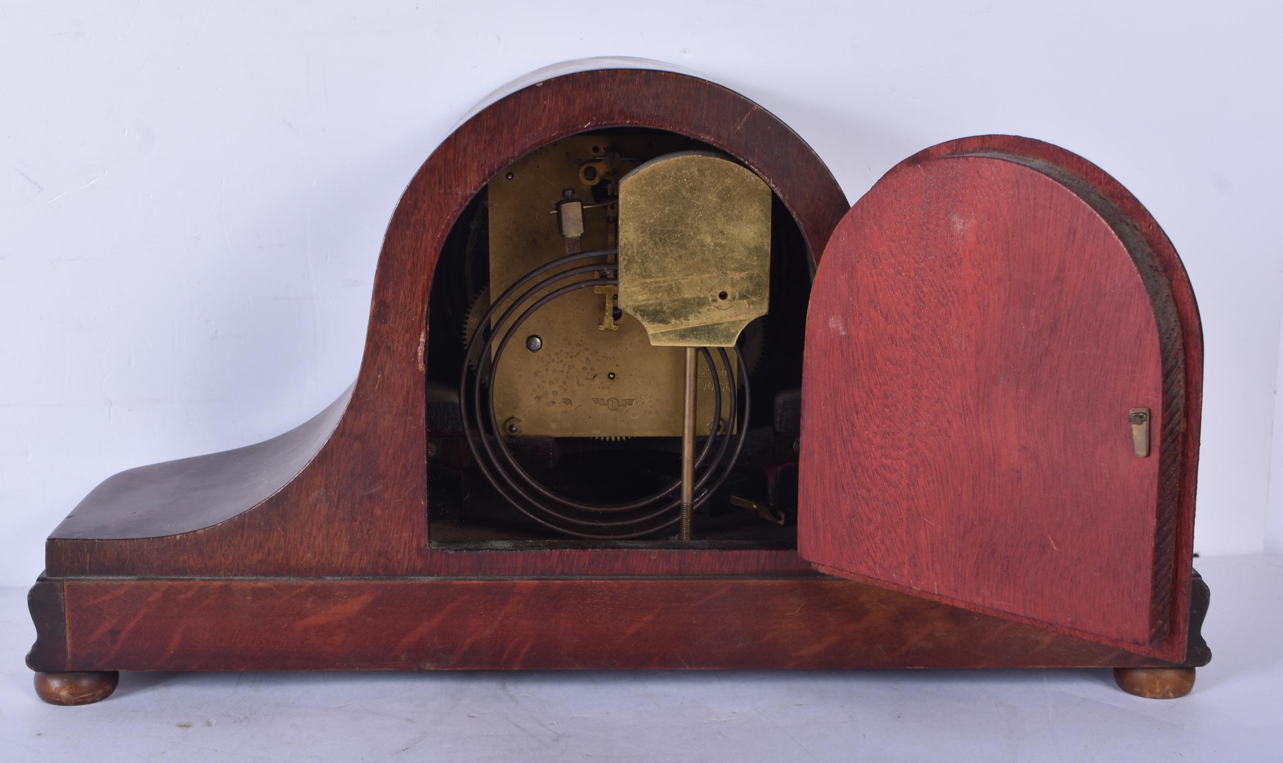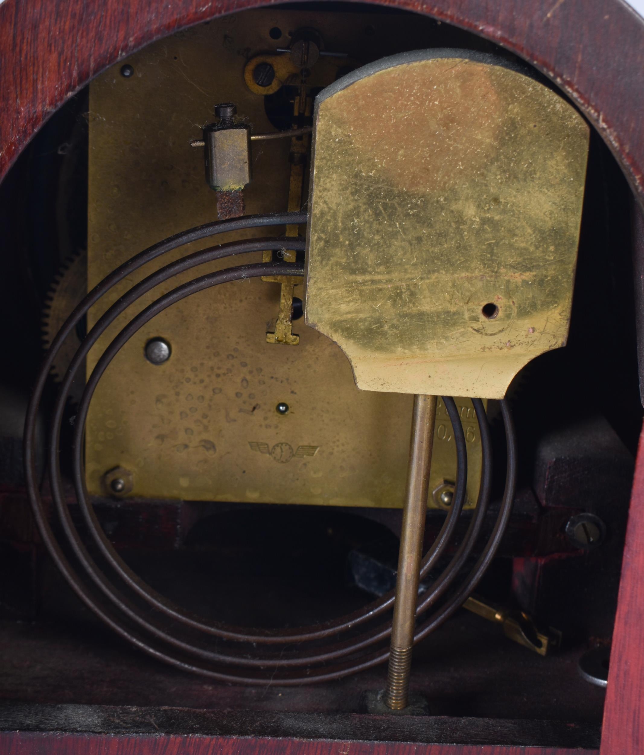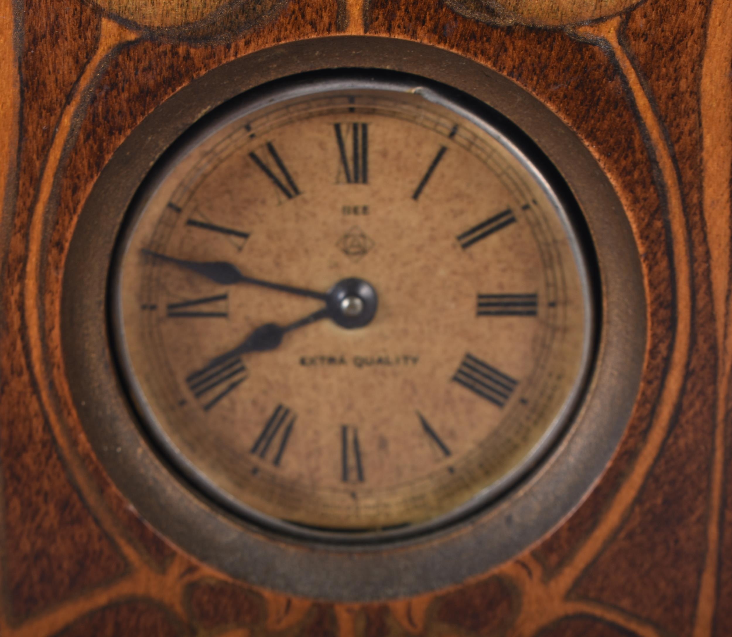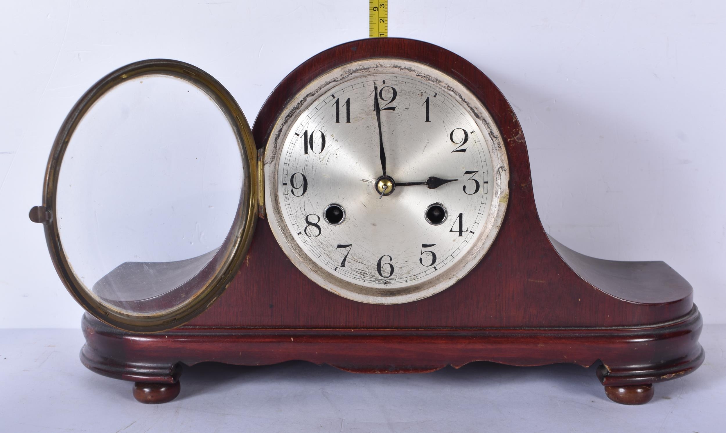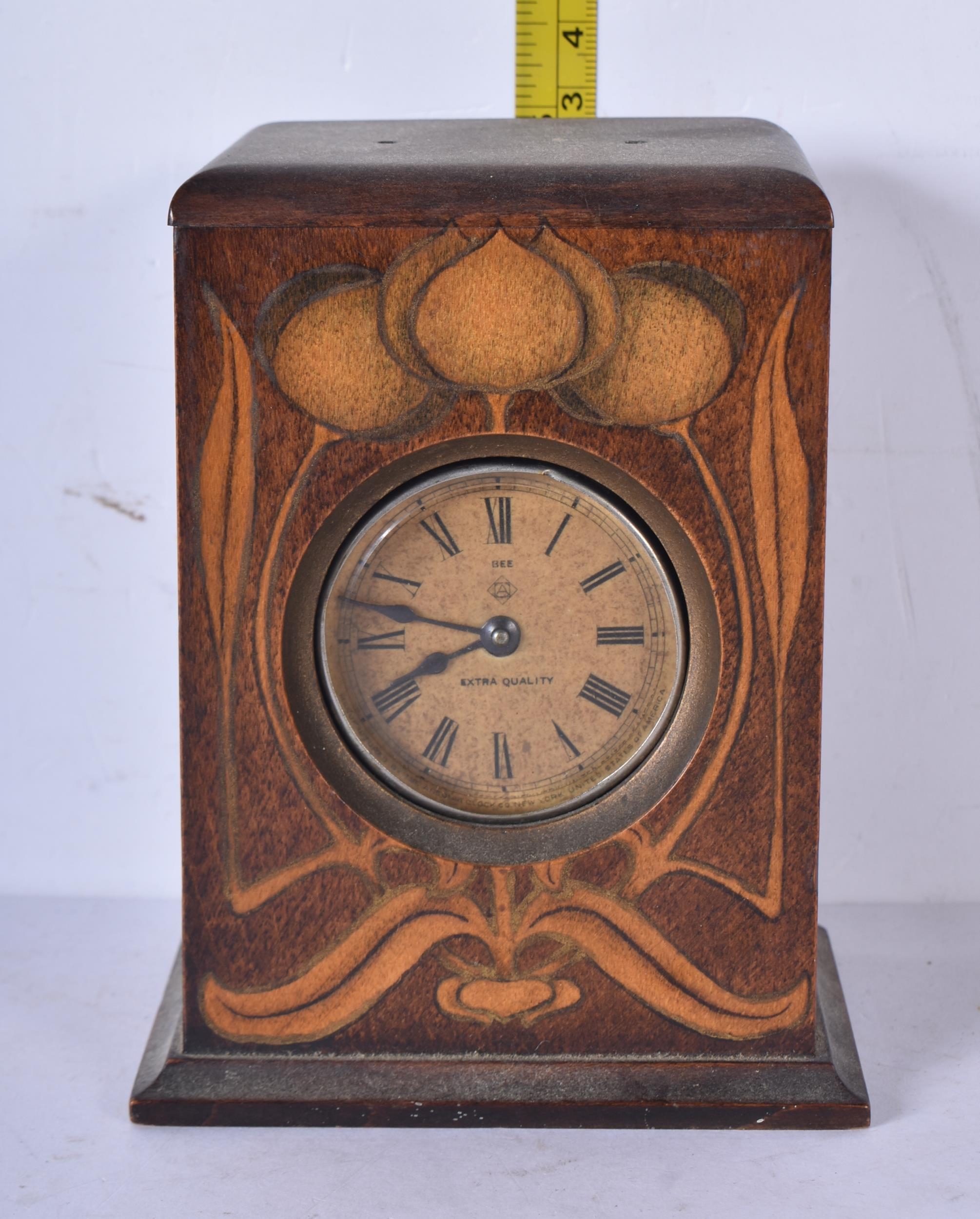 A mahogany cased American Bee clock together with a wooden mantle clock 21 x 39cm (2)