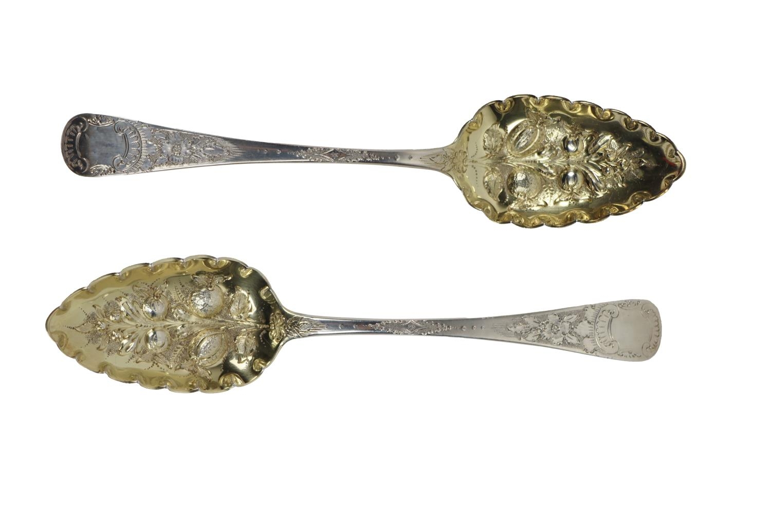 A pair of attractive early 19th Century English silver Berry Spoons, by Josiah and George Piercy, London, c. 1812, approx. 4 ounces. (2)