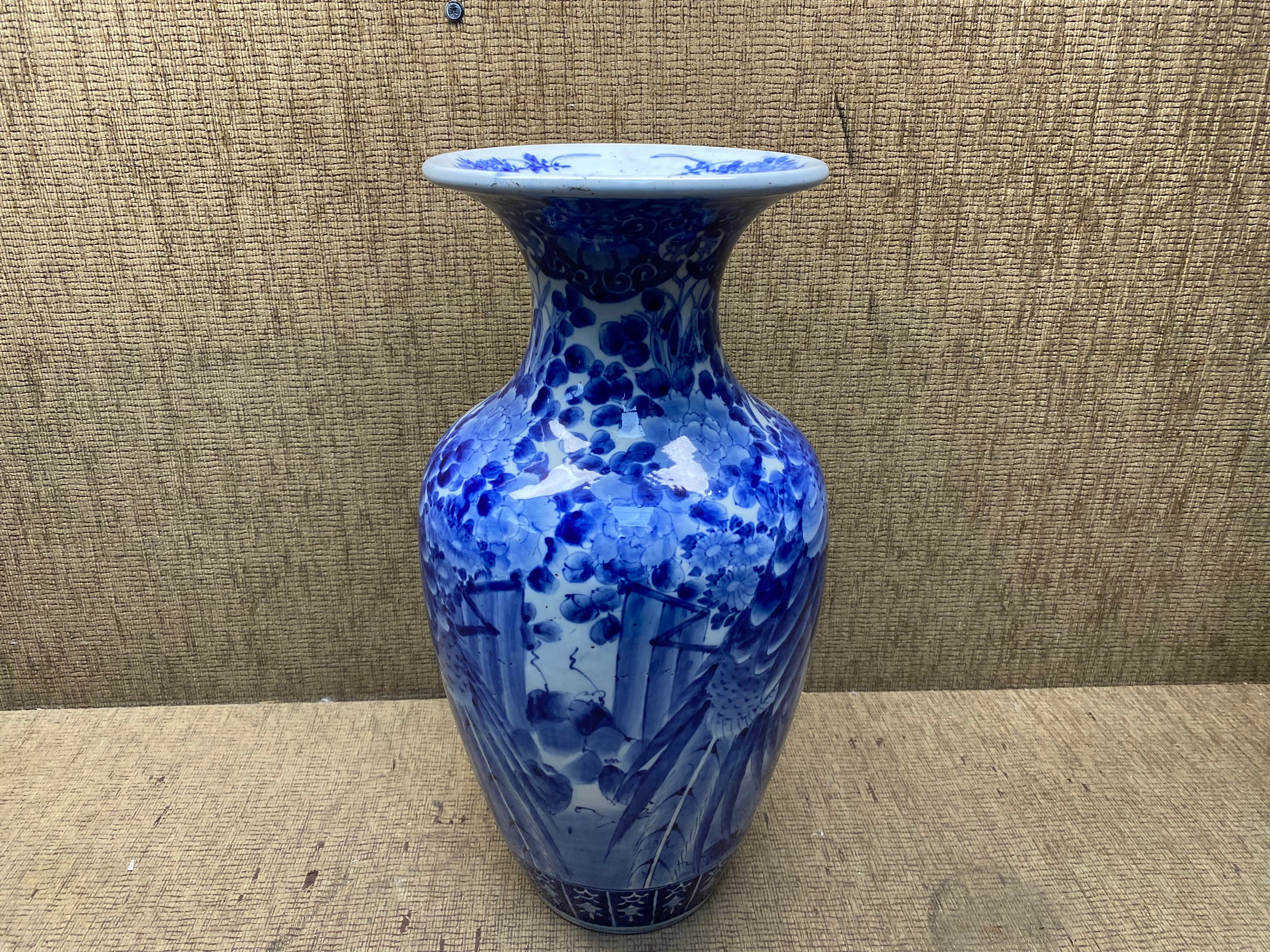 Gorgeous Chinese Blue and White porcelain vase featuring Peacock with a lovely backdrop 46cm.