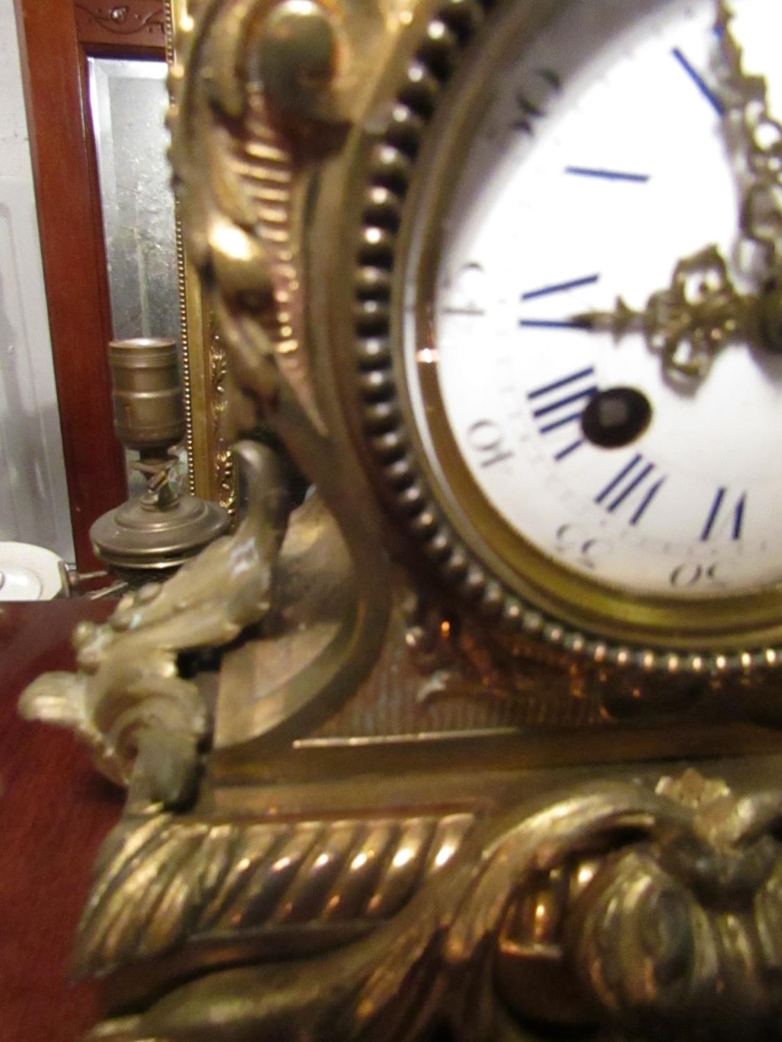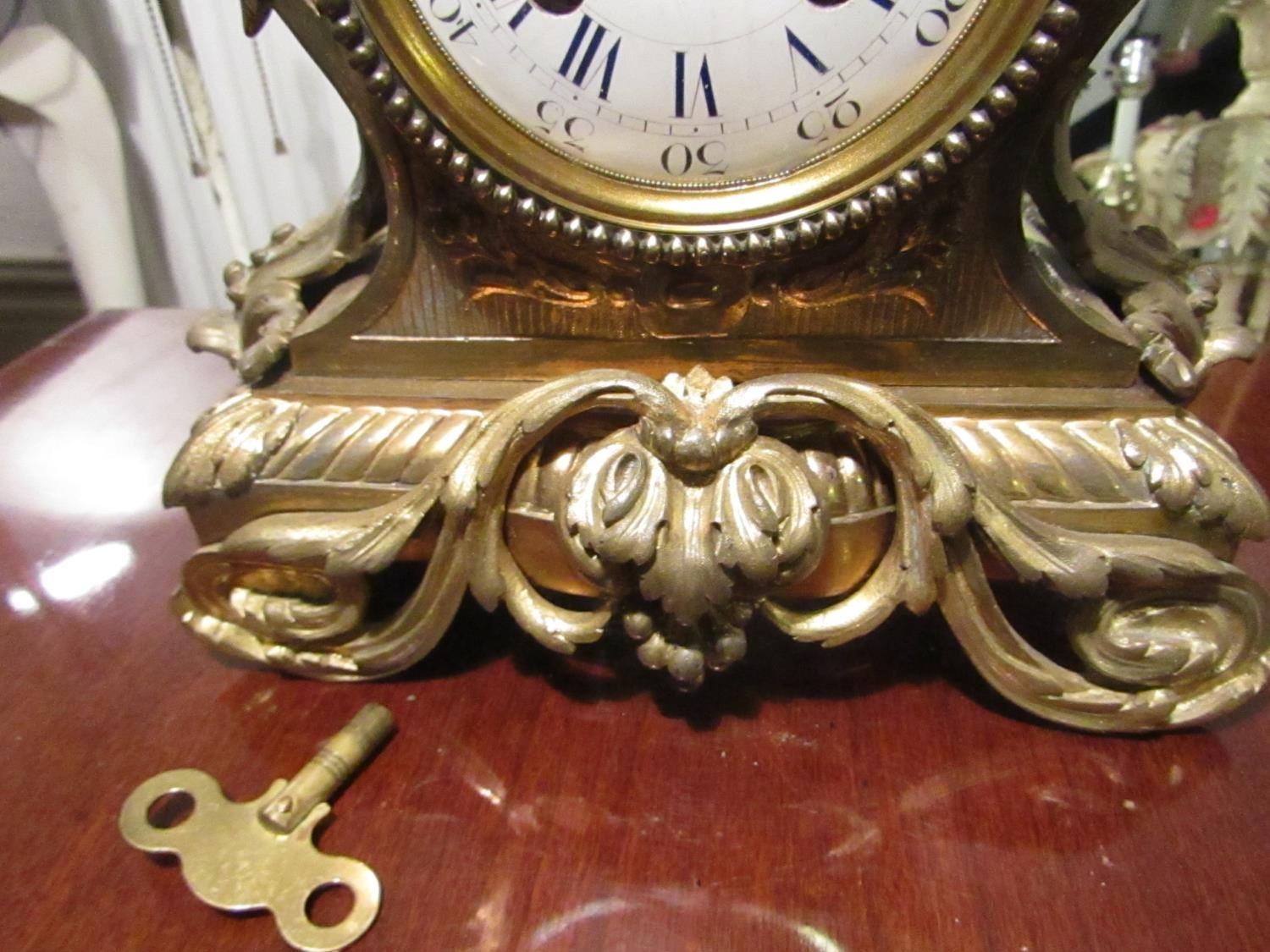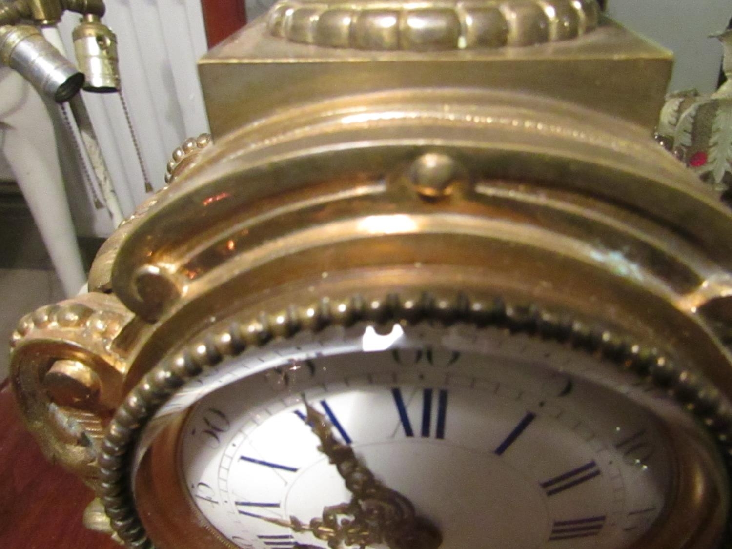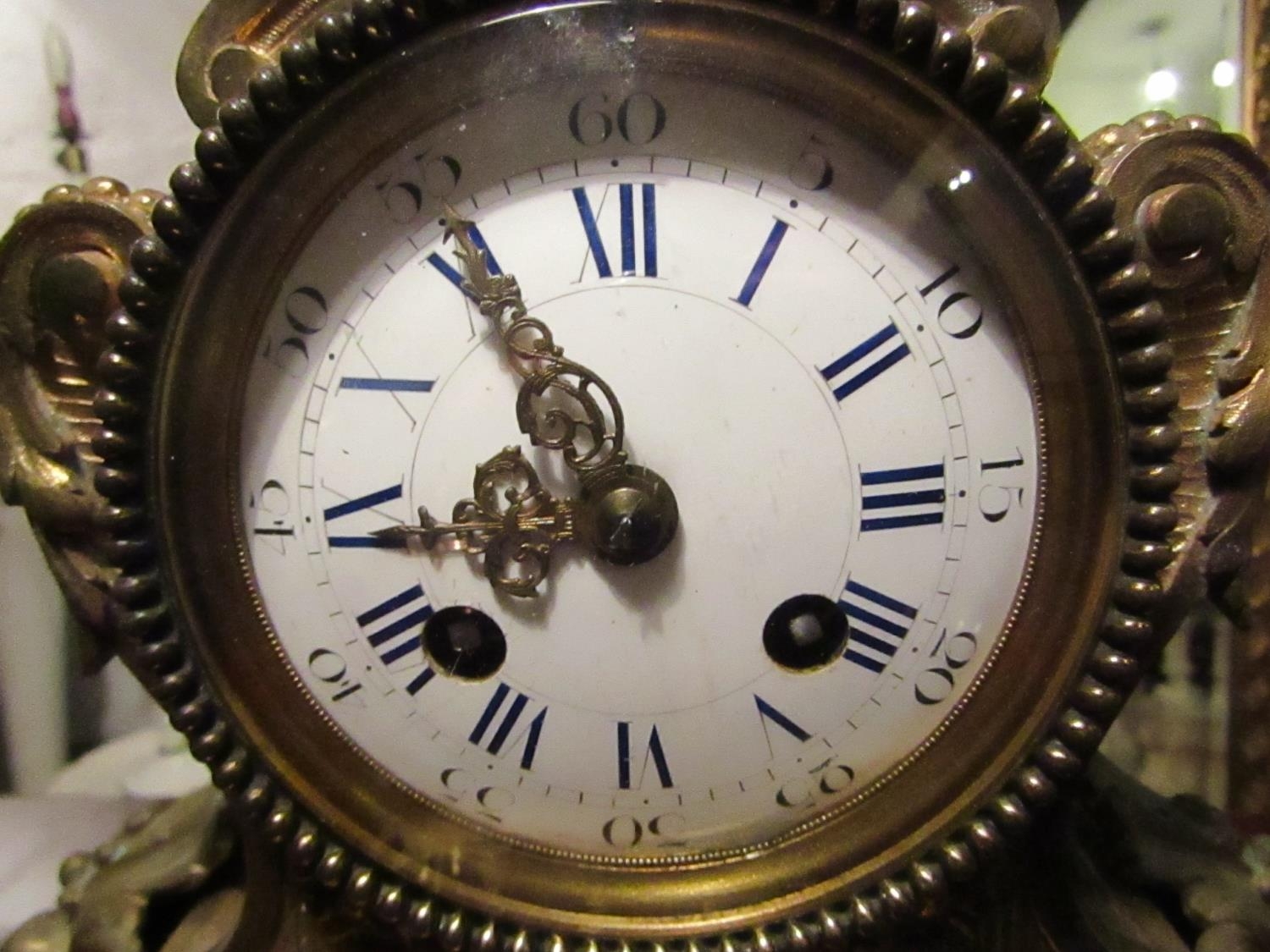 Bronze French Clock Antique Approximately 12 Inches High Roman Numeral Decorated Dial