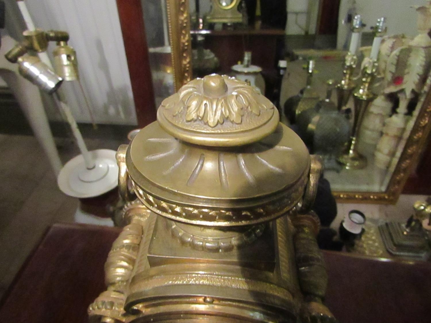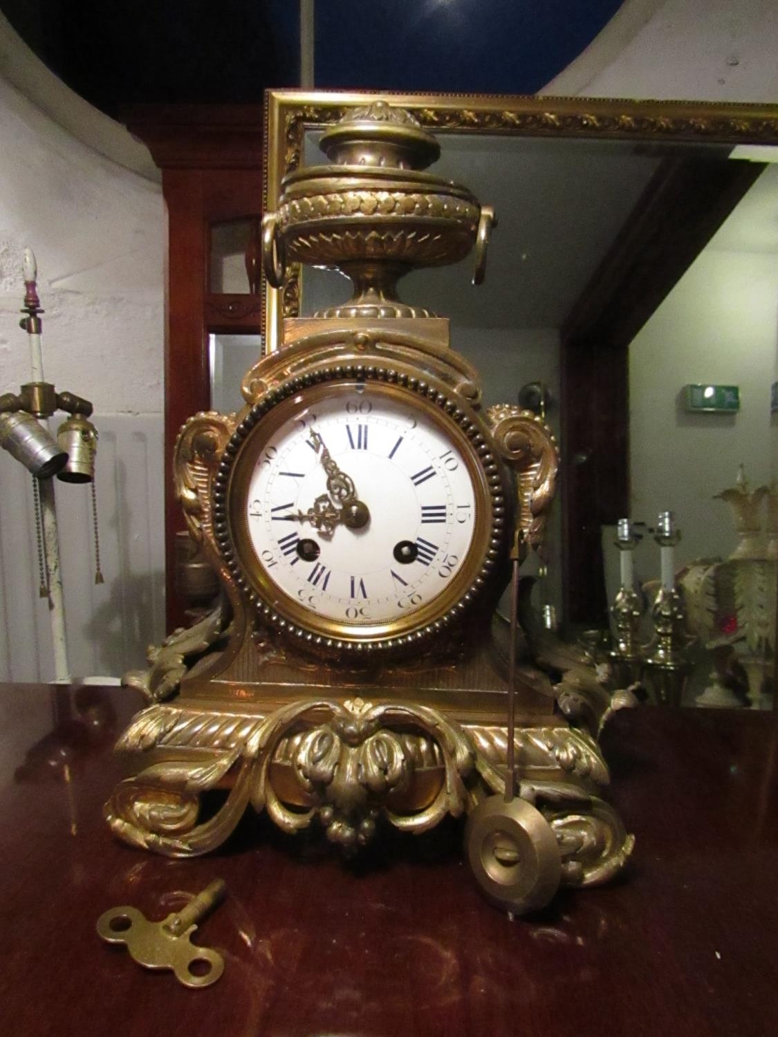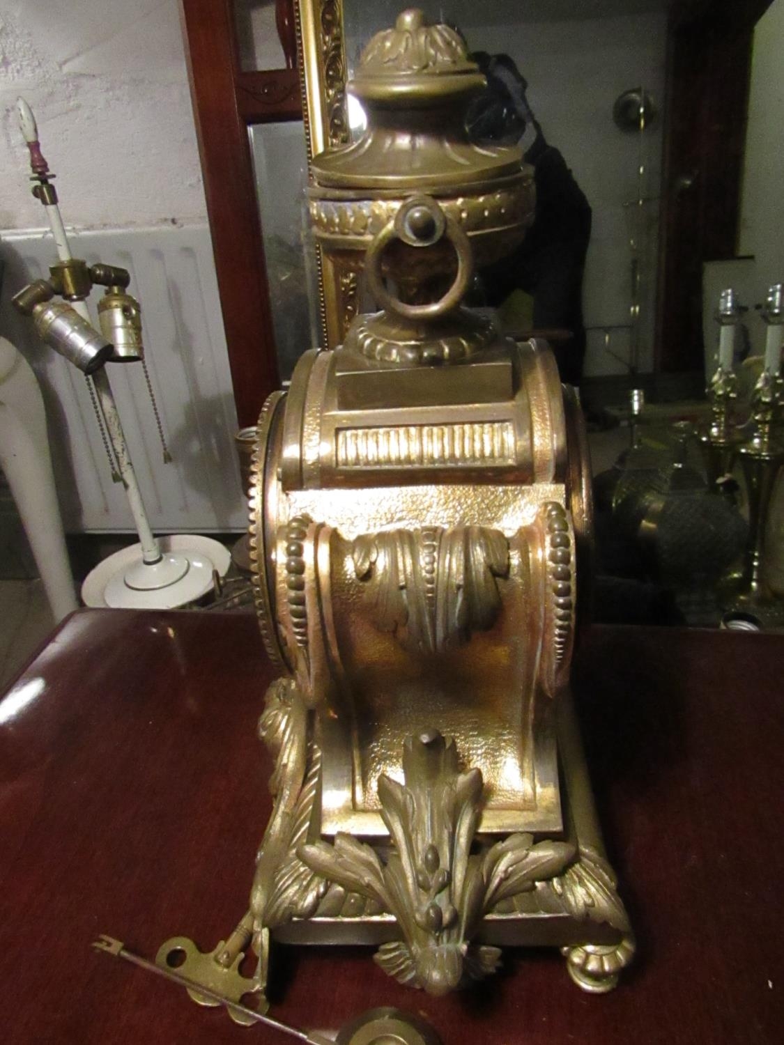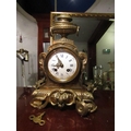 Bronze French Clock Antique Approximately 12 Inches High Roman Numeral Decorated Dial