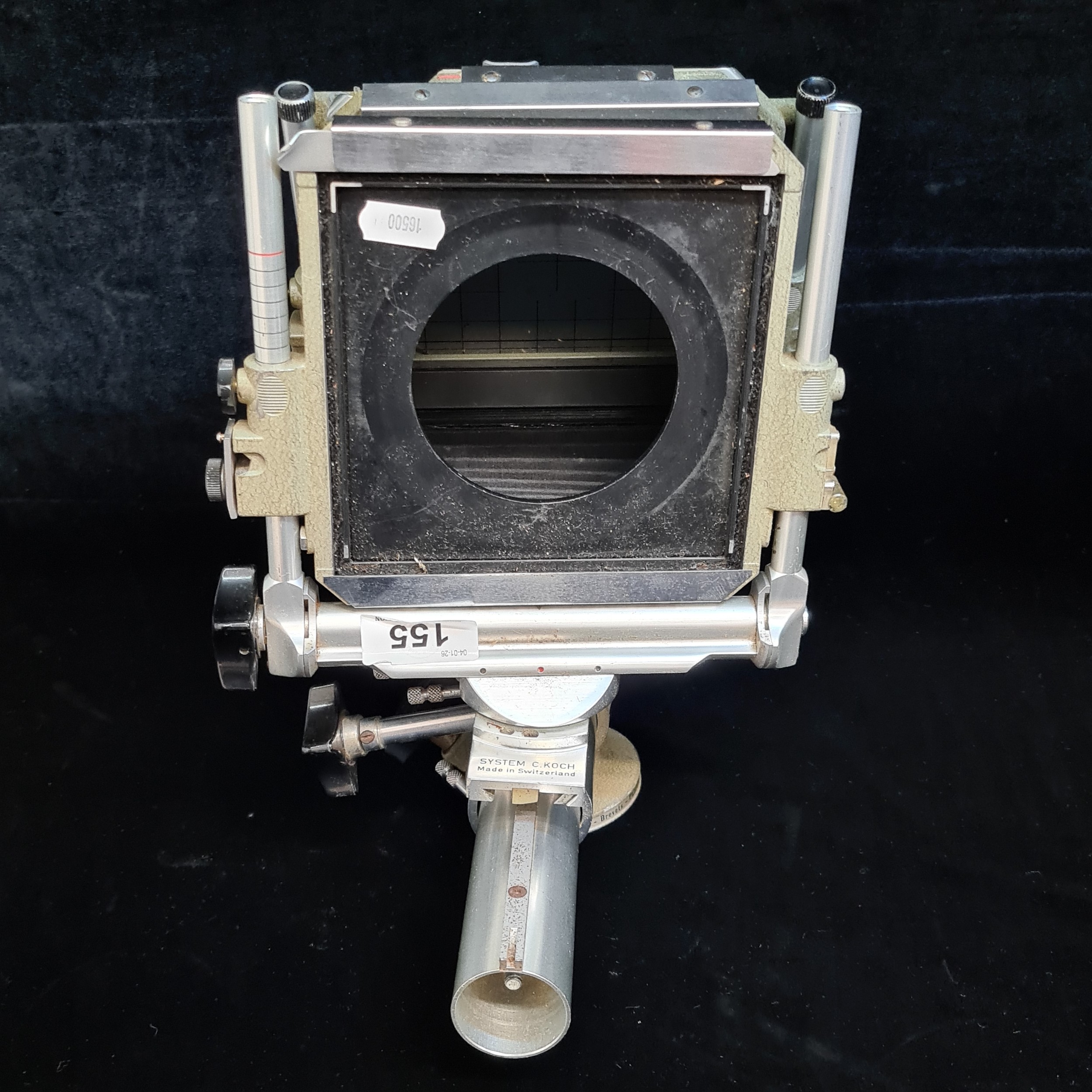 Star Lot : A vintage 'Sinar Norma System C. Koch 4x5 inch' mono rail camera. Includes a ' Maiya-Seikosha-SLV 1:3.5 f=10.5cm' lens.