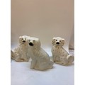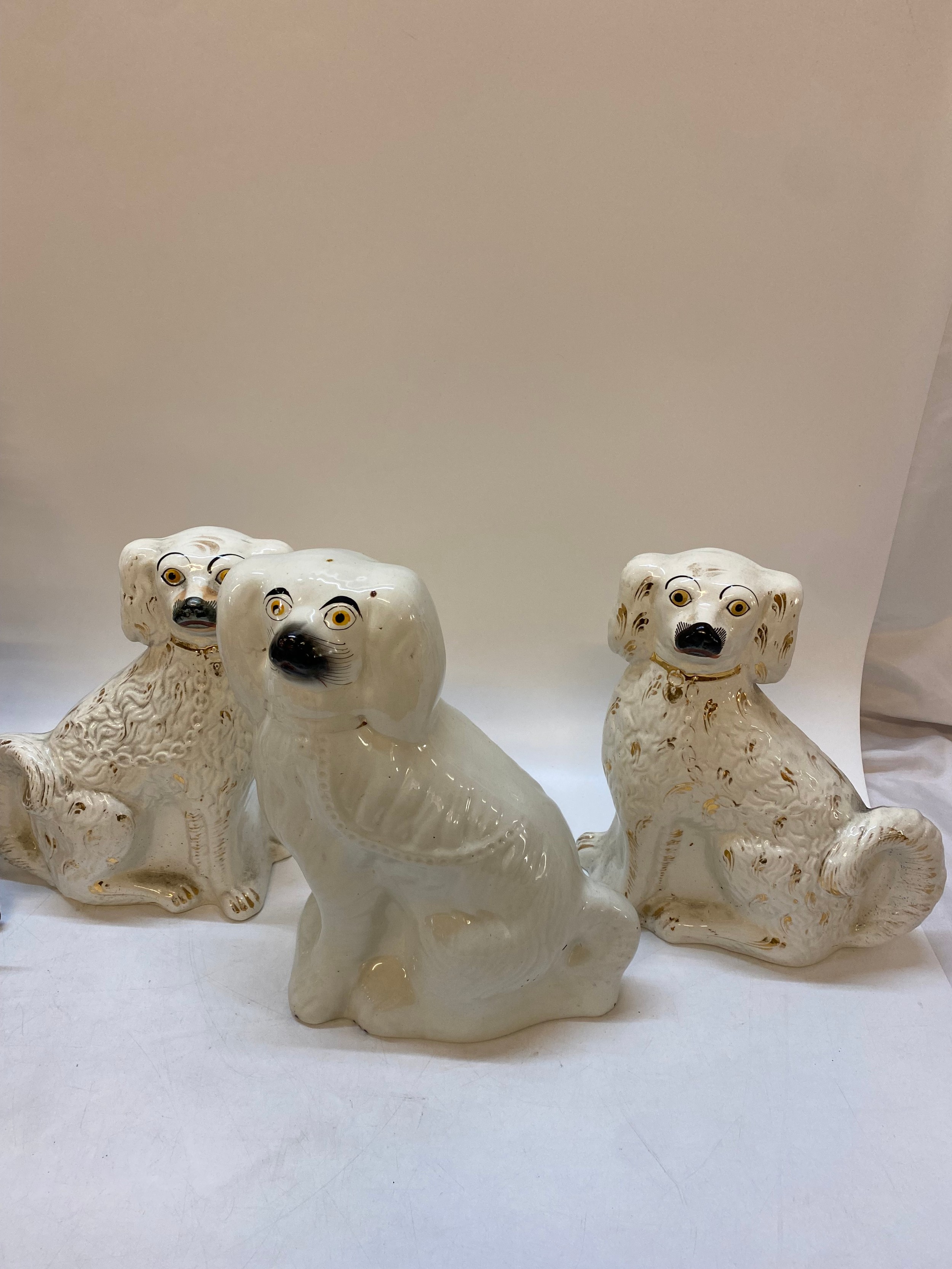 A pair of large 19th Century Staffordshire models of spaniels with gilt decoration - 12in. high and a larger ditto - 14in. high