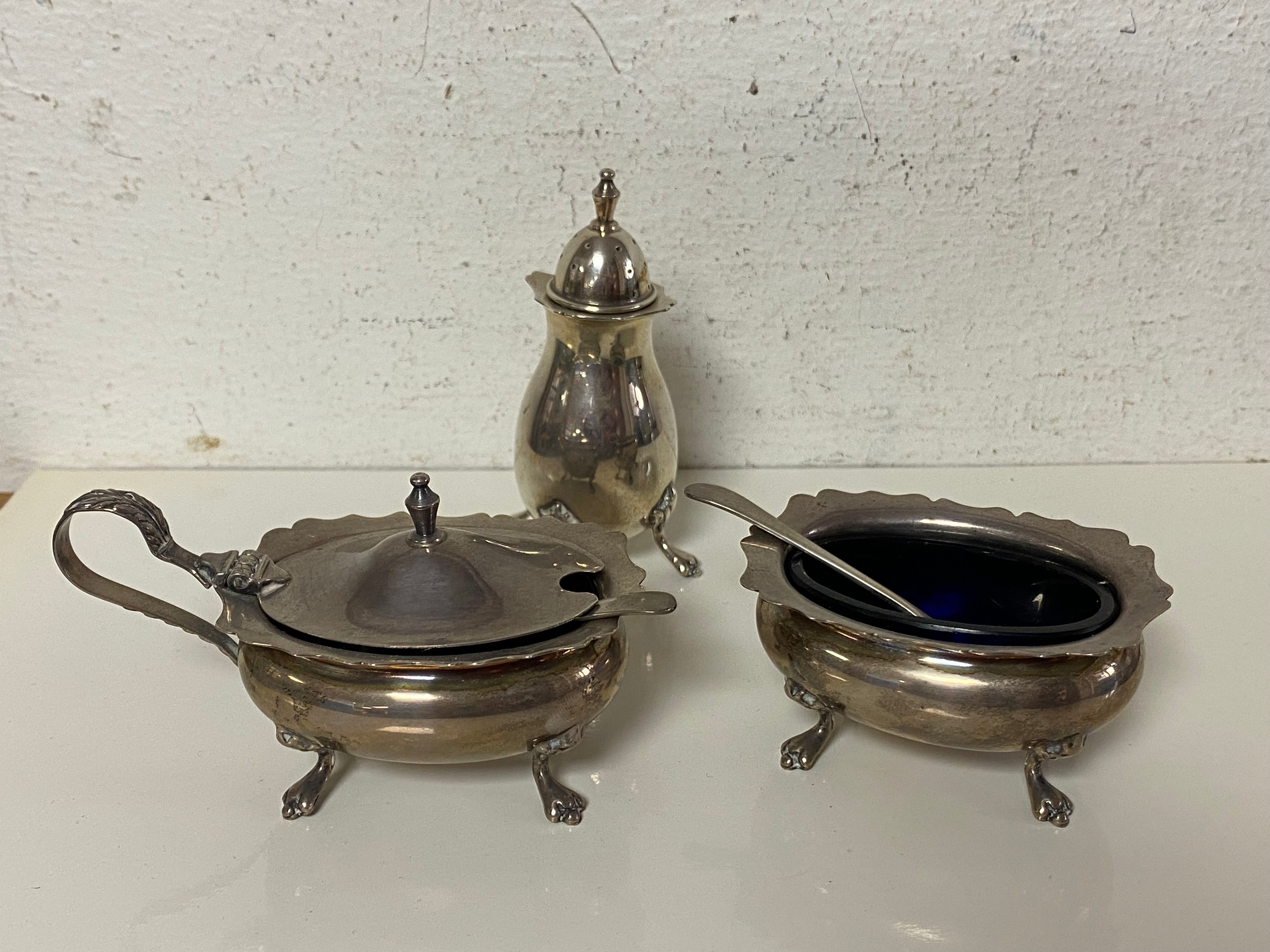 A Queen Elizabeth II silver three piece cruet, Birmingham 1975 -