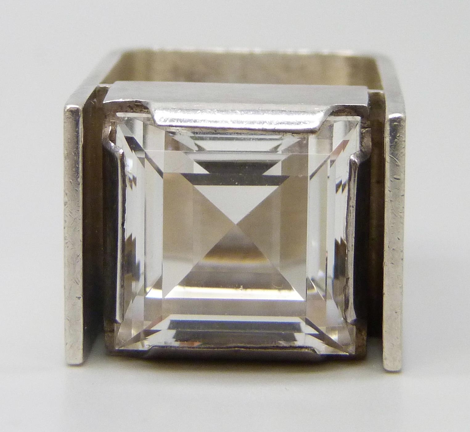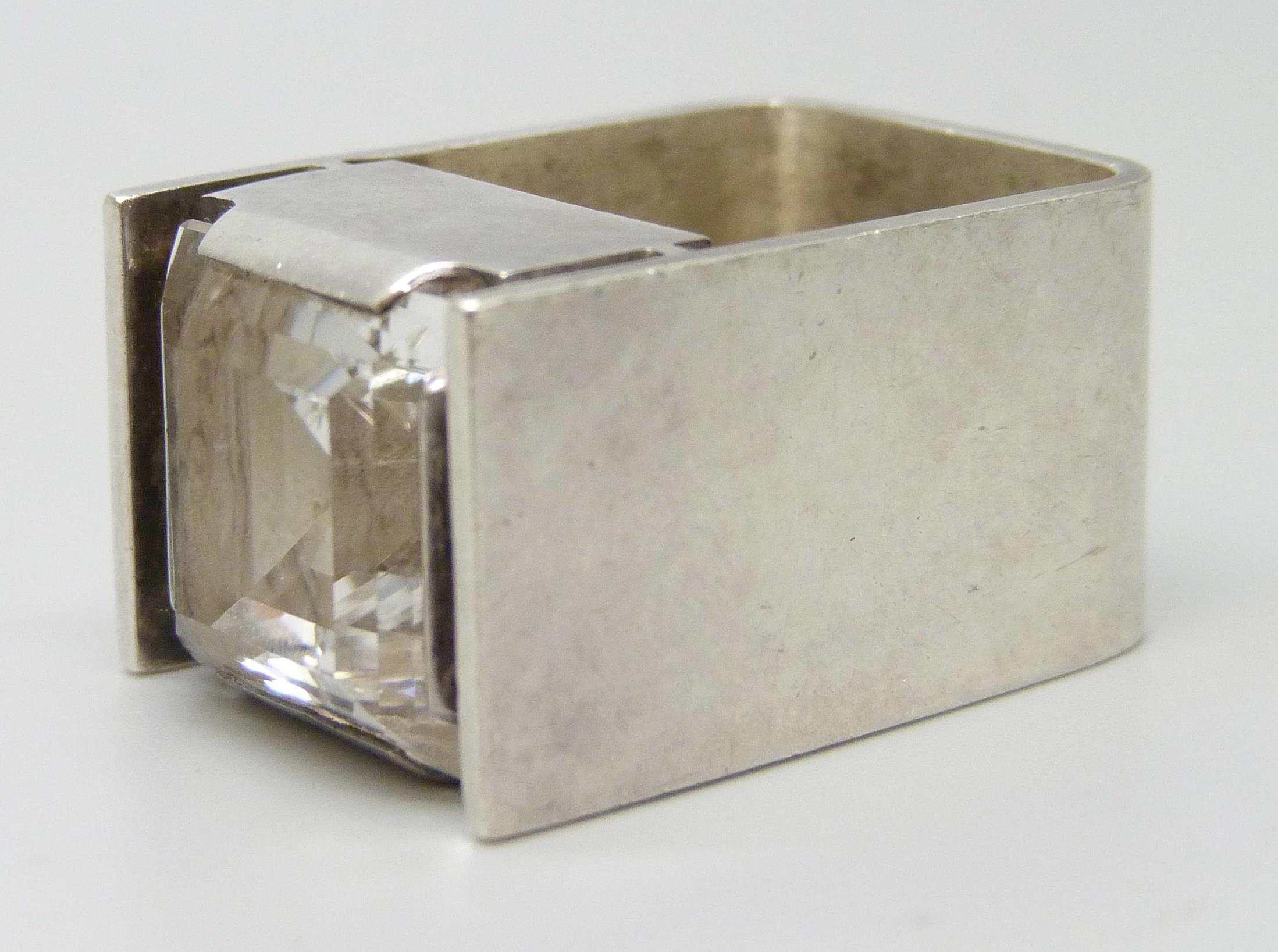 Finnish silver jewellery, a silver Modernist / Brutalist geometric ring, London import marks for 1974, Finland silver date letter for 1974, L/M
