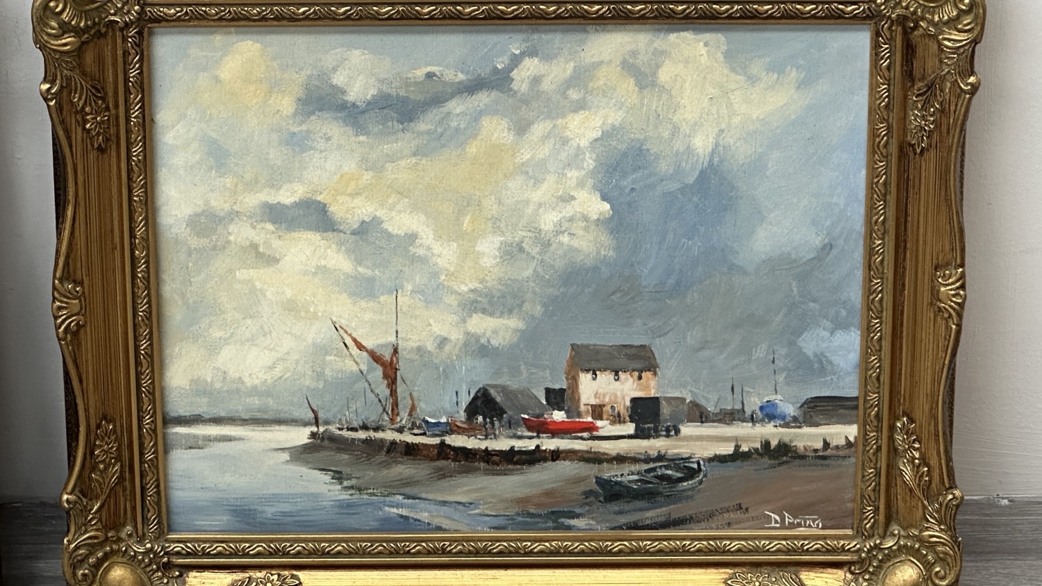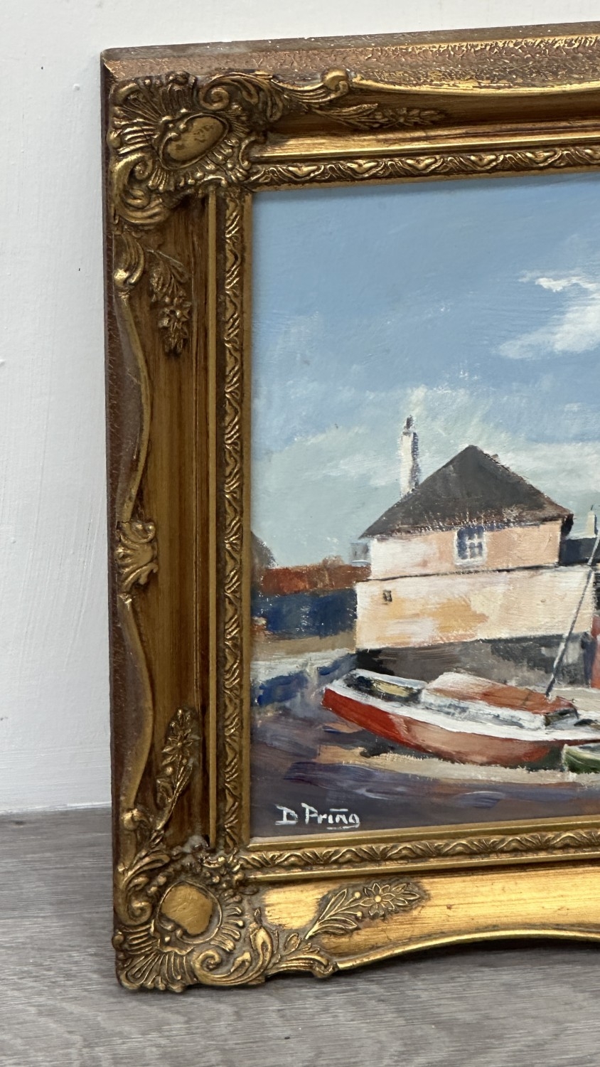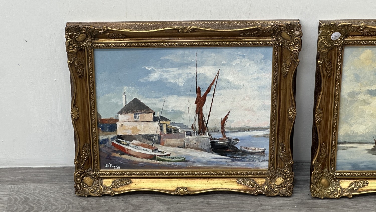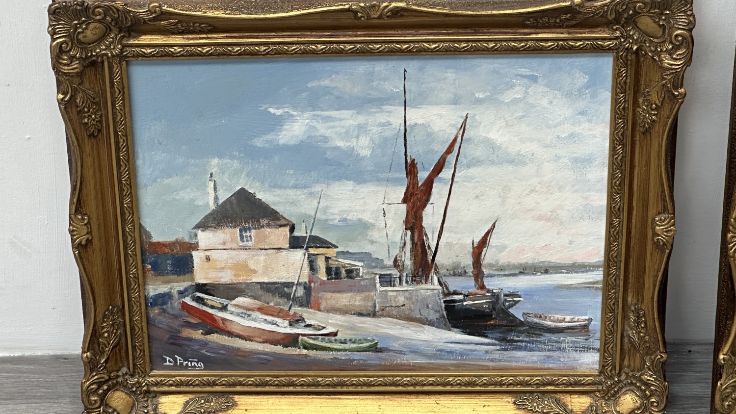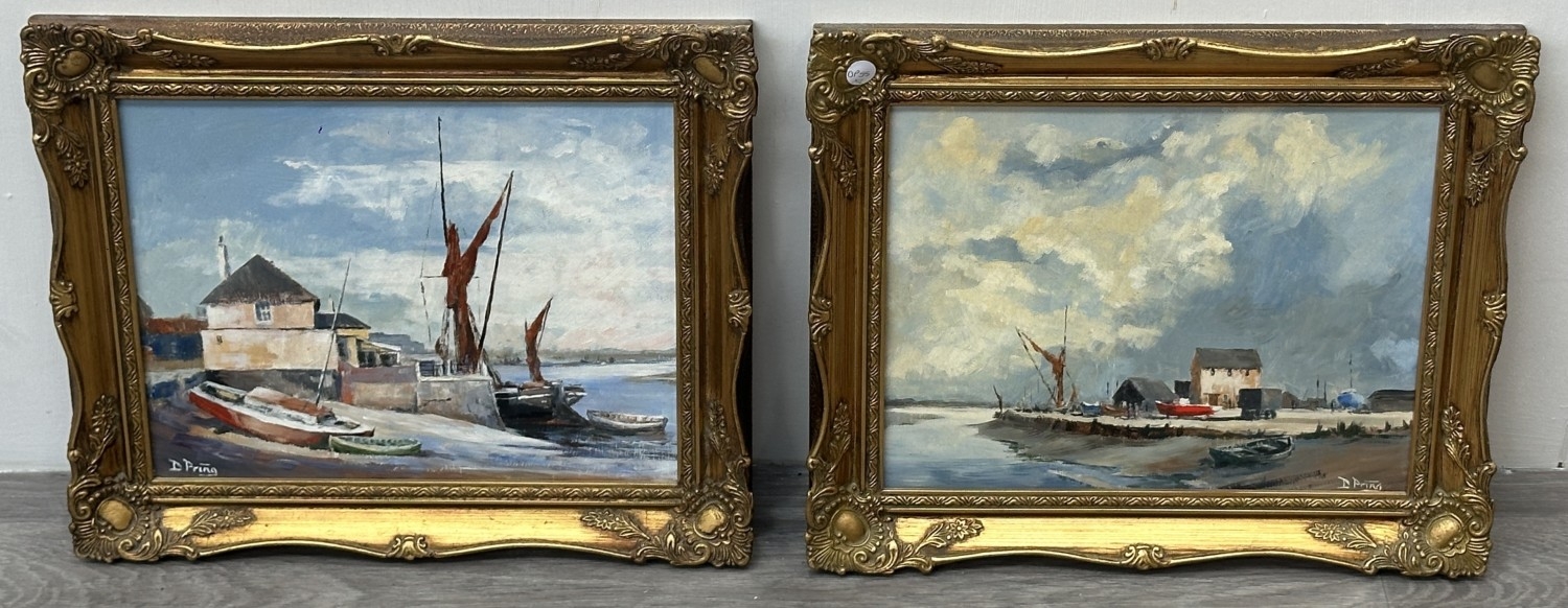 Two mid/late 20th century gilt framed nautical oils on board, signed D. Pring - approx. 37cm high x 45cm wide