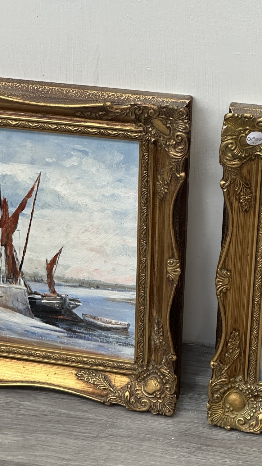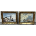 Two mid/late 20th century gilt framed nautical oils on board...