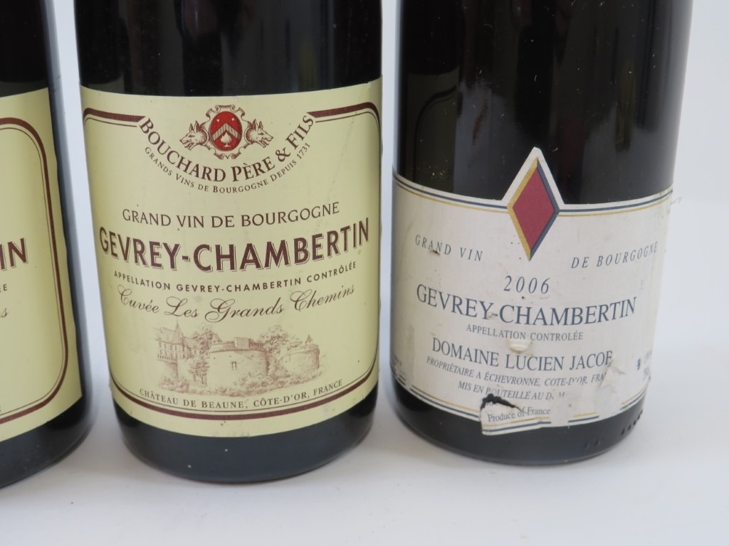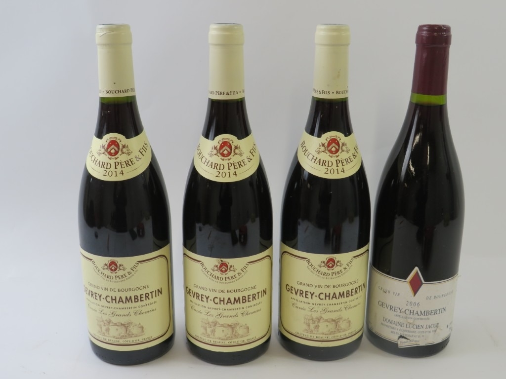4 bottles of Gevrey Chambertin red wine including 3 bottles of Cuvee les Grands Chemins 2014 and 1 bottle of Lucien Jacob 2006. All 75cl, 13% vol. (4)
