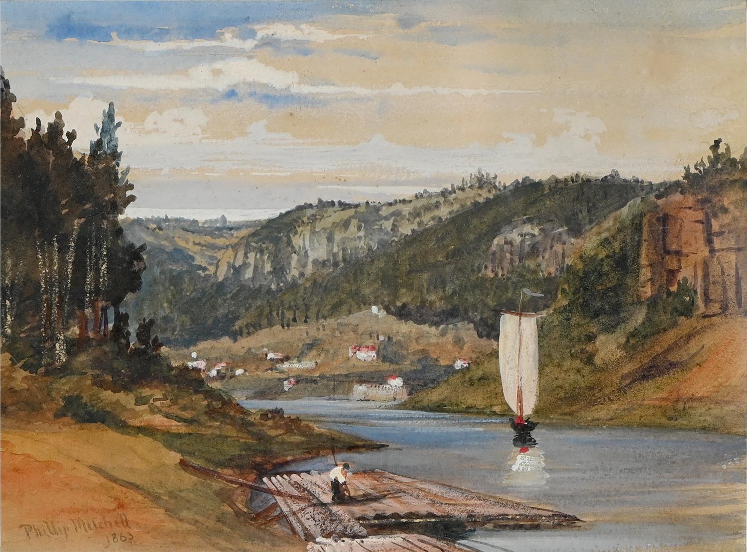 Philip Mitchell RI (1814-1896) - Logging Scene, signed and dated 1863, watercolour, 16.5 x 22cm