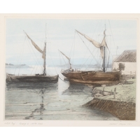 Timothy John White (1939 - 1999), fishing boat in harbour, o...