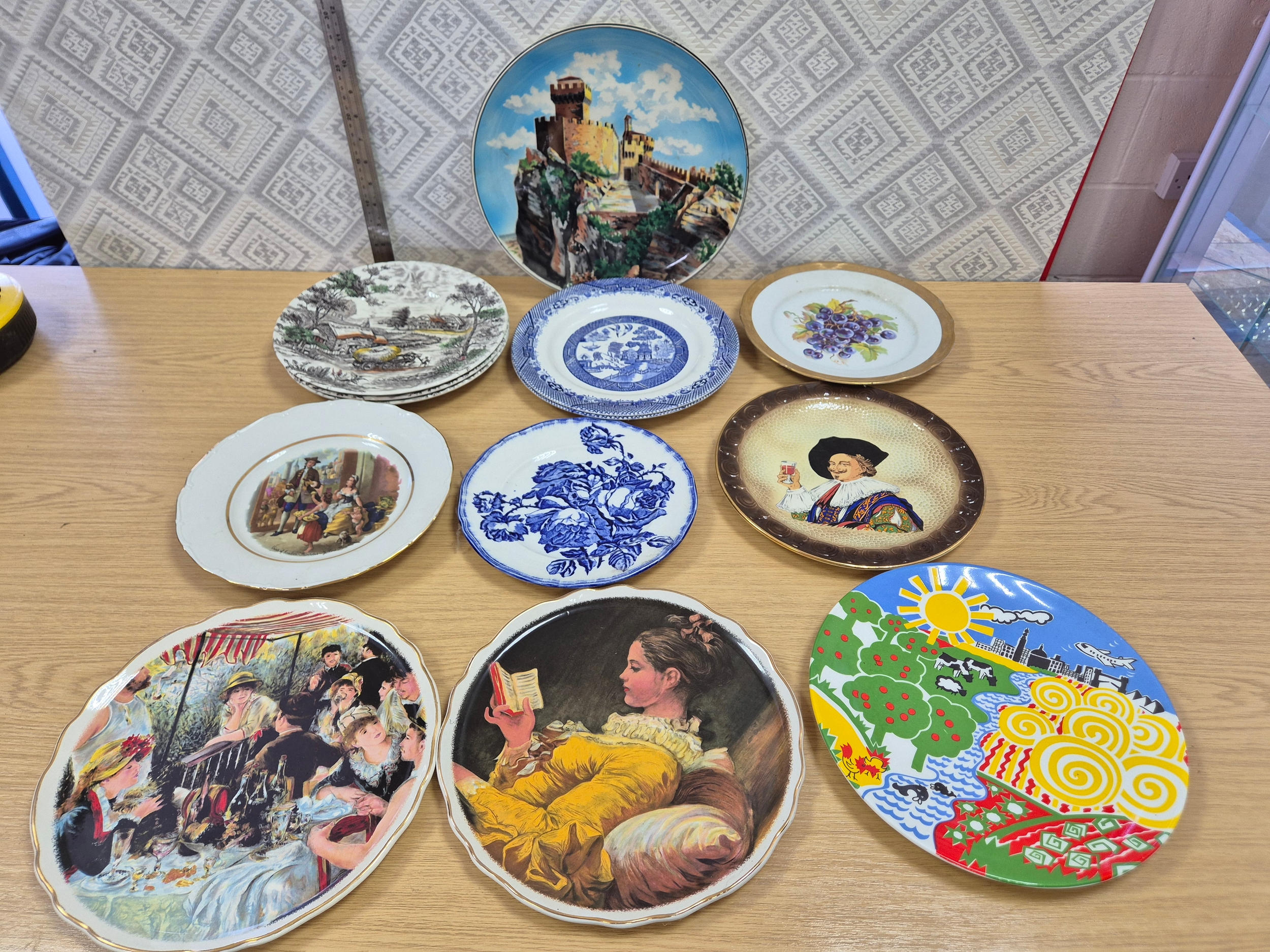 Mixed collection of ceramic plates inc willow pattern