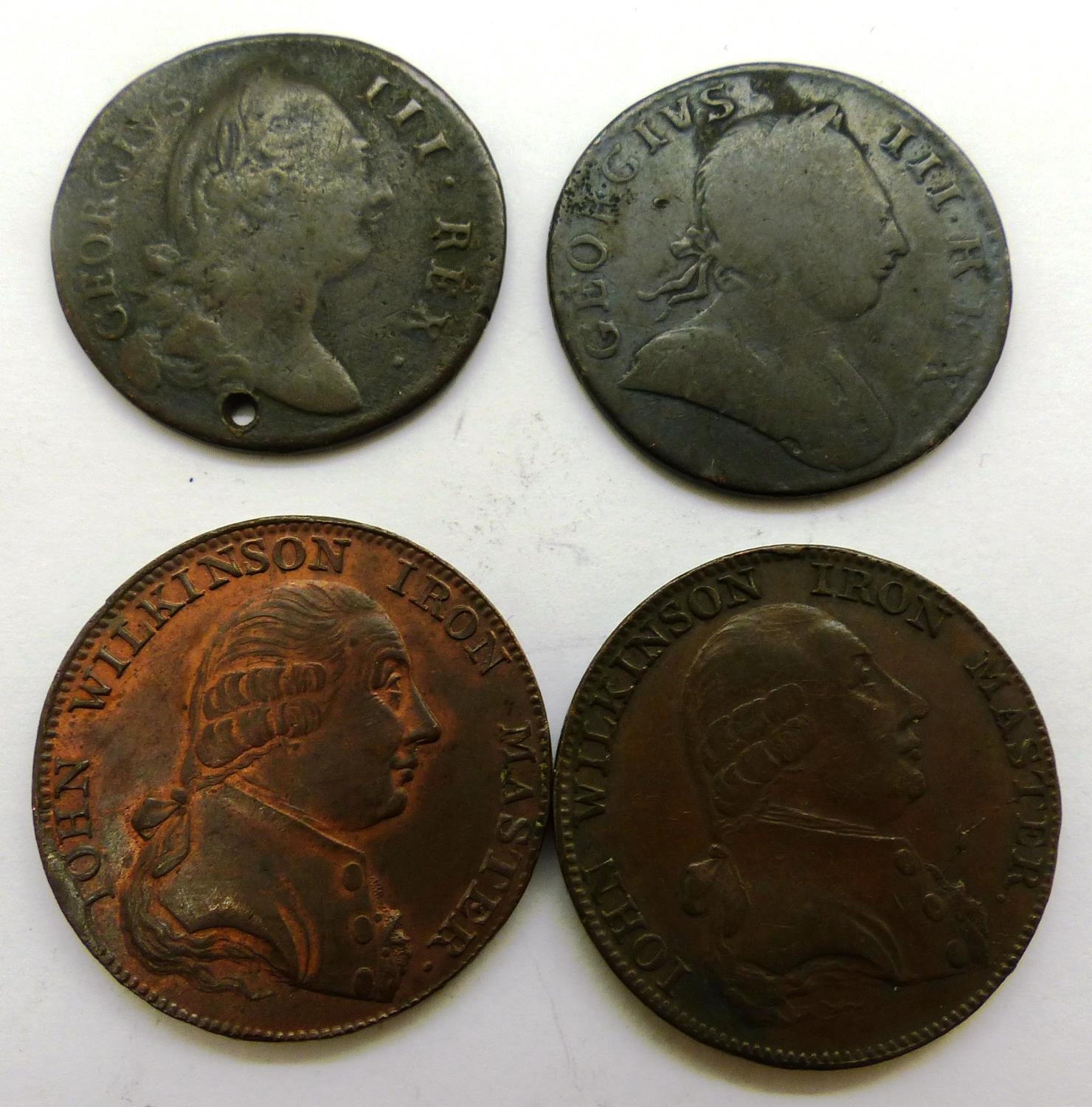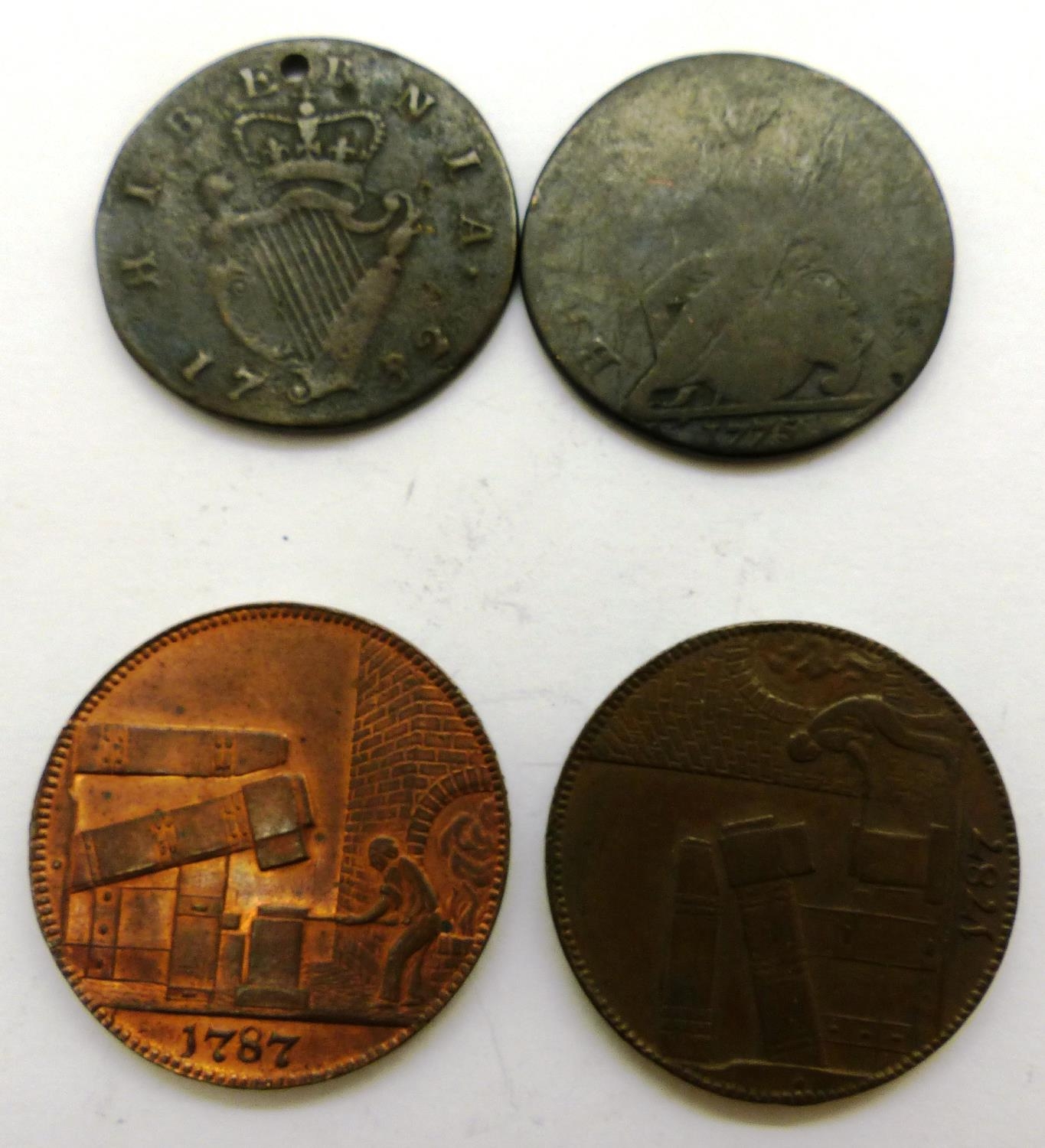 Four copper/bronze tokens. P&P Group 0 (£5+VAT for the first lot and £1+VAT for subsequent lots)