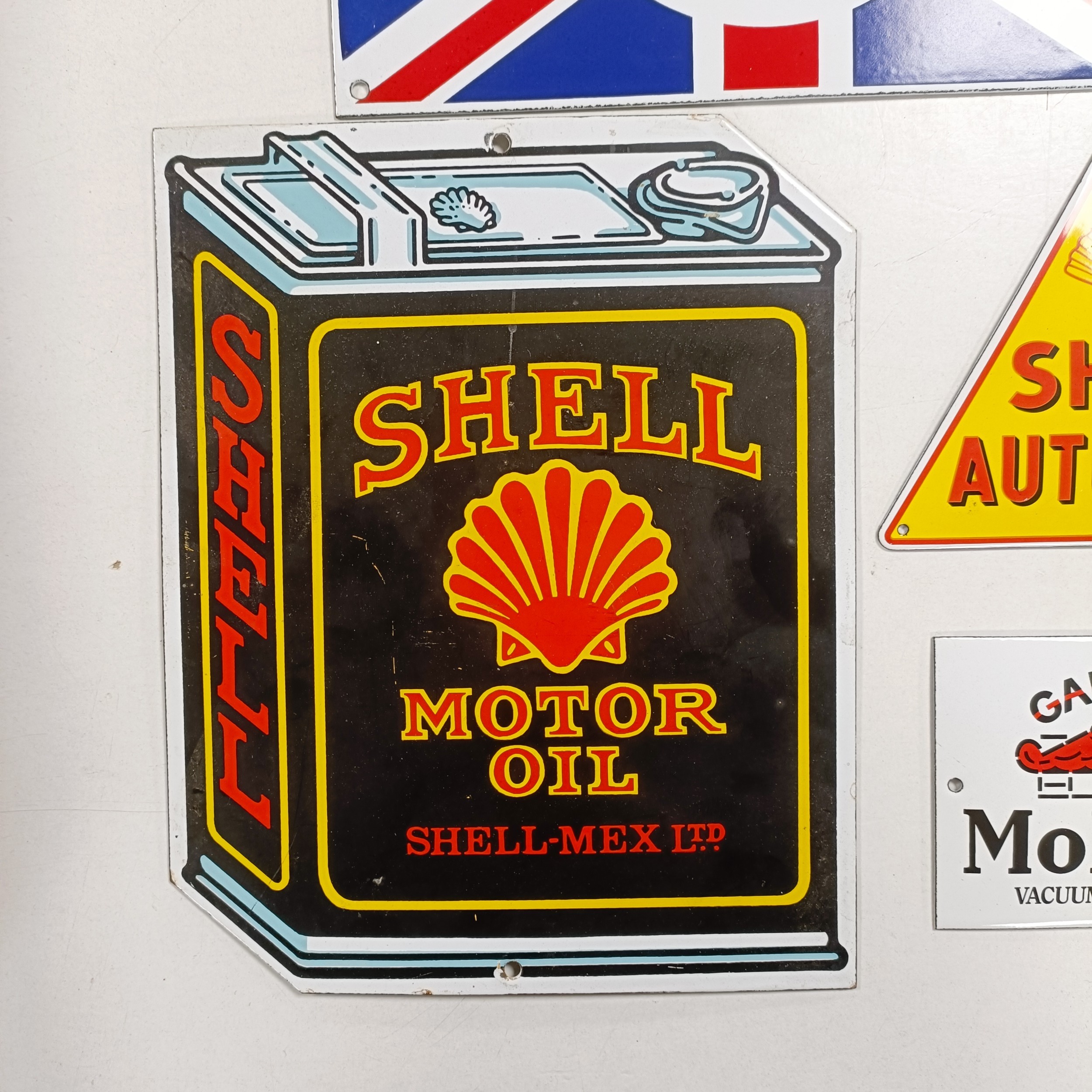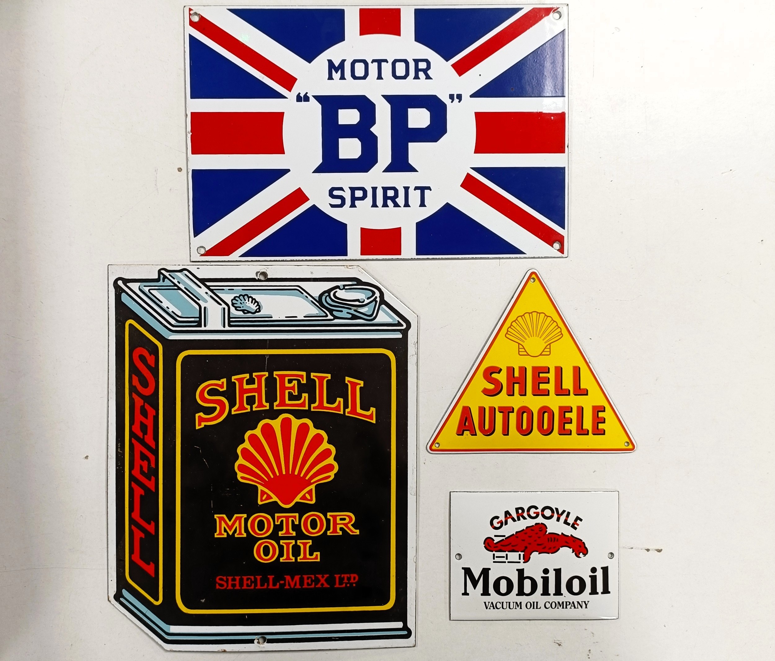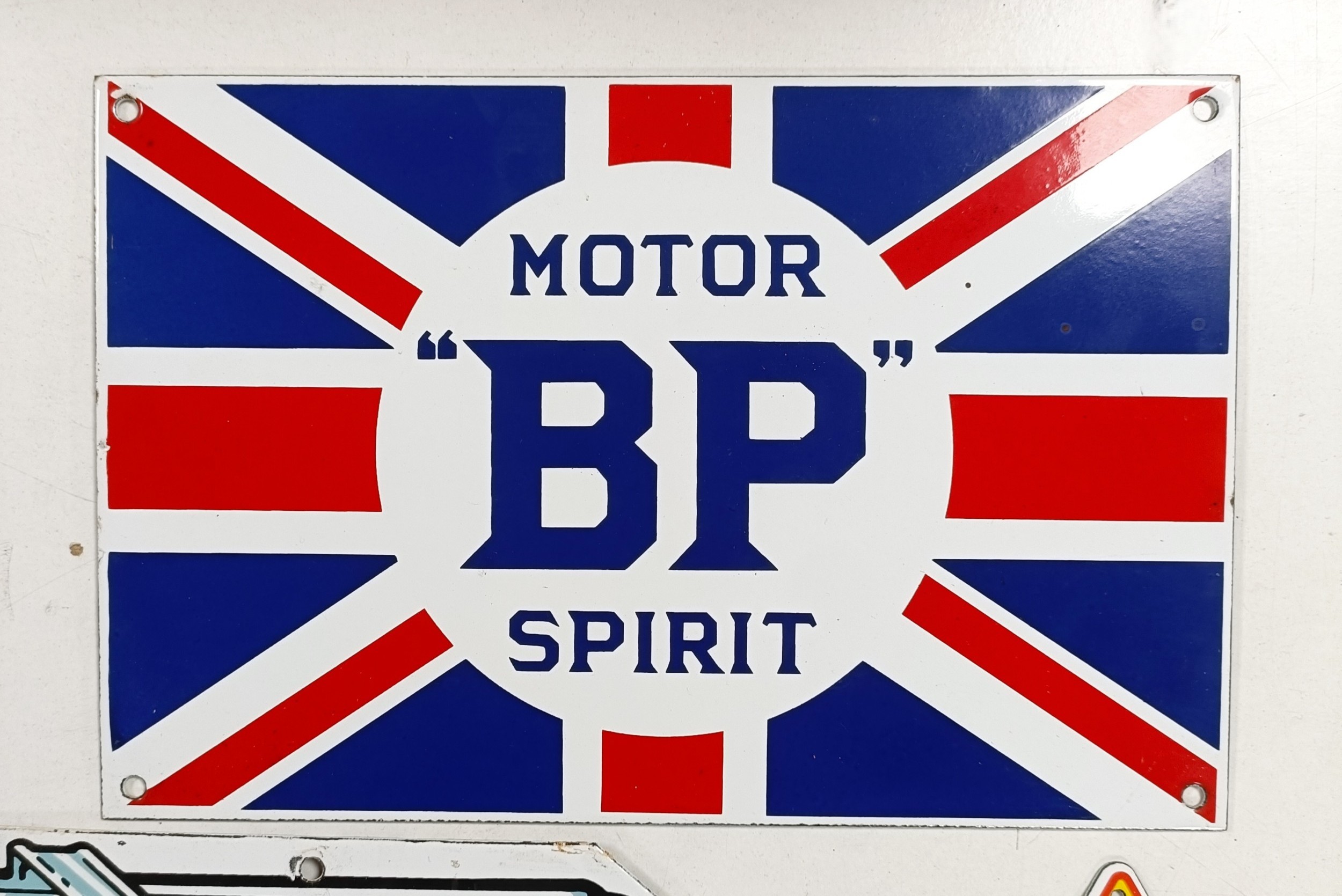 Four small reproduction enamel signs, including BP Motor Spirit, 17.5 x 26.5 cm (4)