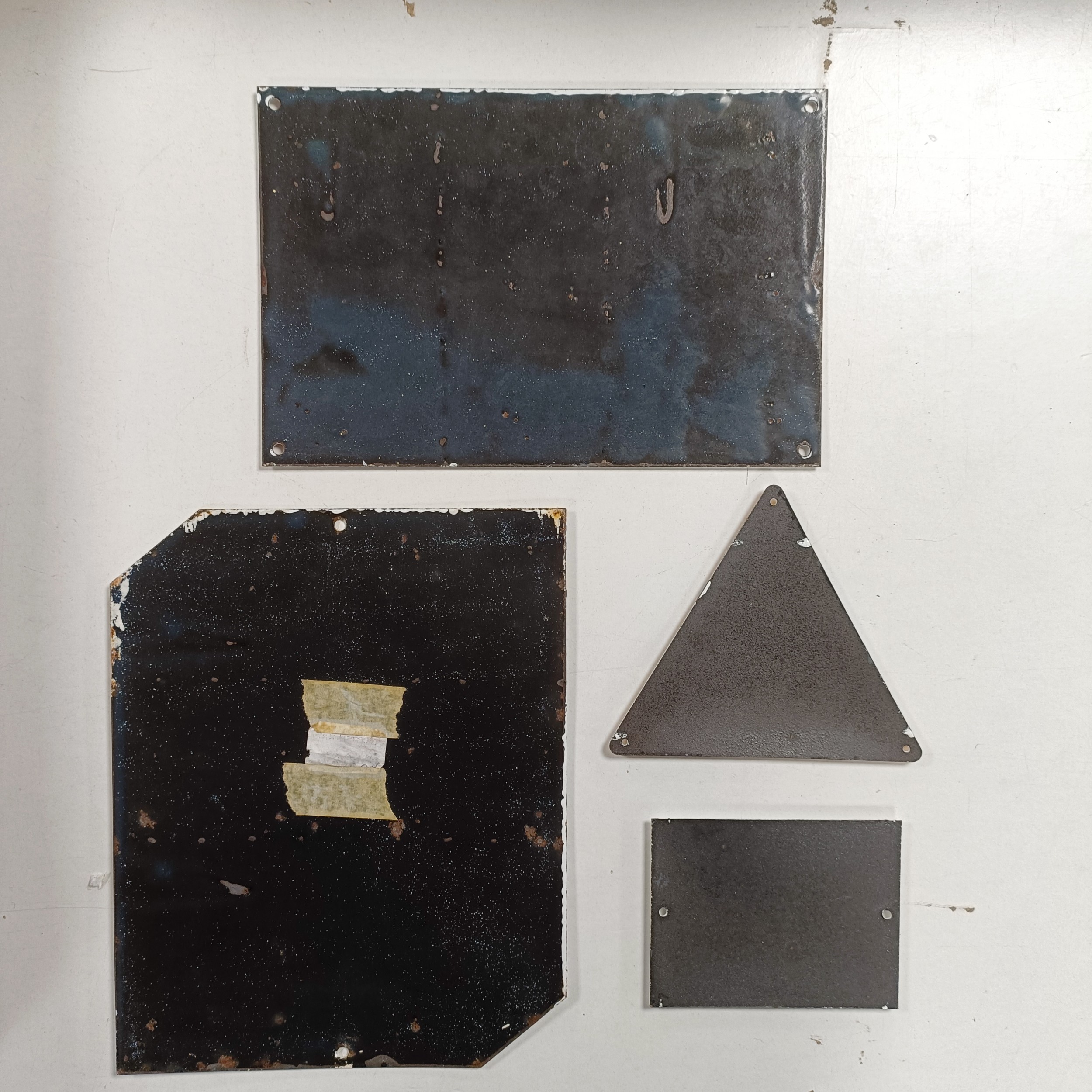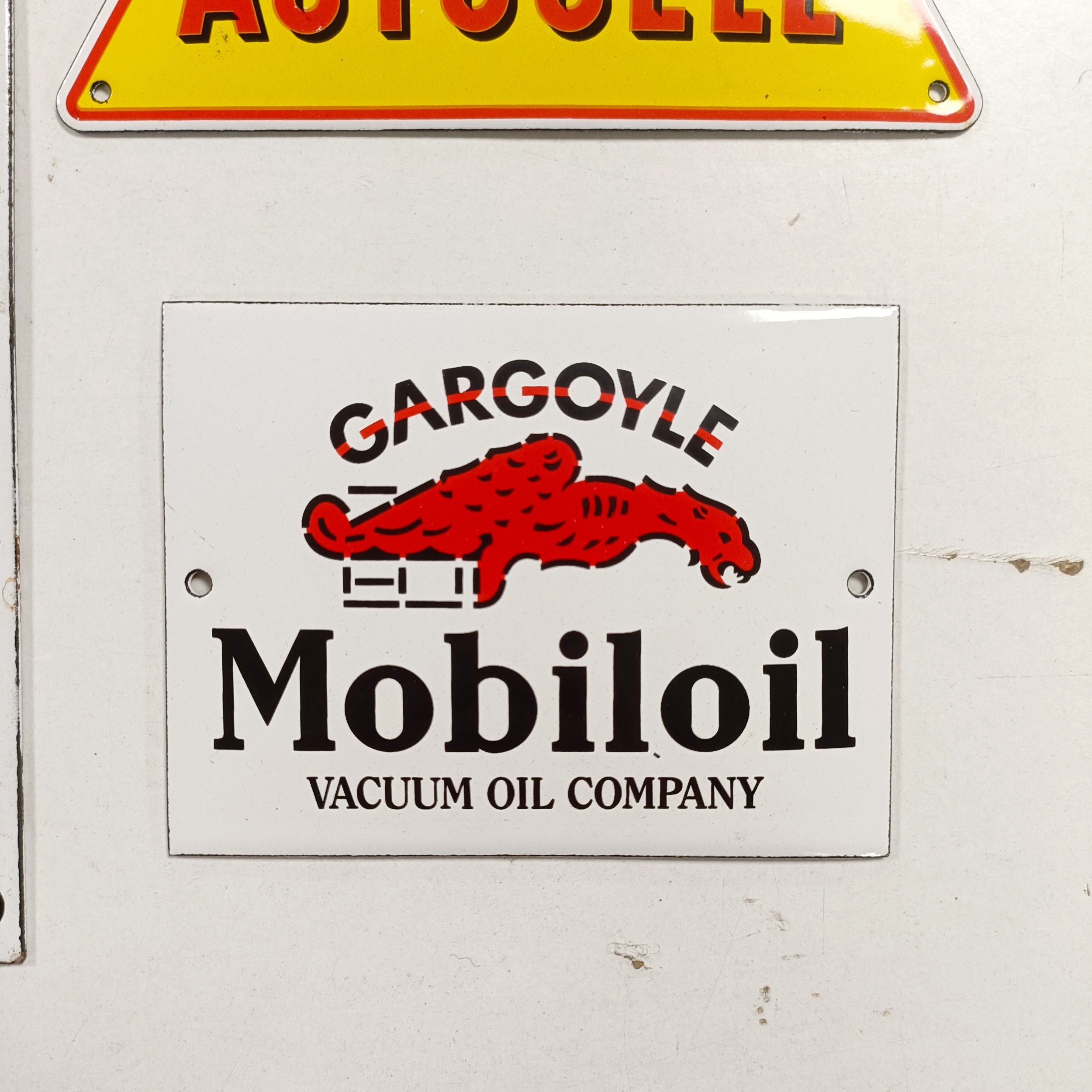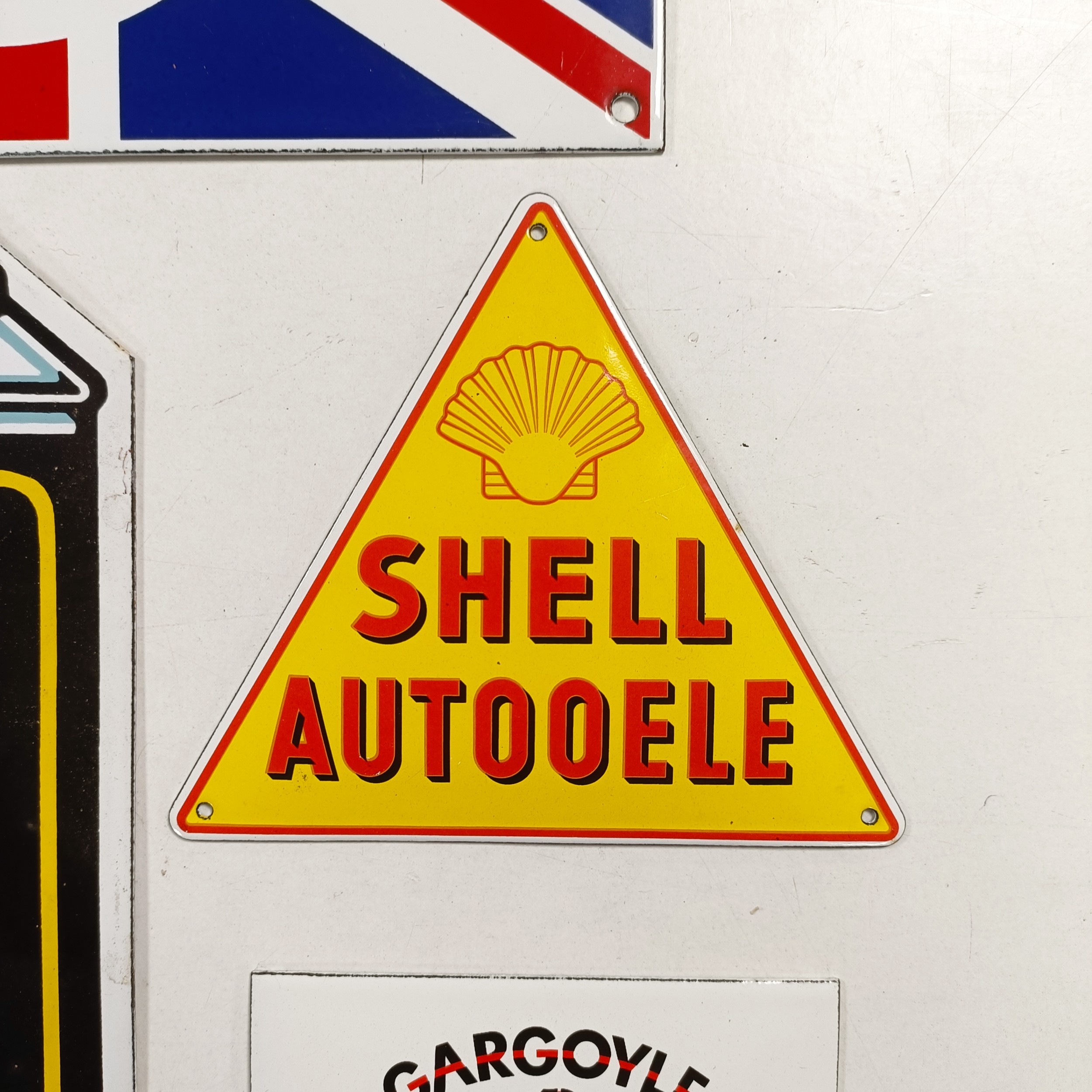 Four small reproduction enamel signs, including BP Motor Spirit, 17.5 x 26.5 cm (4)