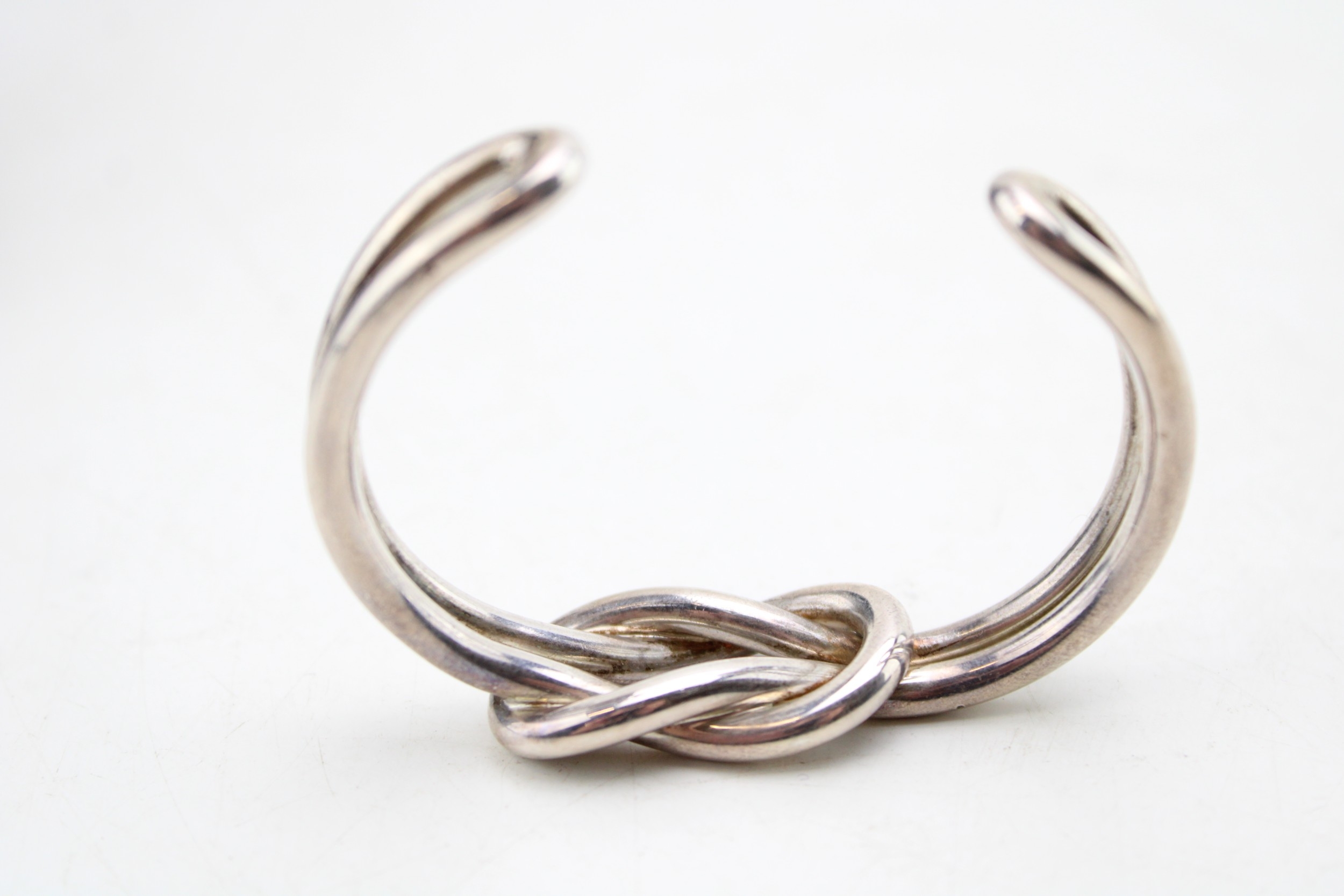 Georg Jensen: a silver love or reef knot open cuff bangle of double strand form, marked with circular