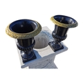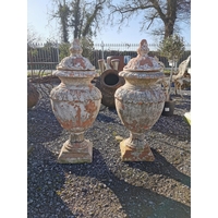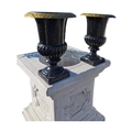 Pair of decorative cast iron garden urns {33 cm H x 24 cm Dia.}.