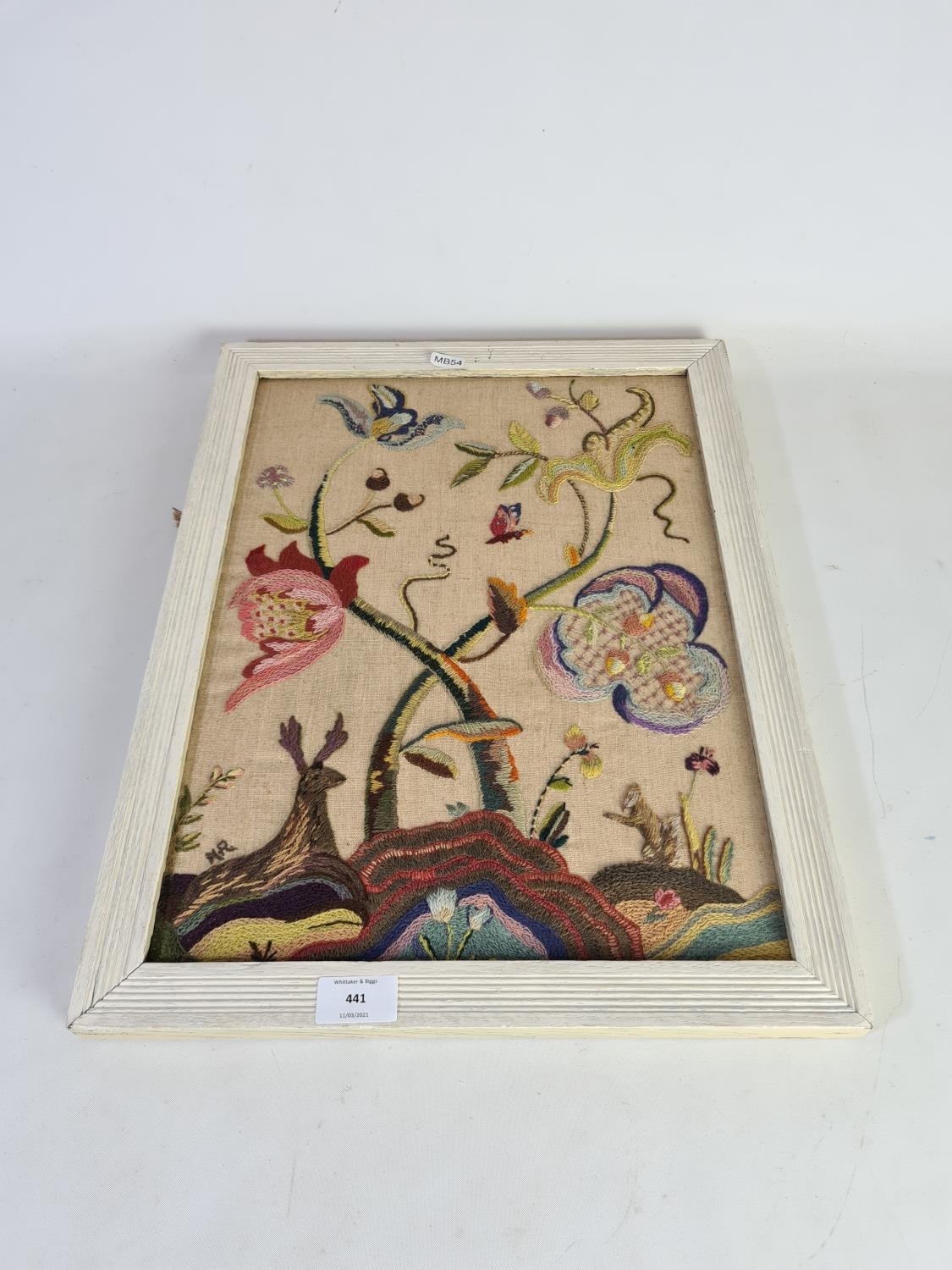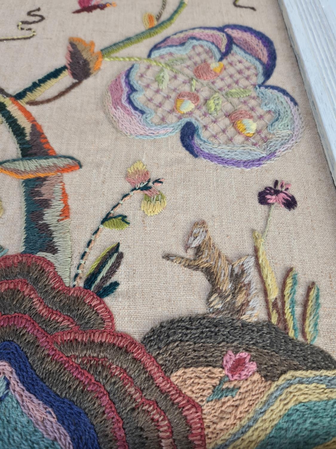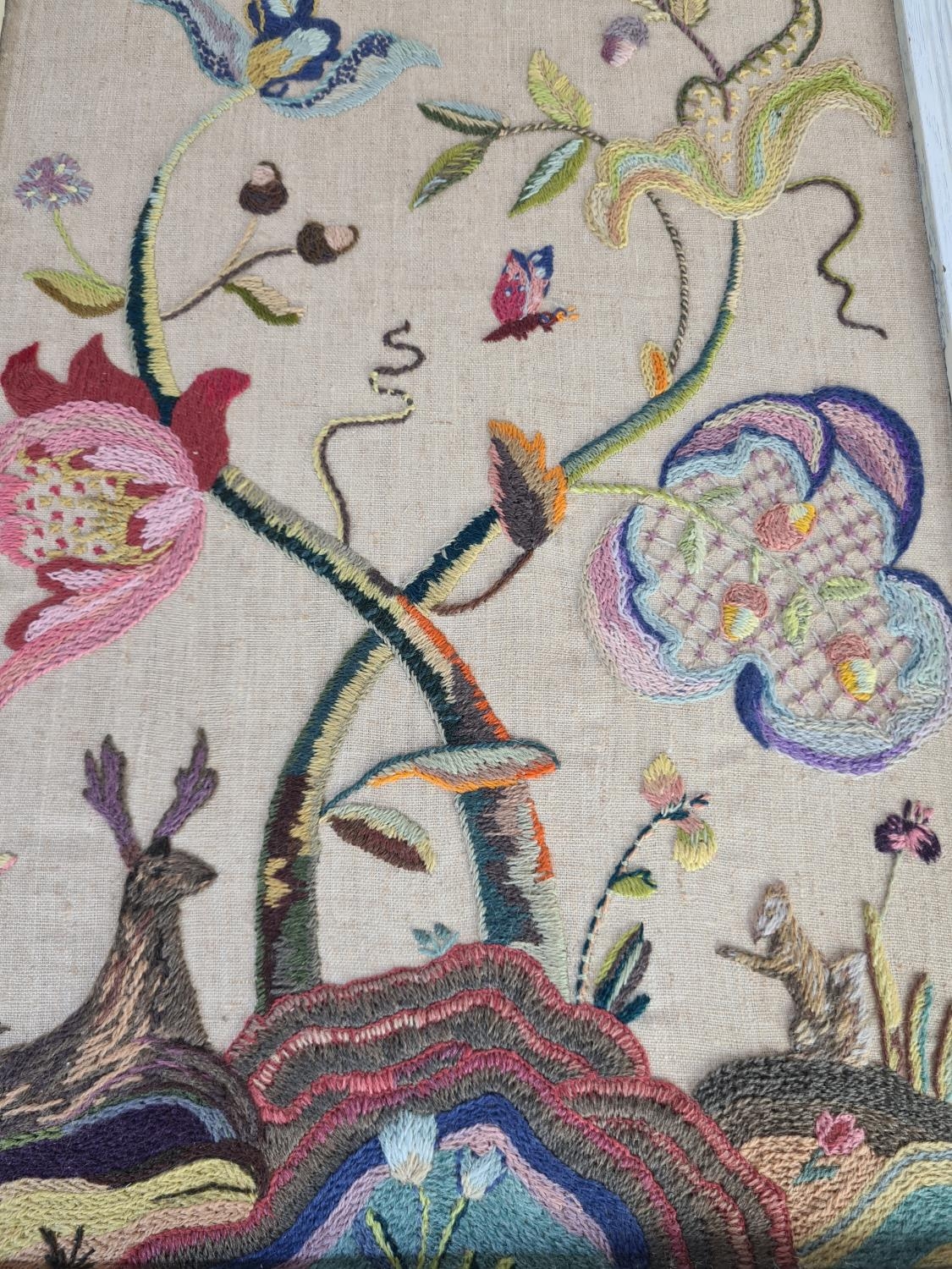 A 19th century framed tapestry of wildlife embroidered lower left H. R - approx. 49cm x 38cm with frame