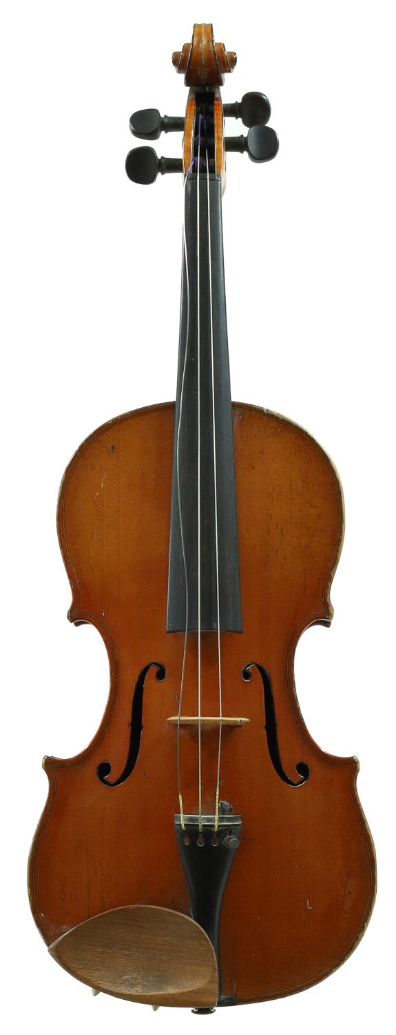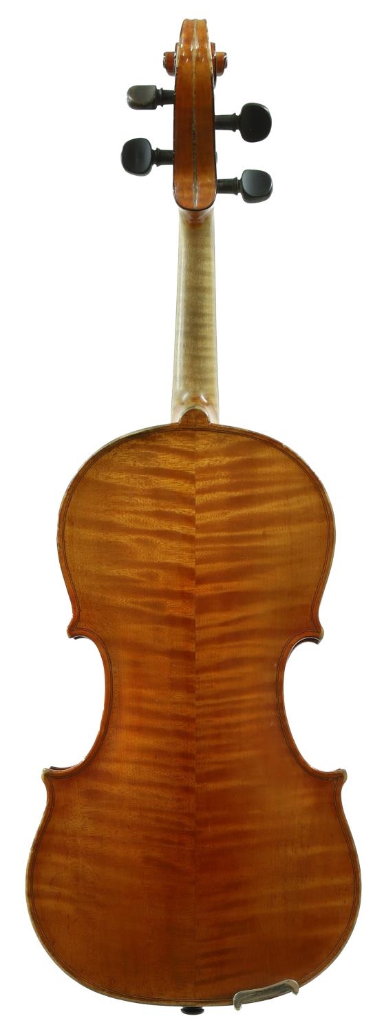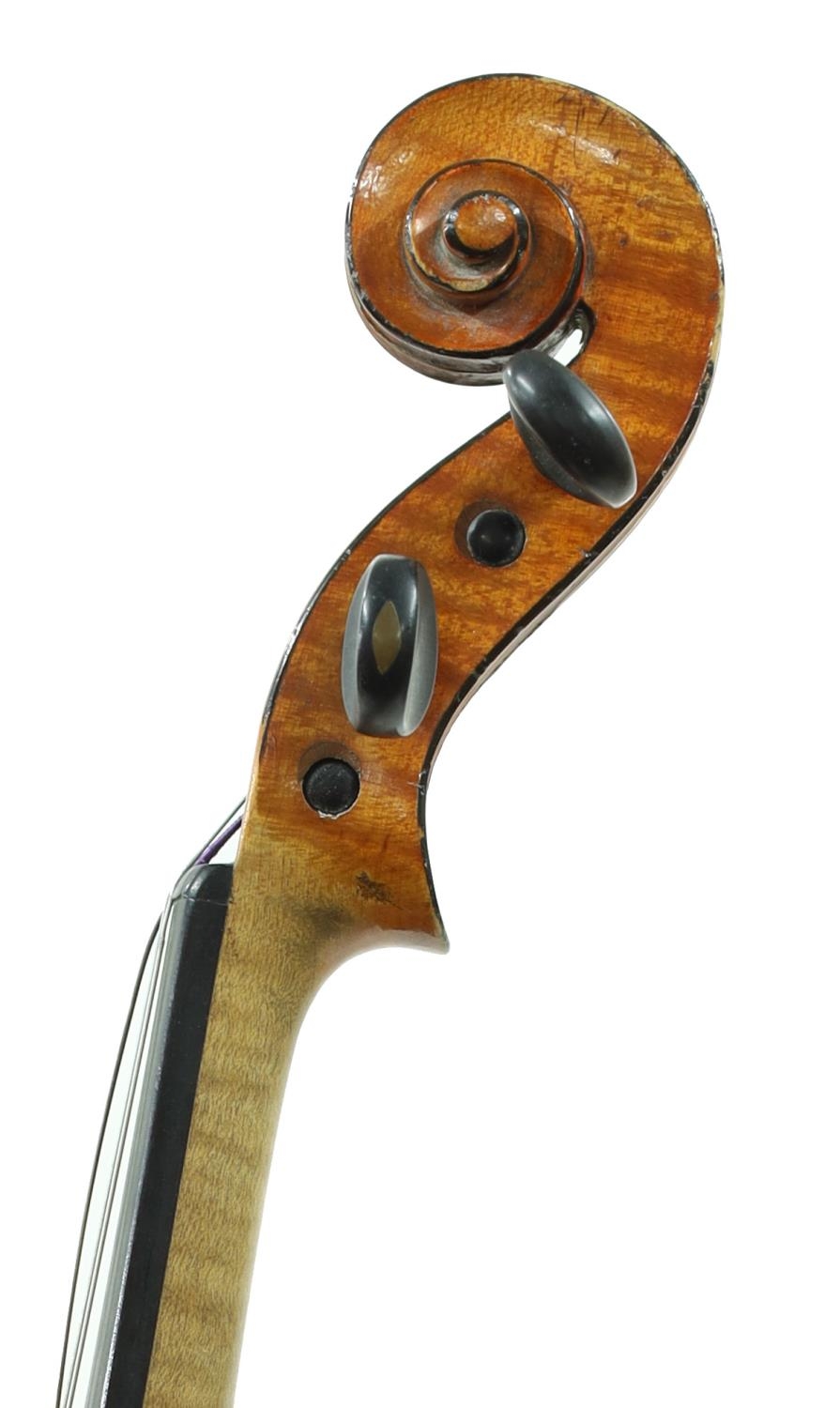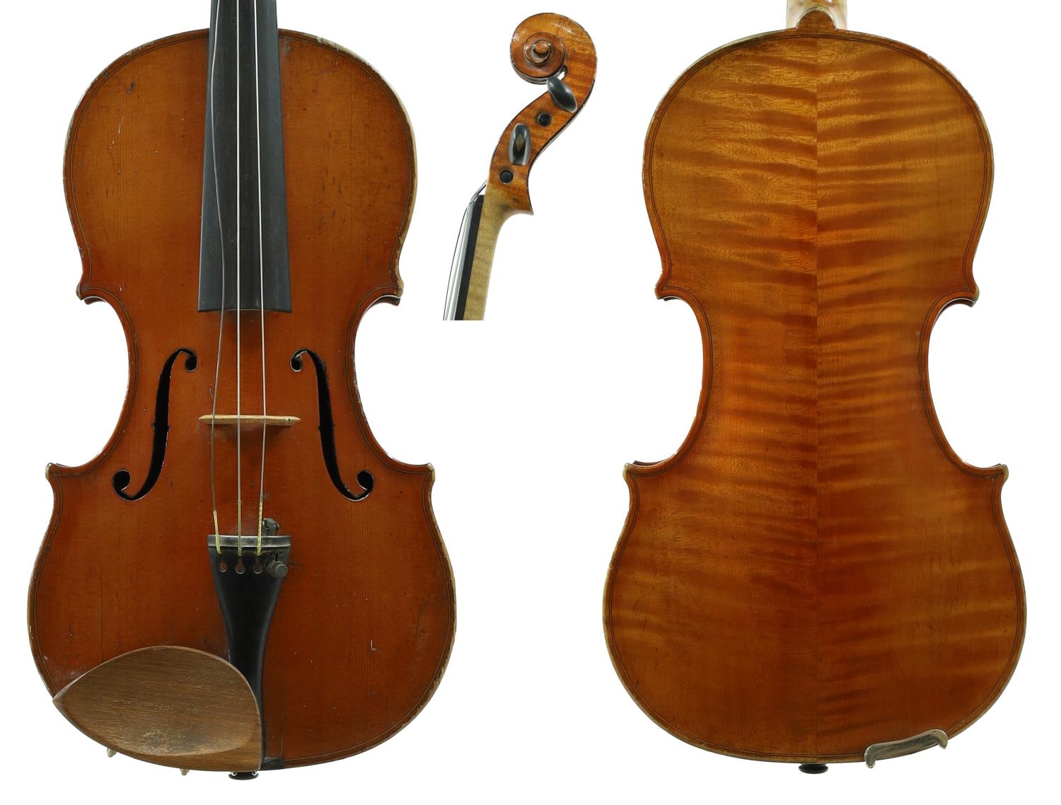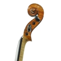 English violin bearing a partially illegible label dated 1884, the two piece back of faint medium/broad curl with similar wood to the head, the table of a fine width grain and the varnish of a golden brown colour, 14 1/8", 35.90cm