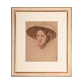 GEORGE SPENCER WATSON (BRITISH 1869-1934)PORTRAIT STUDY OF A WOMAN WEARING A HATPastel 38 x 31cm (14¾ x 12 in.)Provenance:Property of a Lady, Eaton Square, London Measurements do not include the frame unless specified. Please note Dreweatts are not liable for damage to frames or mounts.