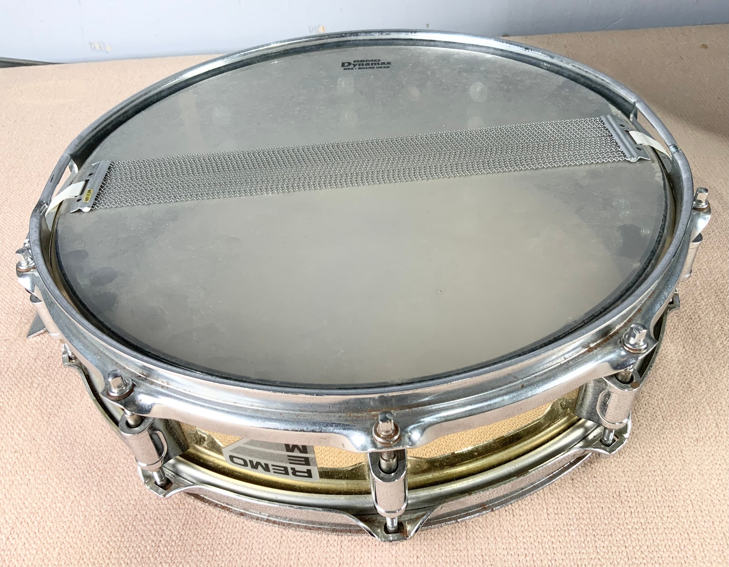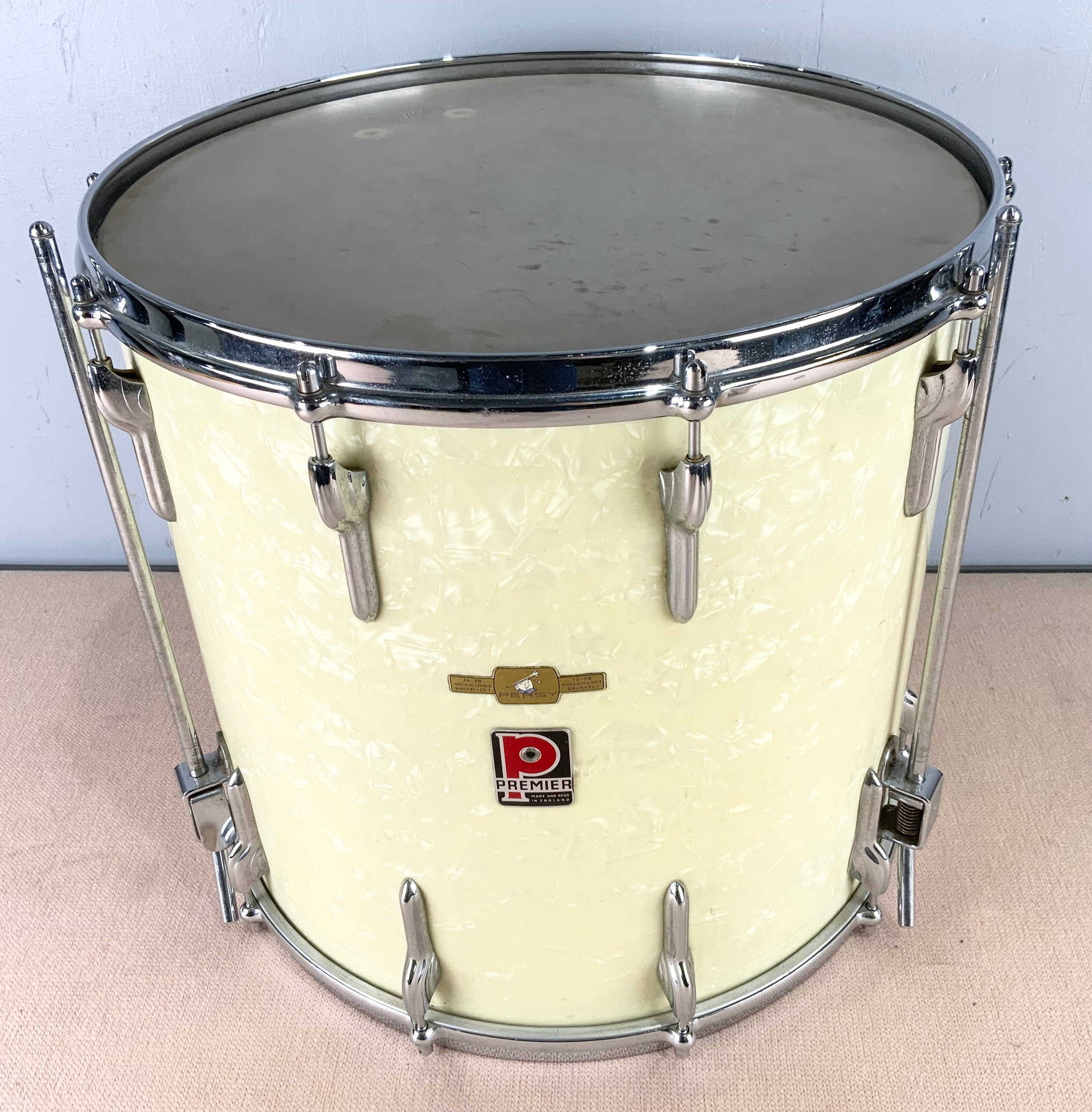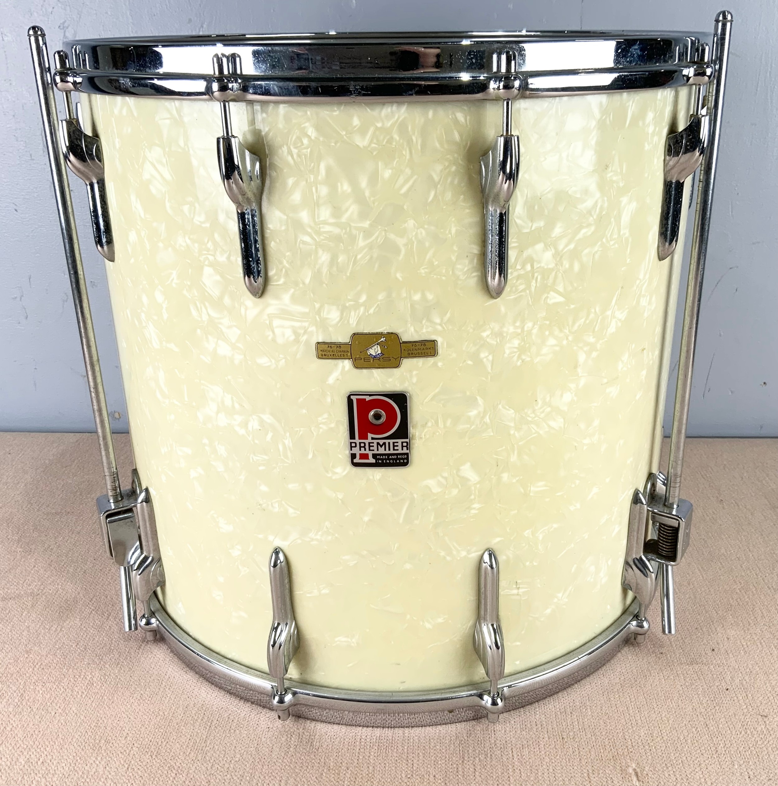 PREMIER BASE DRUM WITH CASE AND A REMO DYNAMAX SNARE DRUM
