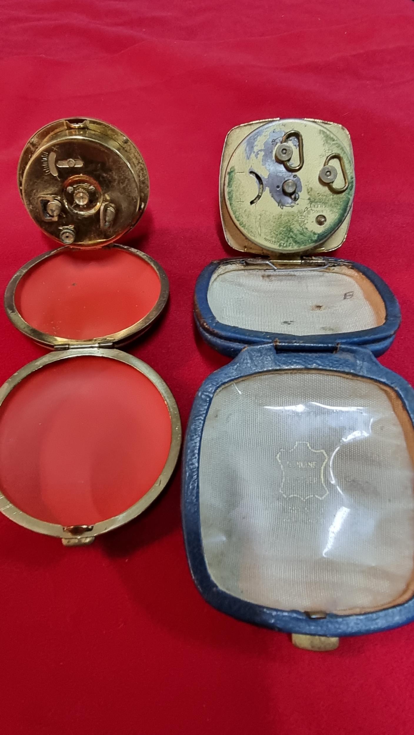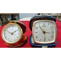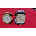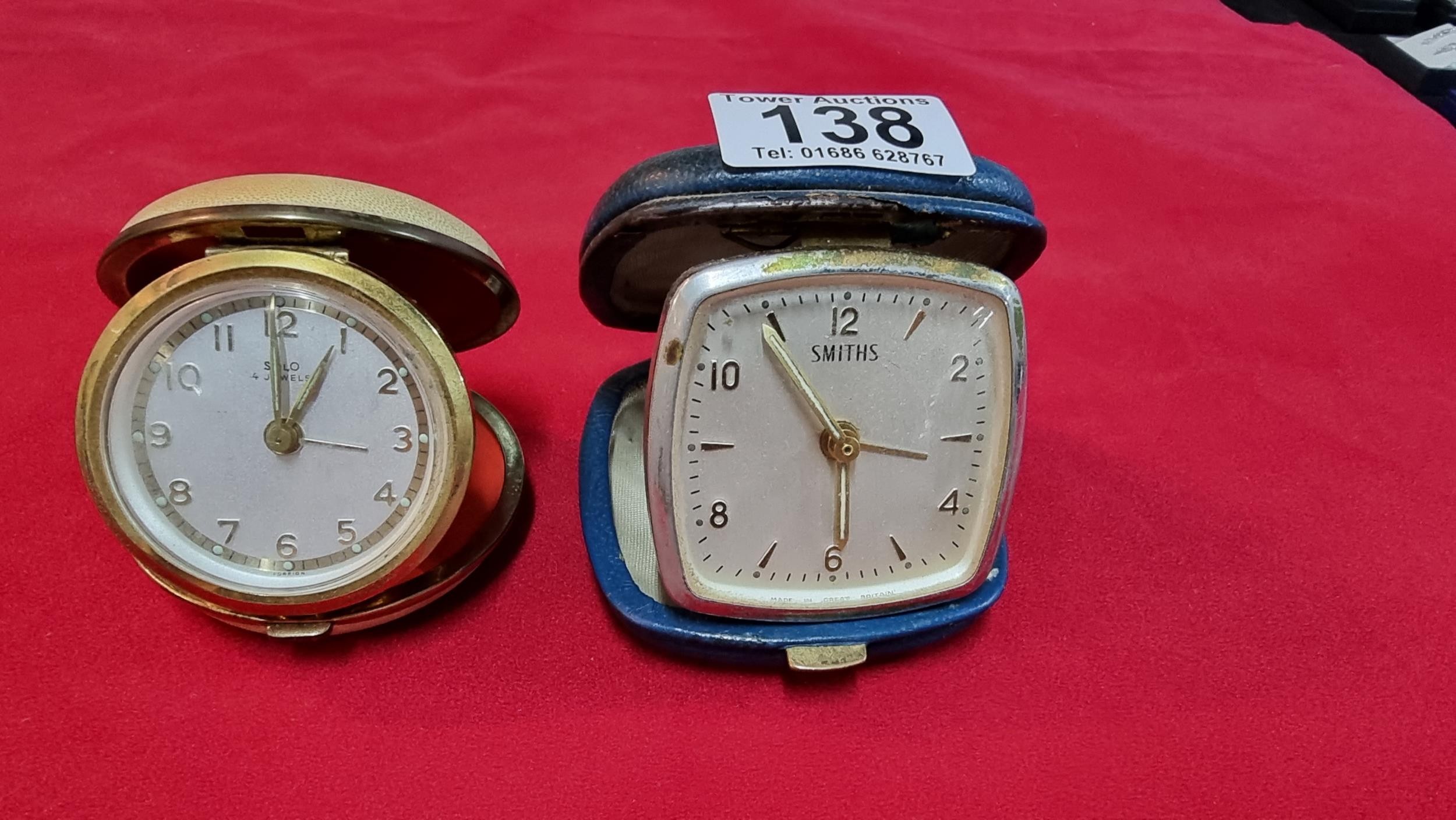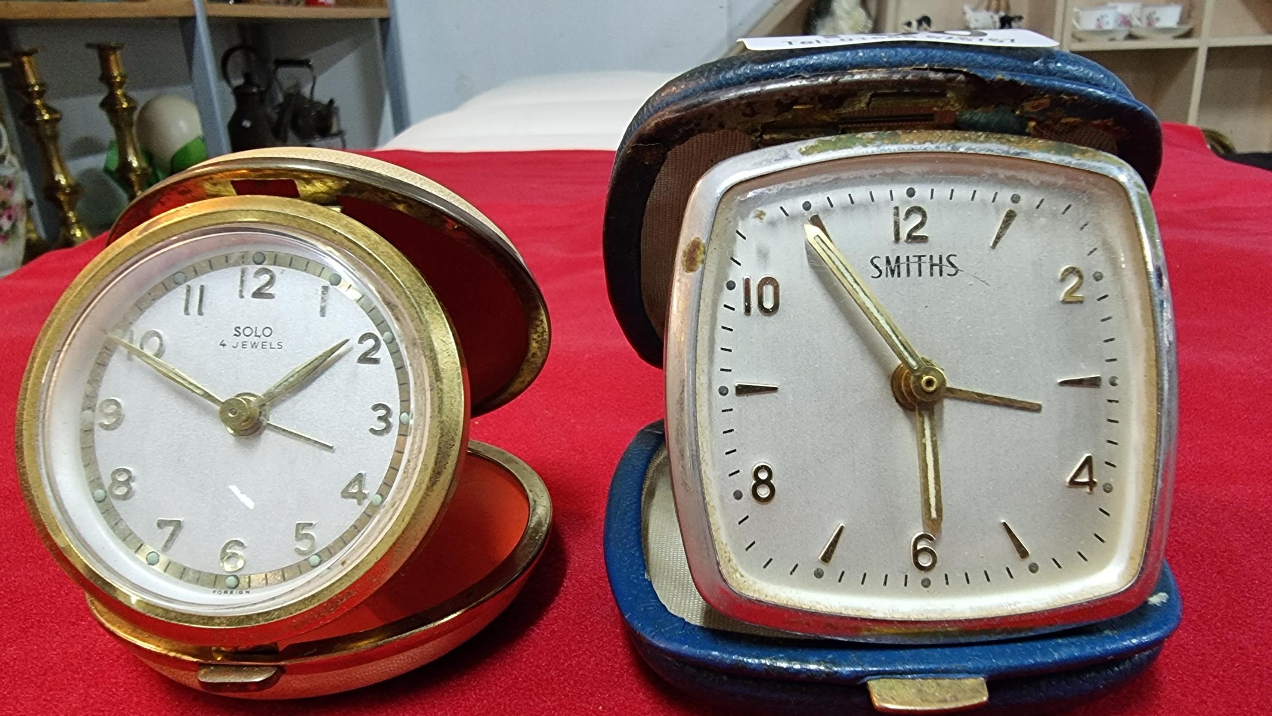 2x vintage travel clocks, one is by Smiths and the other is by Solo
