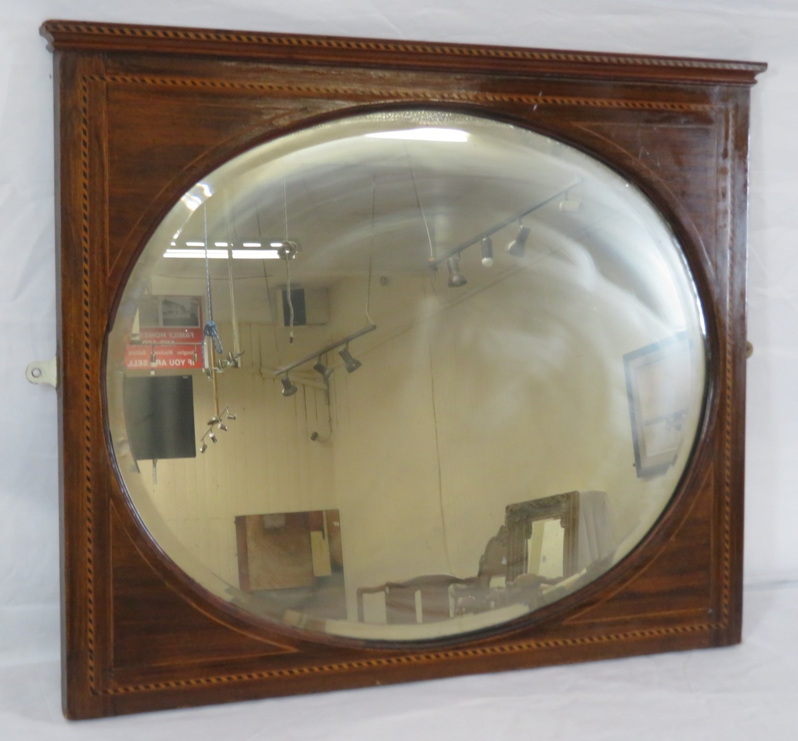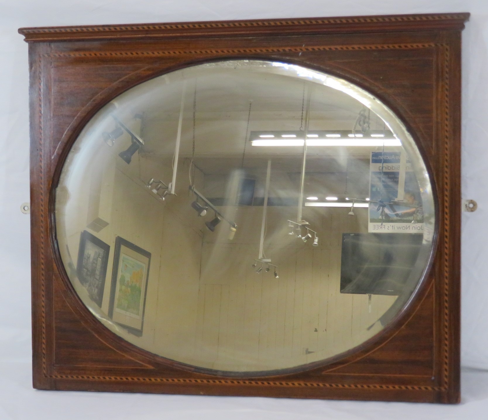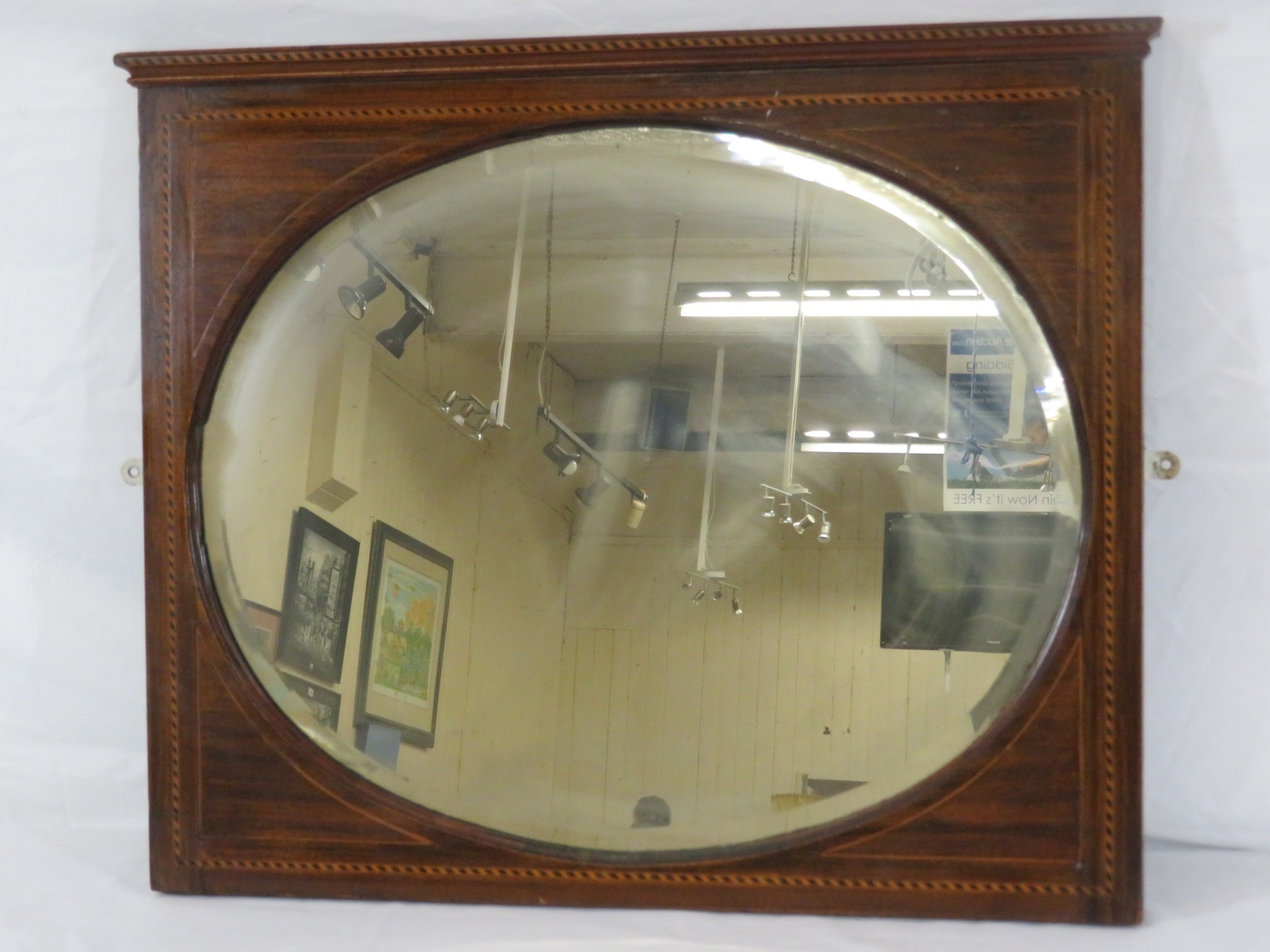 Edwardian inlaid walnut oval bevelled glass wall mirror