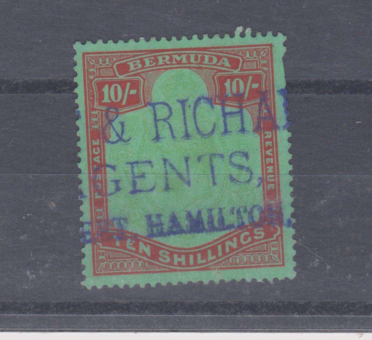 Bermuda 1924-32 10/- fiscally used SG92. Good spacefiller. (1)