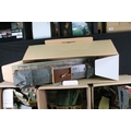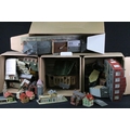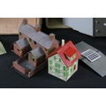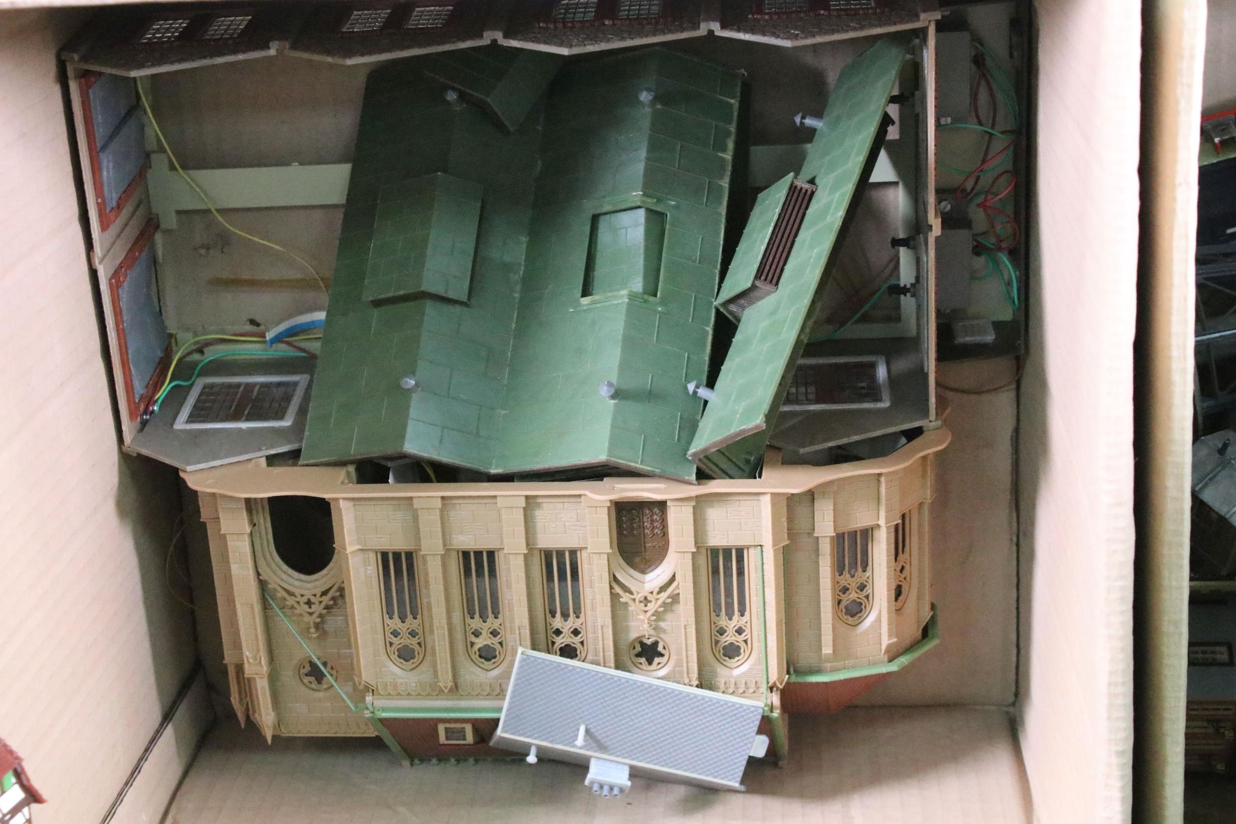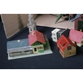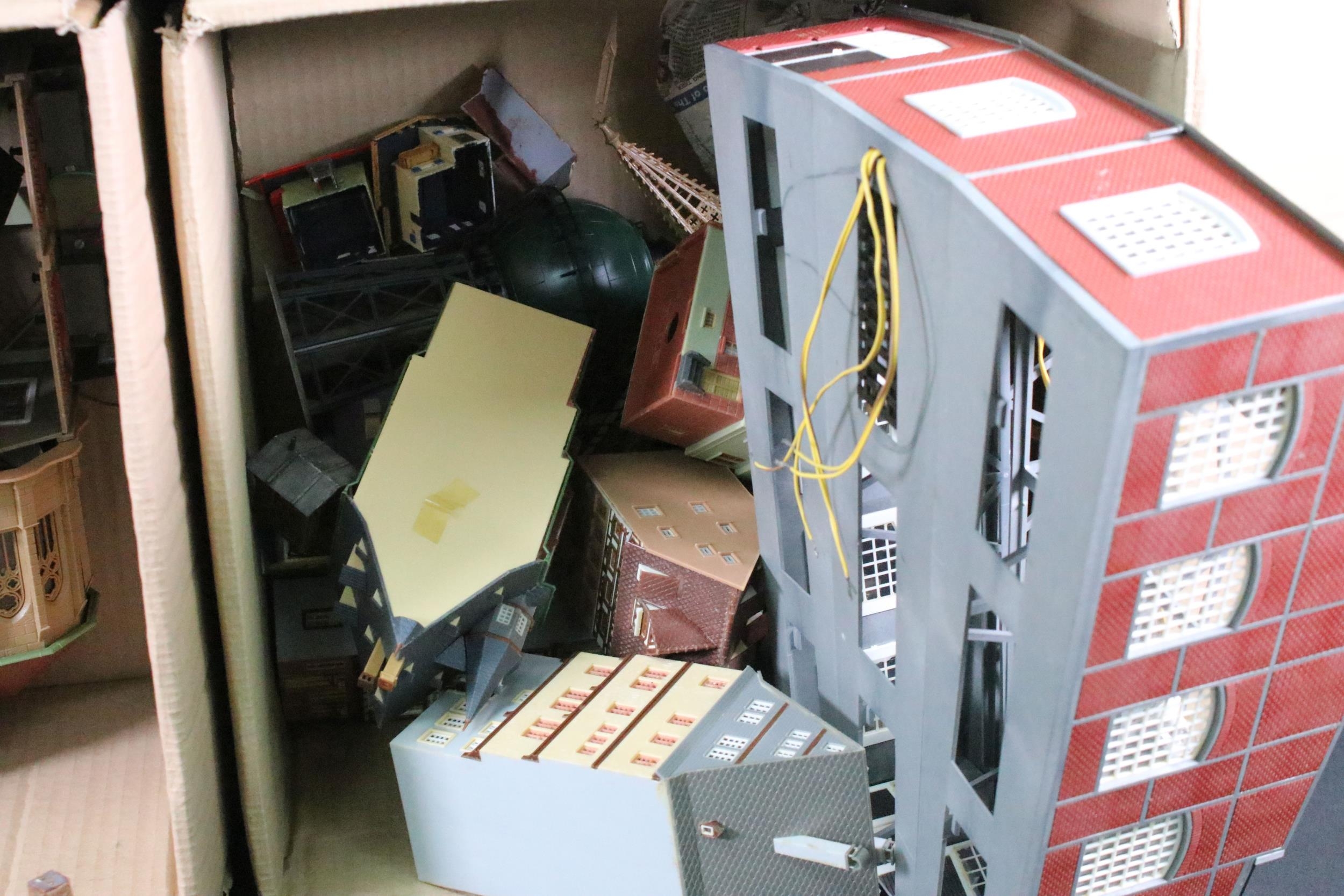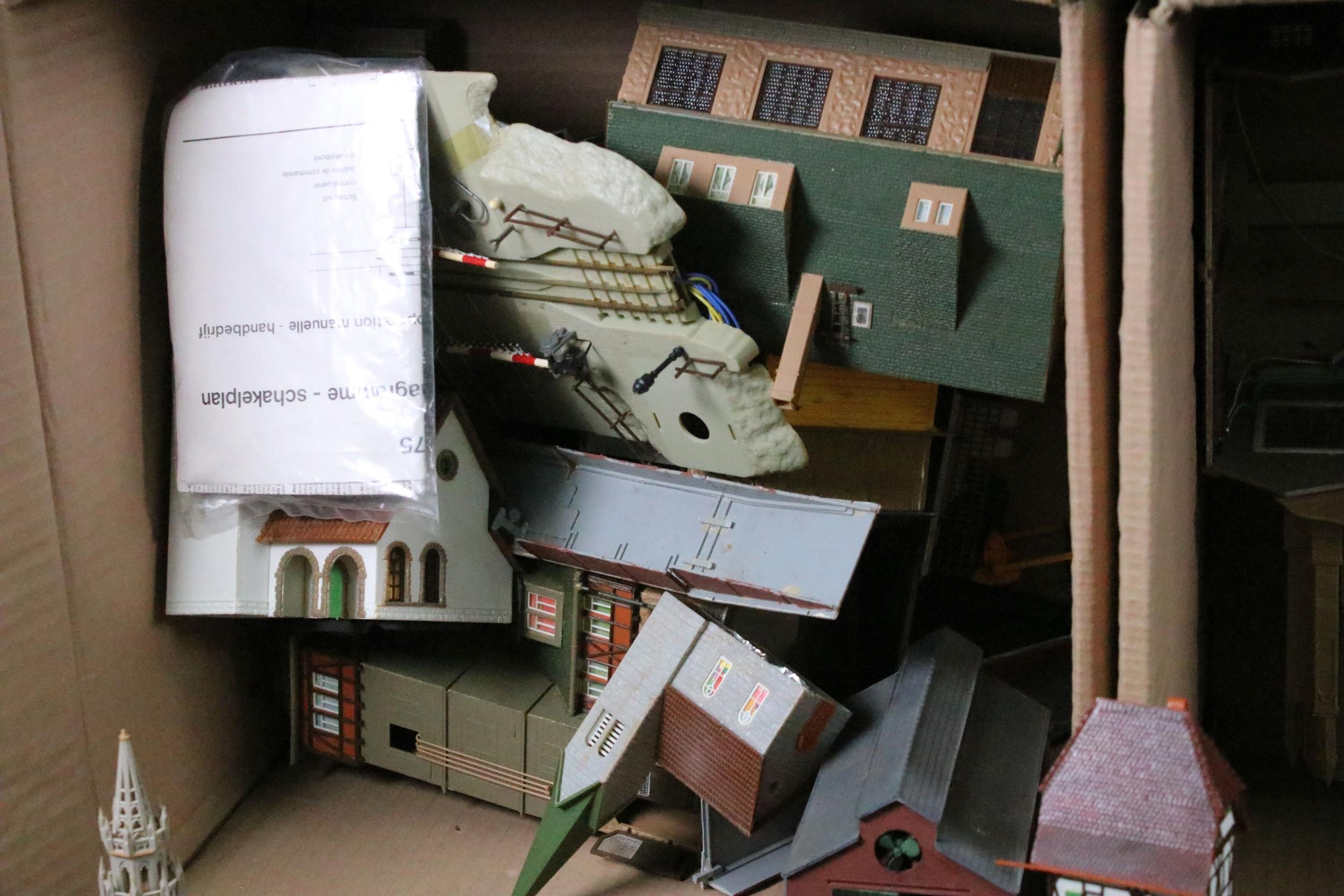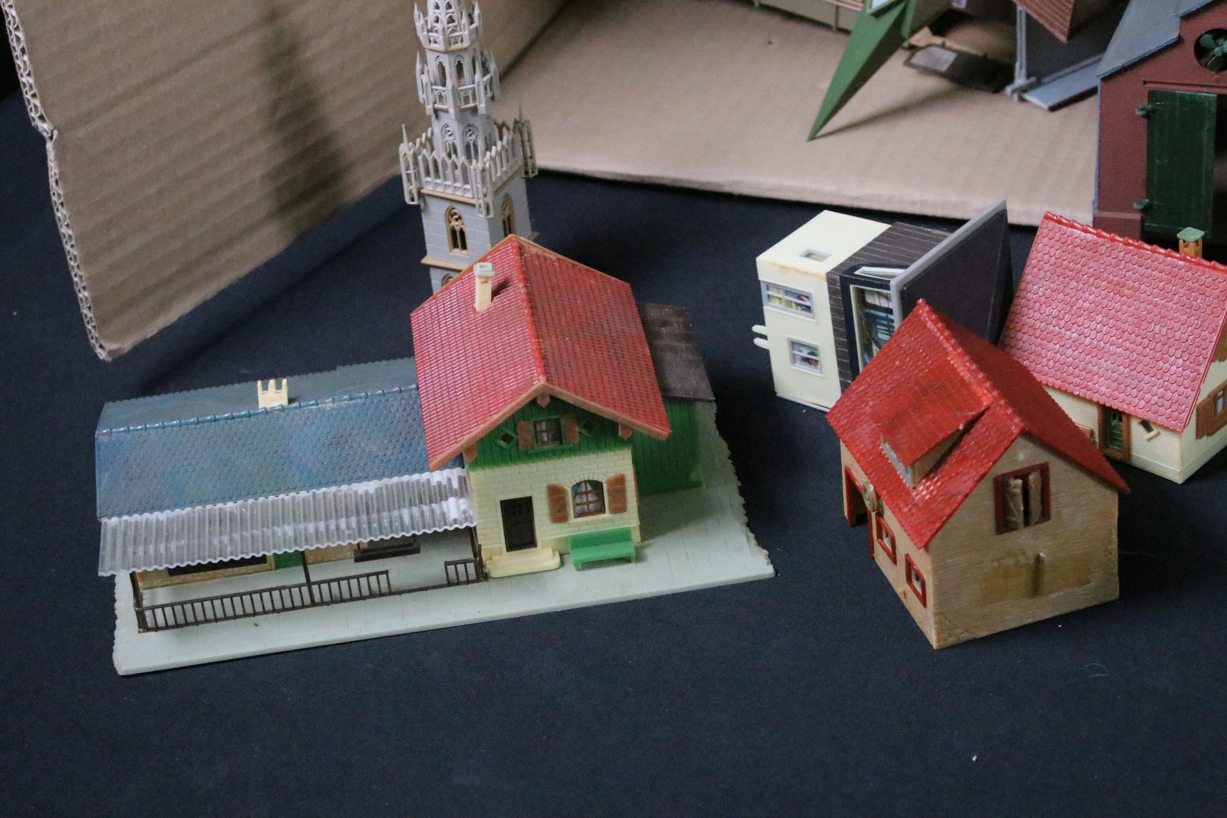 Large quantity of built HO / OO gauge plastic trackside buildings featuring large Vollmer Baden Baden station, plus card examples (5 boxes)